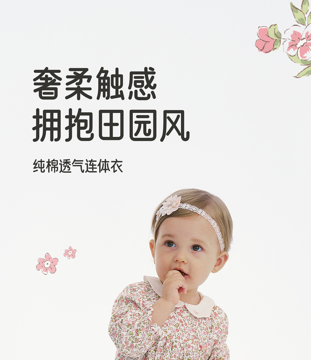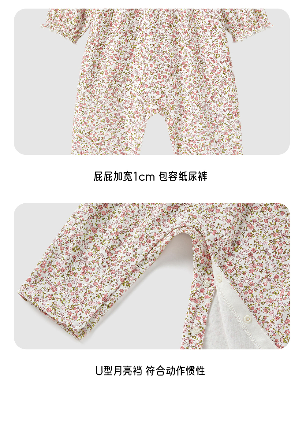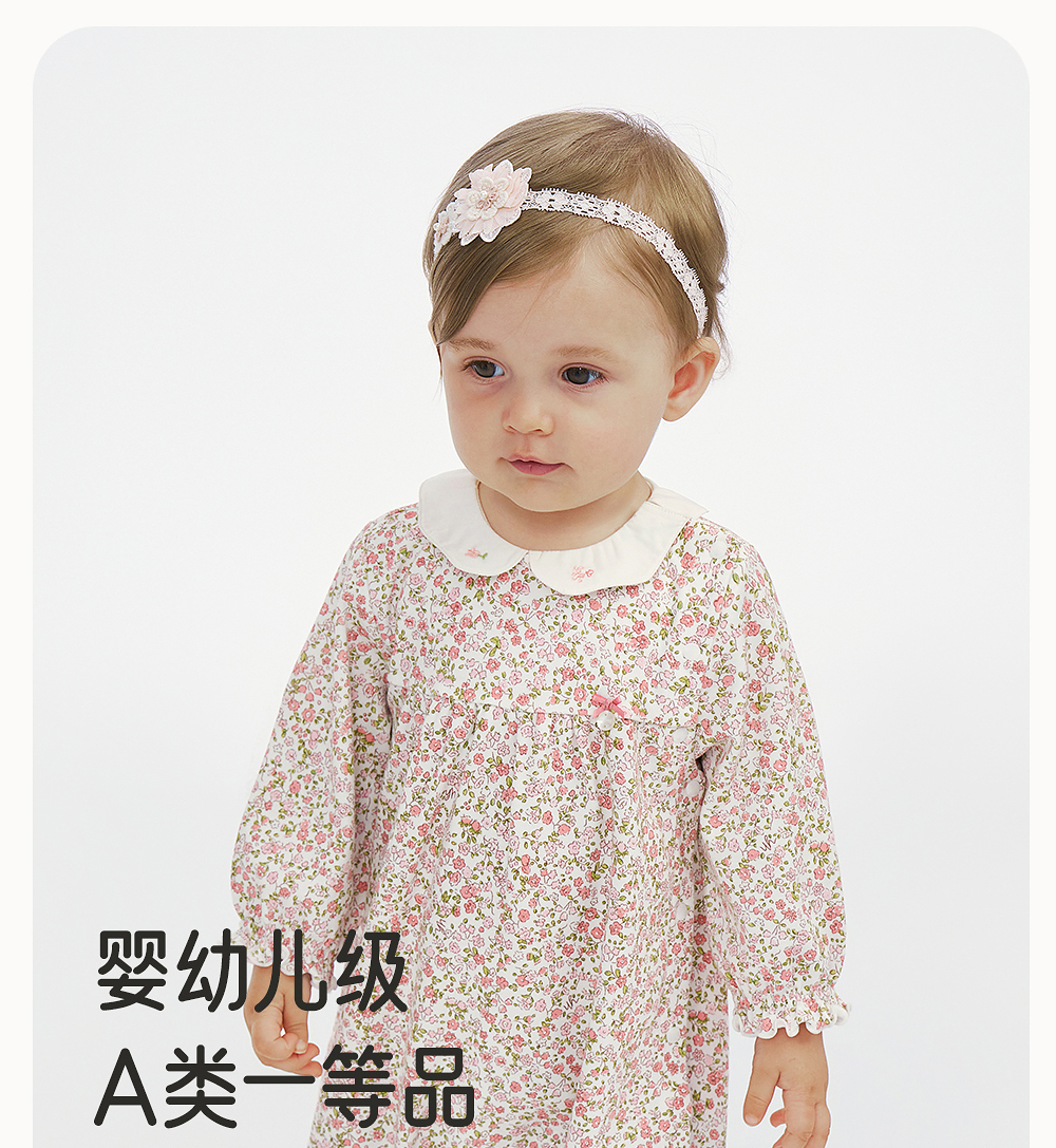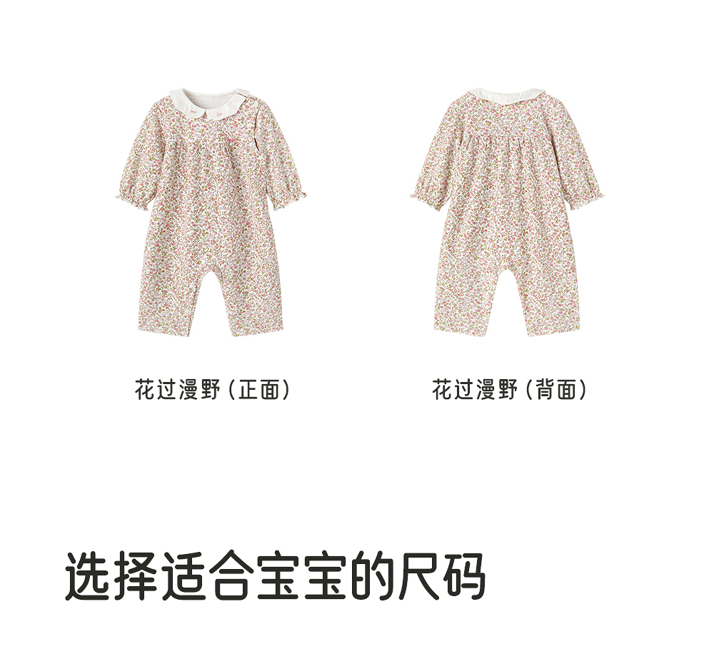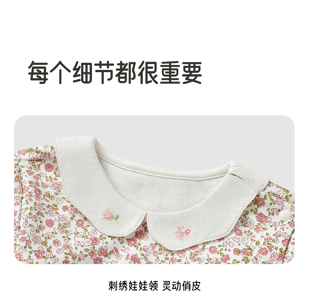 【商场同款】英氏新生婴儿哈衣春秋新款女宝宝印花长袖翻领连体衣