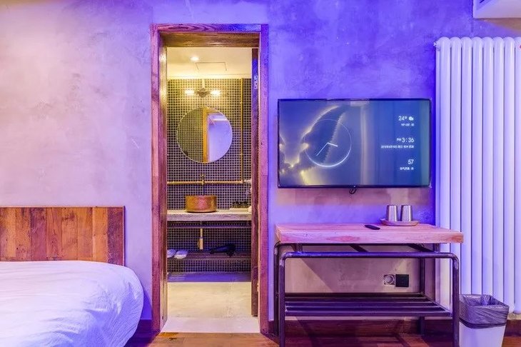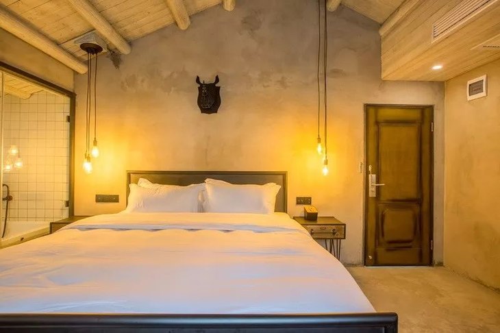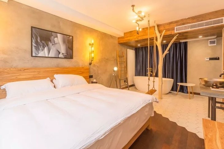 就像这里的每一间房,可以是清水泥、黄铜、铁器营造的工业风,也可以有原木、红砖的温暖质感,可以在房间里荡秋千,也可以想象自己在科幻大片的场景中。