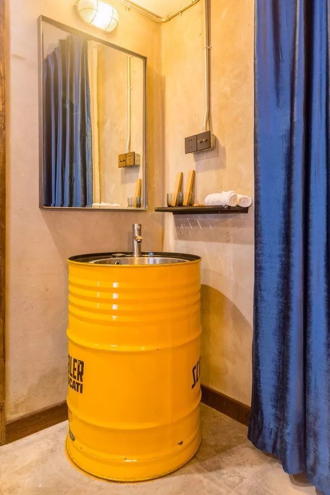 这里还有从各处搜罗来的宝贝,也许是从一艘旧船上拆下来的发动机,一扇年代久远的谷仓门,一台老式电话,一个用油桶做成的洗脸台,......