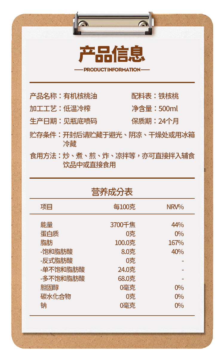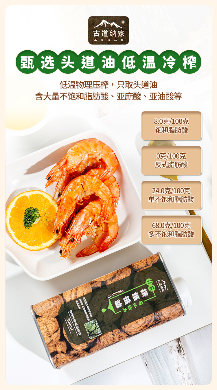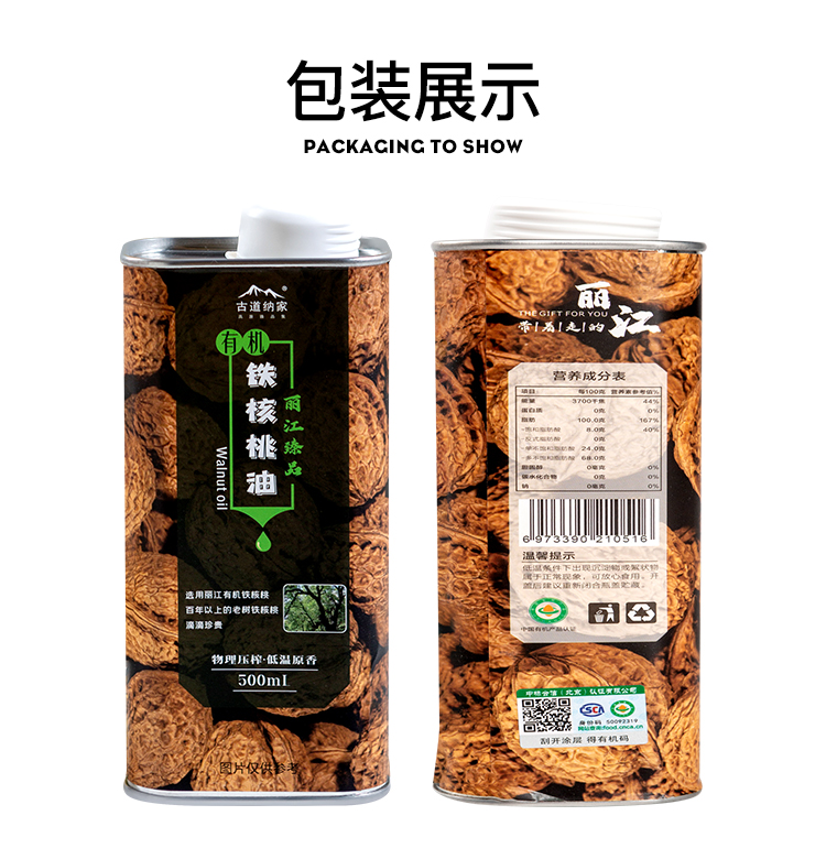 【品名】古道纳家有机铁核桃油