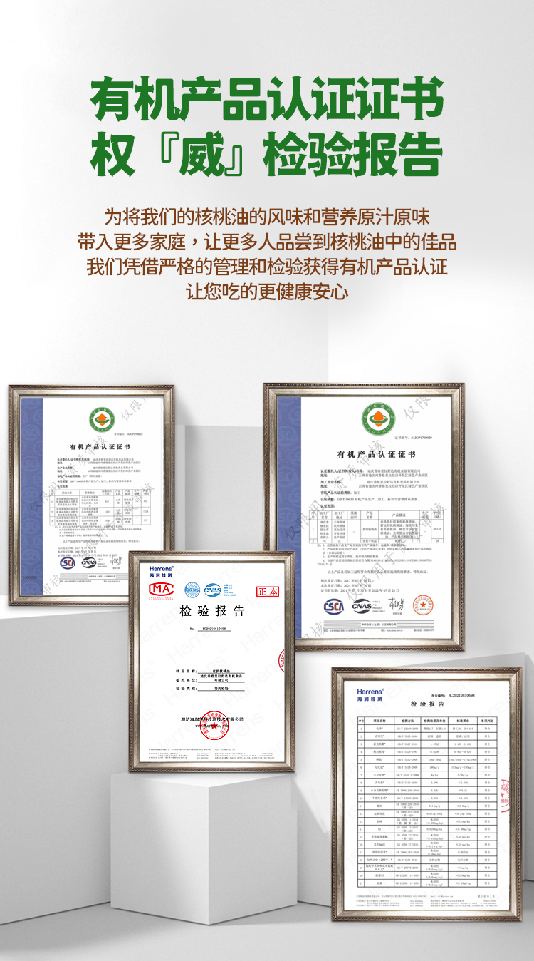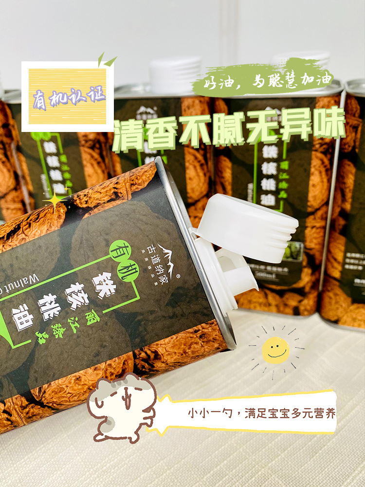 关于产品:核桃油脂肪酸组态近似母乳,相遇食材更美味。有机认证是从采摘到餐桌的健康保障。
