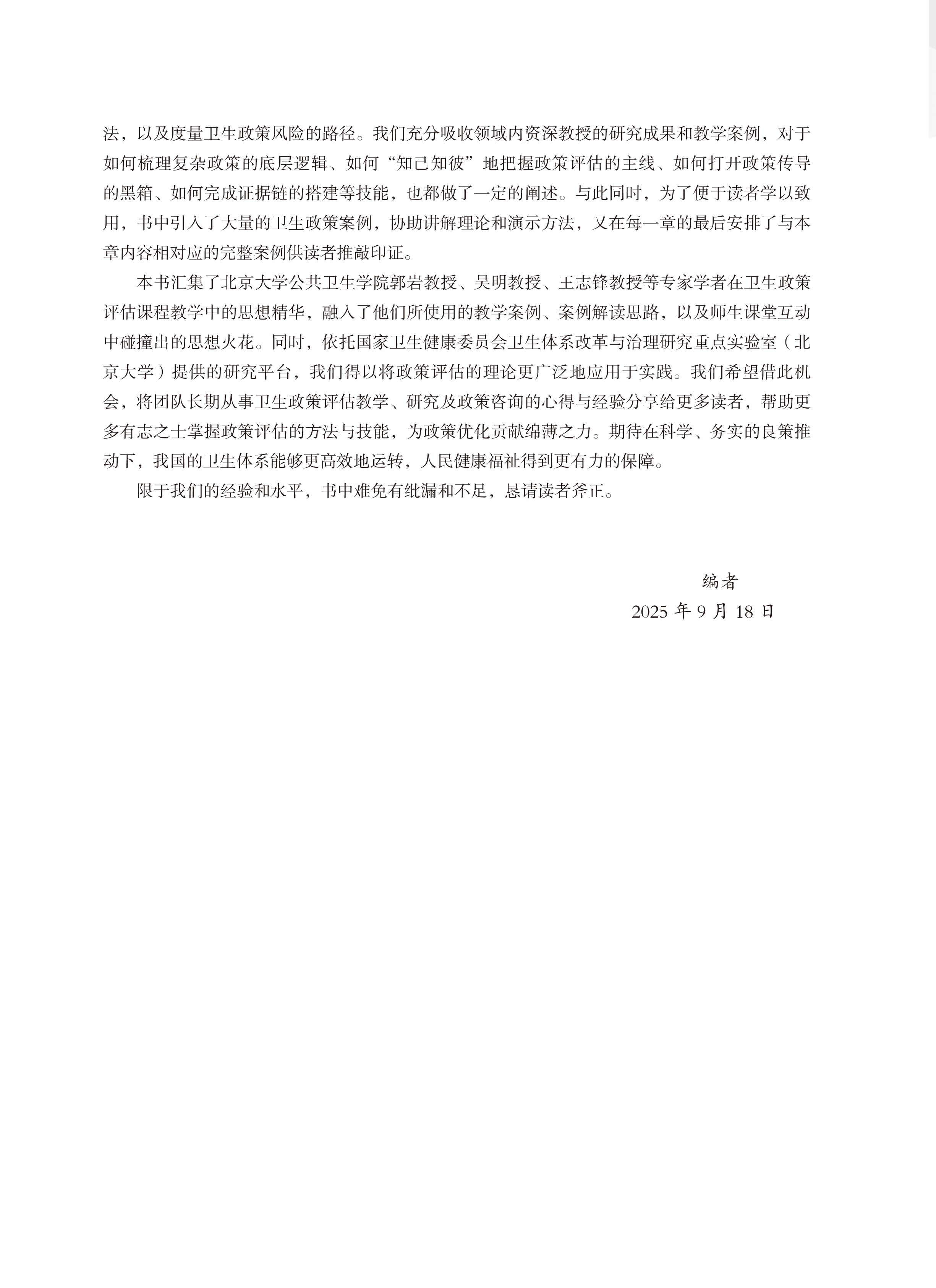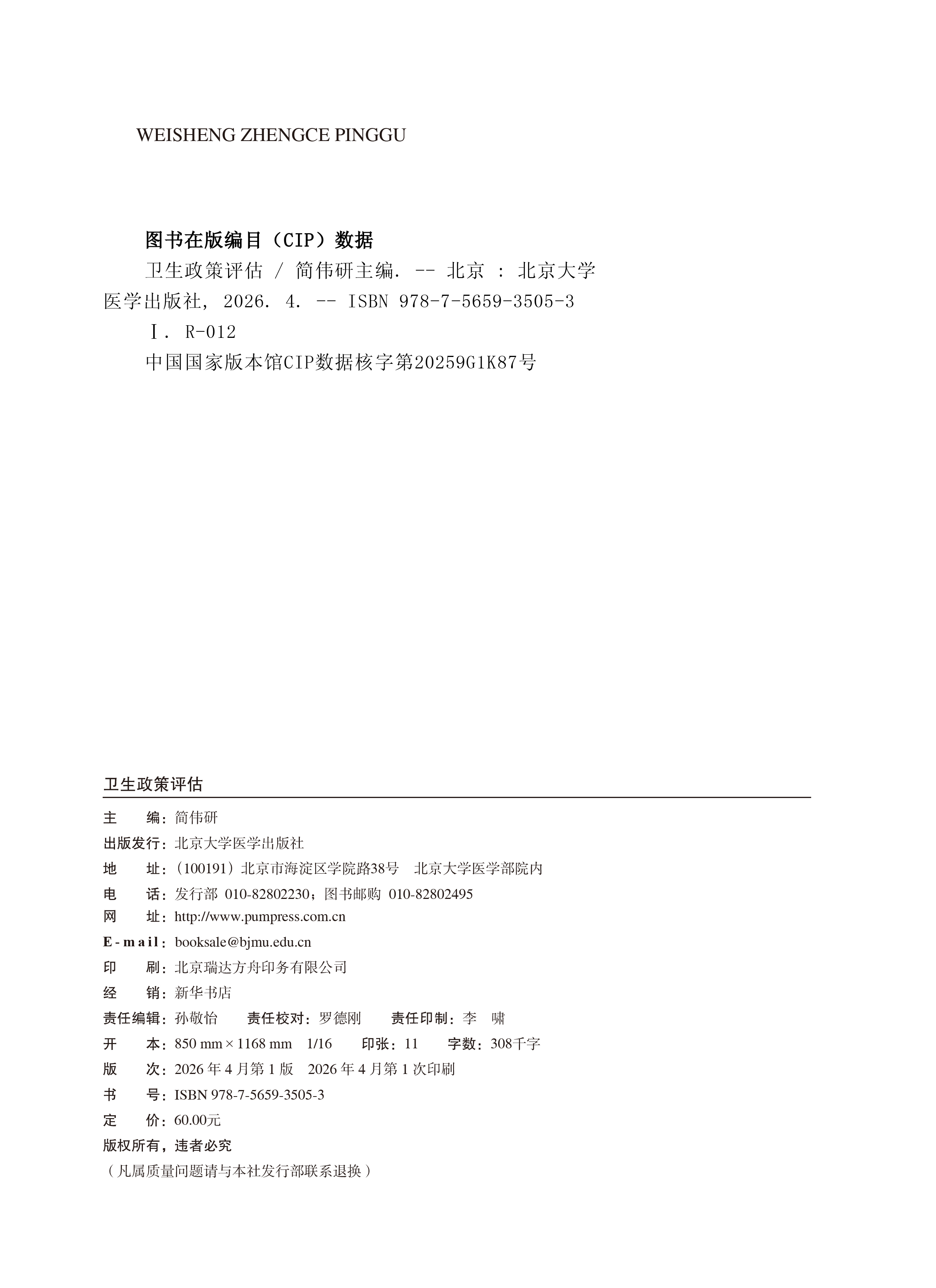 卫生政策评估 简伟研 主编 北医社