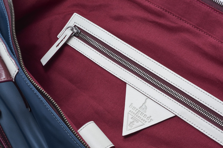轻量周末包,碧蓝色轻量尼龙,搭配酒红植鞣皮革