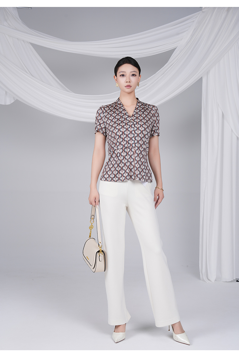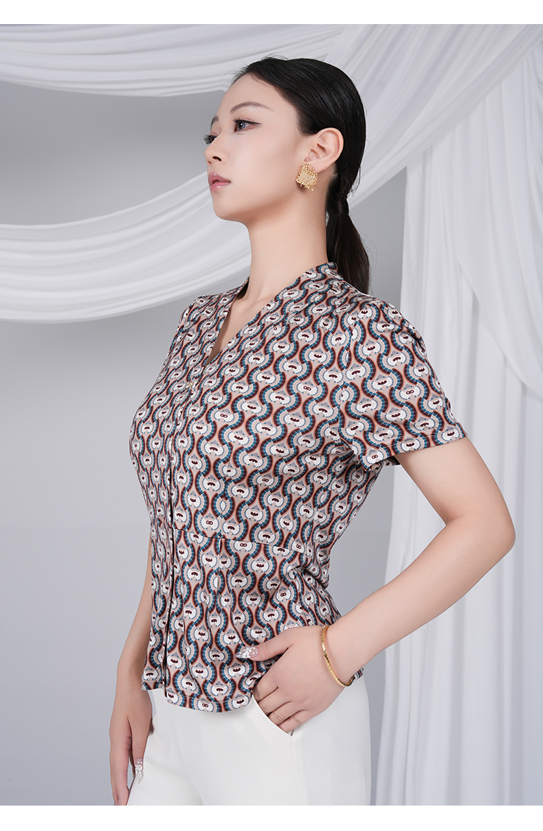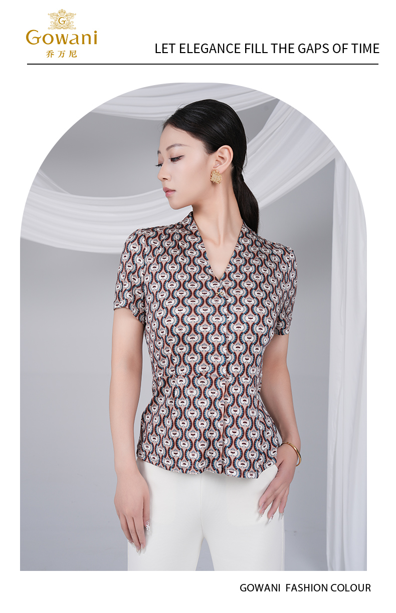 乔万尼马赛克咖花设计感100%真丝上衣ED2C462