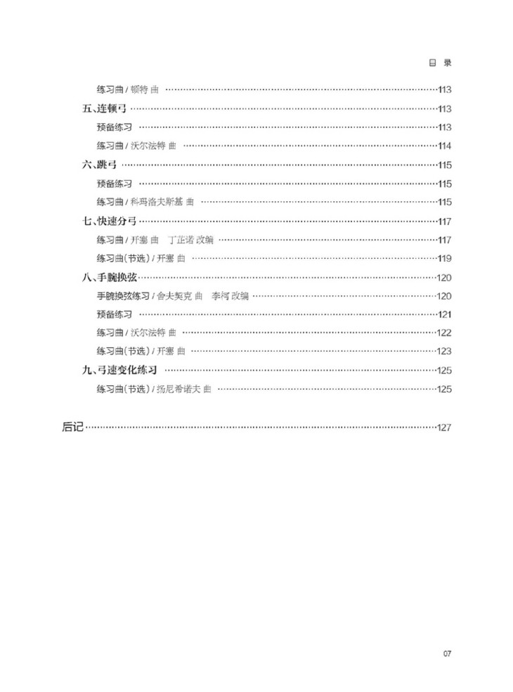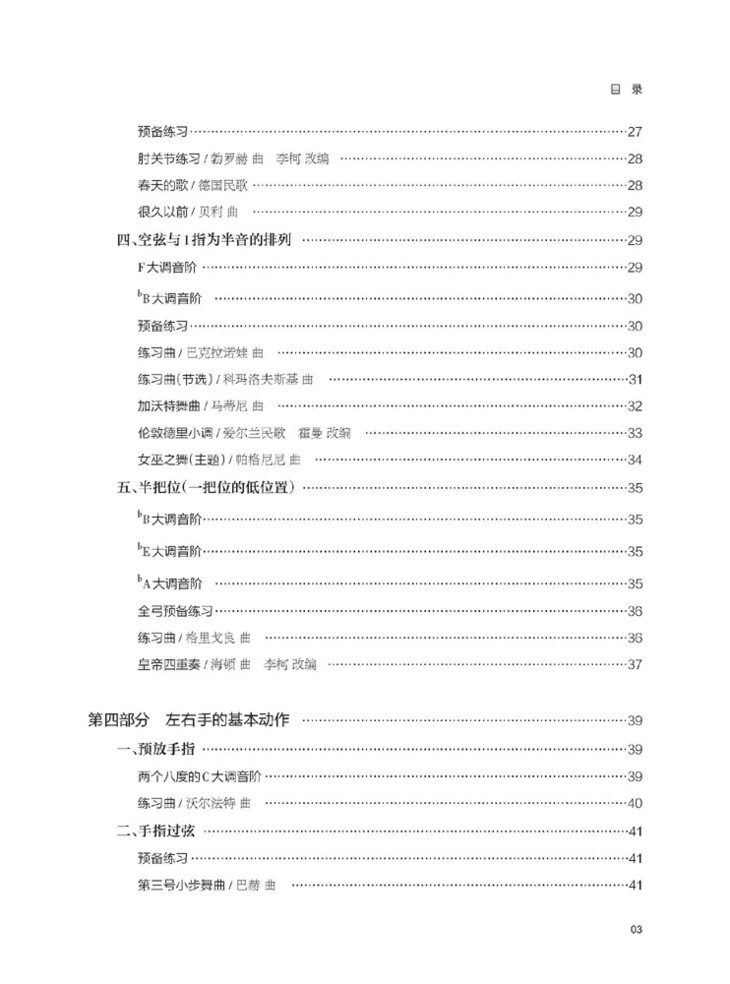 该书系我社“器乐教学丛书”弦乐艺术系列之一,是针对小提琴初学者而编写的综合教材,共五个部分:基本姿势、右手的初级练习、左手的基本排列、左右手的基本动作、左右手的进一步练习。每个部分以课的形式设计,共36课,一课围绕一个技术动作进行训练,包括预备练习、练习提示、练习曲、乐曲以及示范视频等,用简洁通俗的语言、趣味易懂的谱例、立体直观的视频,从多方位、多角度对每一个技术动作进行深化训练,初学者很快就能掌握基础的弓法技巧。每课之间按初学小提琴技巧使用的逻辑关系进行编配,循序渐进直至更高程度。