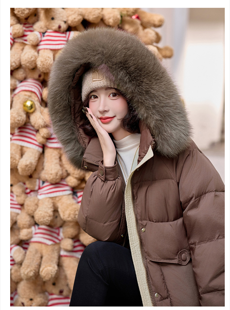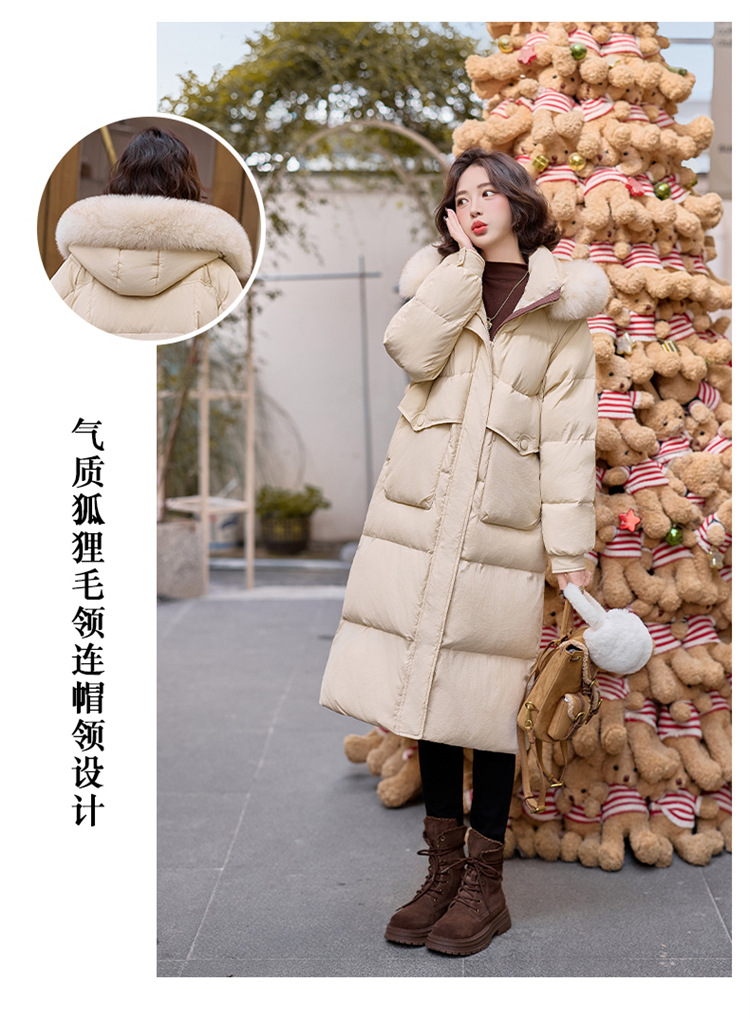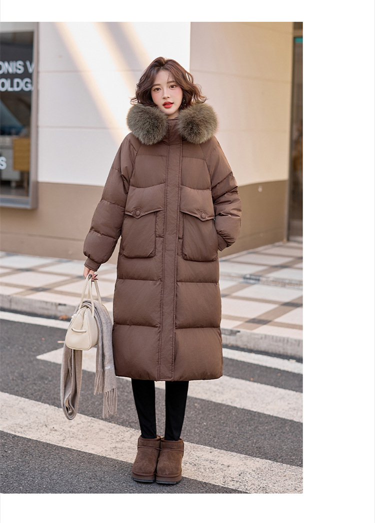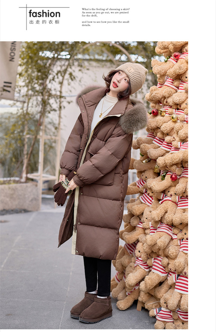 HR SYY8806休闲风长款羽绒服时尚休闲狐狸毛连帽外套 商品图4