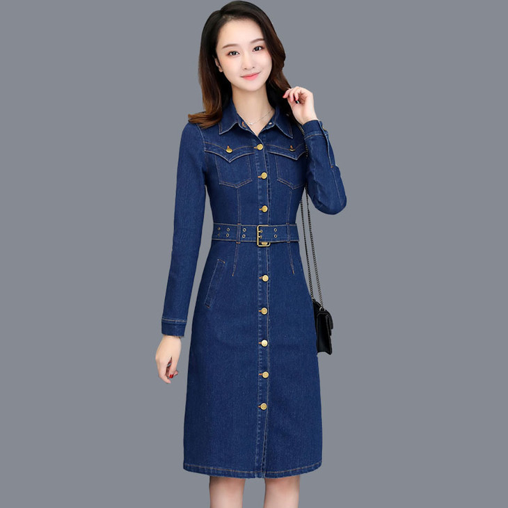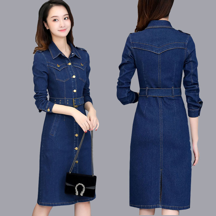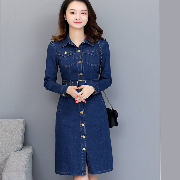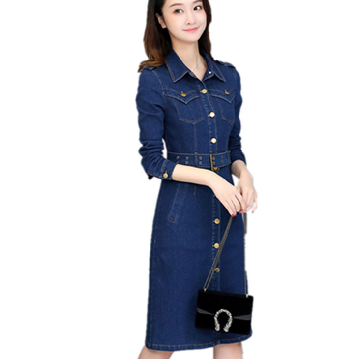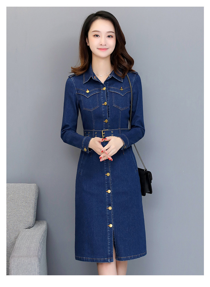 PDD-韩版修身收腰显瘦包臀牛仔裙连衣裙