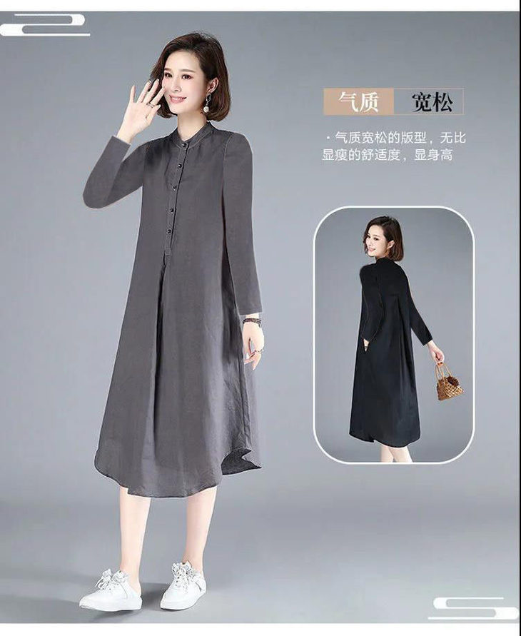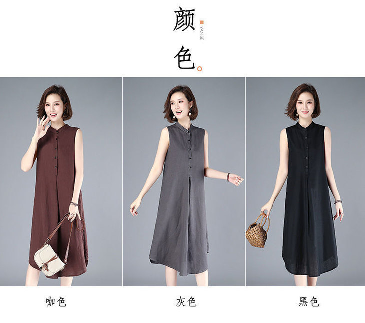 AA JM锦棉竹节麻韩版宽松显瘦遮肚连衣裙