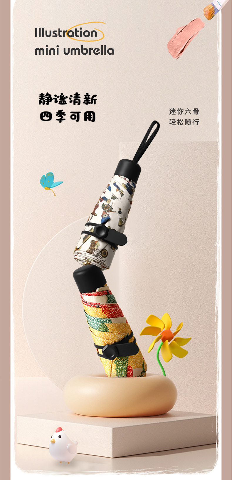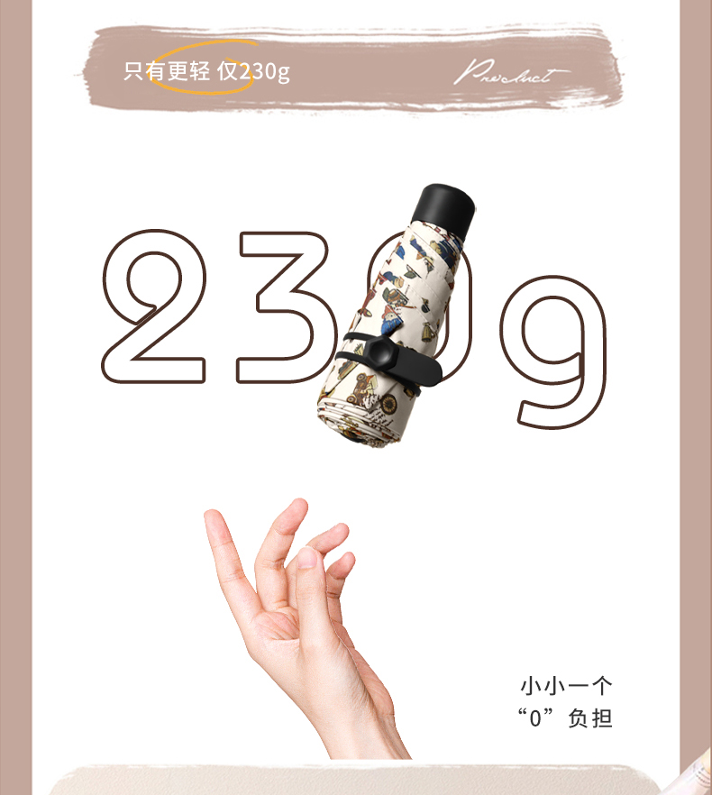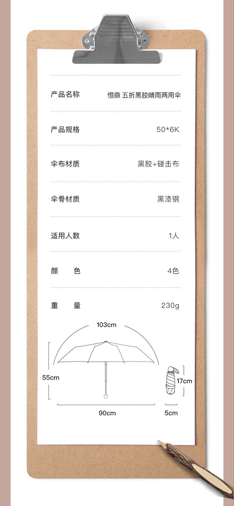 【恒鼎 五折黑胶晴雨两用迷你伞】一只230G,黑胶材质,四季可用,掌心之物,方便携带,轻到无感,黑胶更高级更扛风更防晒~
