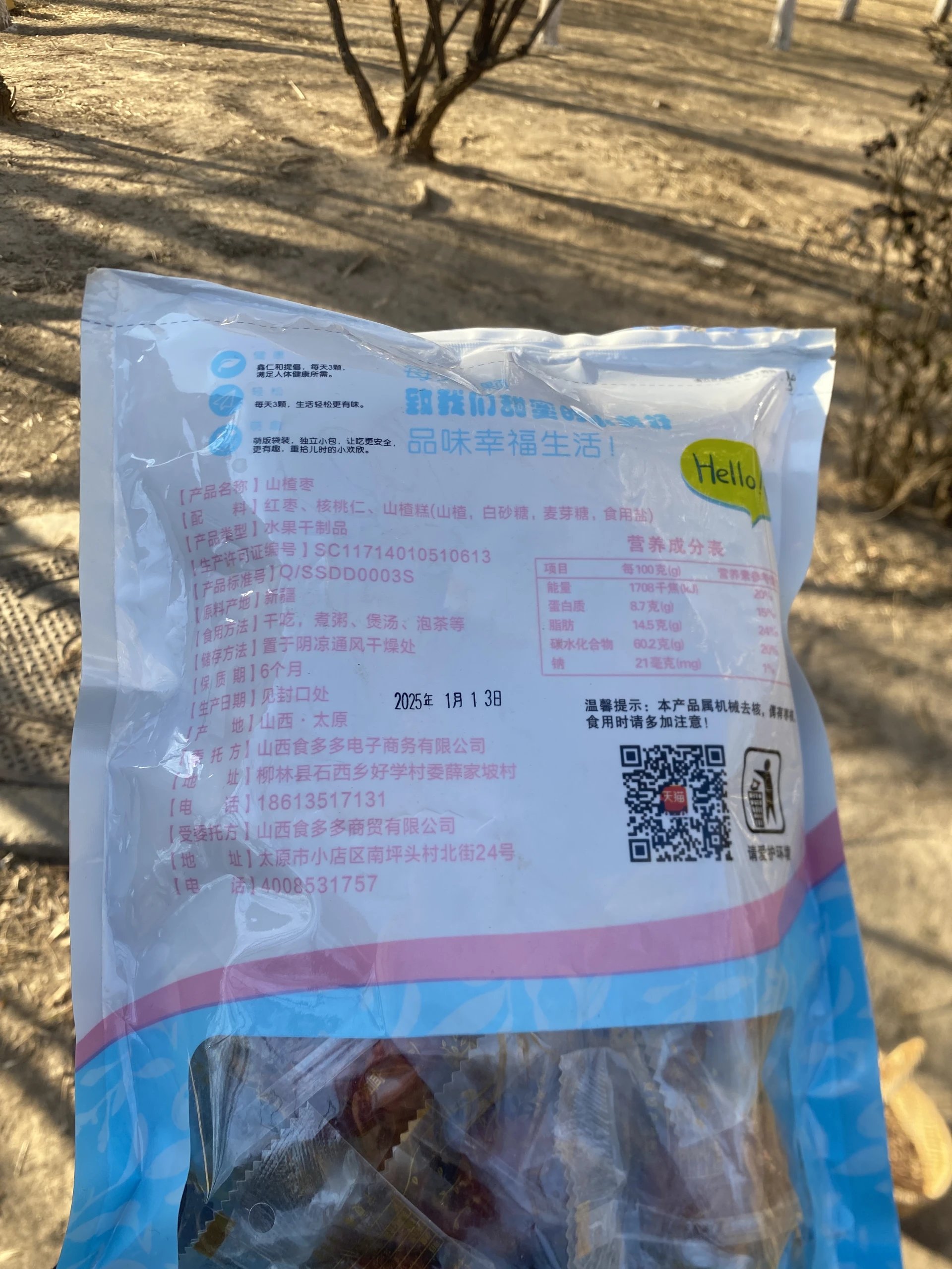 【品名】枣夹核桃夹山楂 【规格】500g/袋 【生产日期】2025年3月 【保质期】6个月 【产地】山楂太原 【发货地】山西 【发货快递】随机不指定 【发货时效】48小时 【发货区域】新疆西藏海南不发 【关于售后】食品类不支持七天无理由 【申请依据】坏品同包装袋一起拍照提供 【温馨提示】气温高于25温度,建议冷藏冷冻后,口感更佳