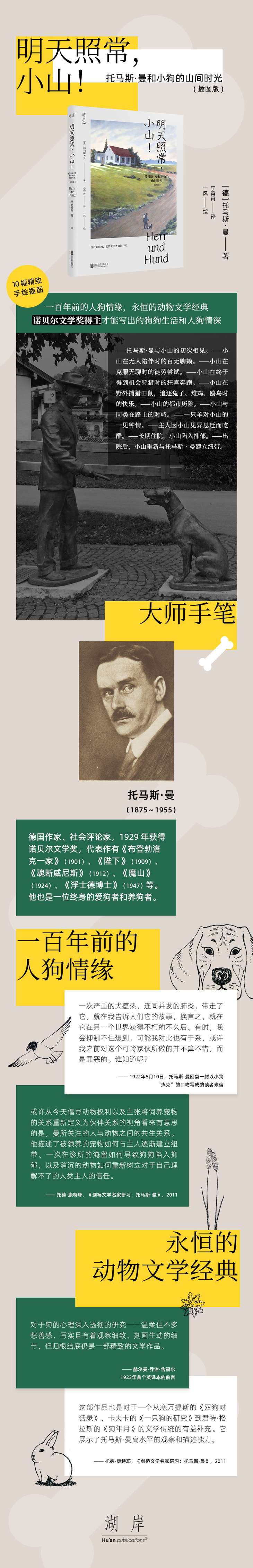 托马斯•曼(1875~1955),德国作家、社会评论家,1929年获得诺贝尔文学奖,代表作有《布登勃洛克一家》(1901)、《陛下》(1909)、《魂断威尼斯》(1912)、《魔山》(1924)、《浮士德博士》(1947)等。他也是一位终身的爱狗者和养狗者。