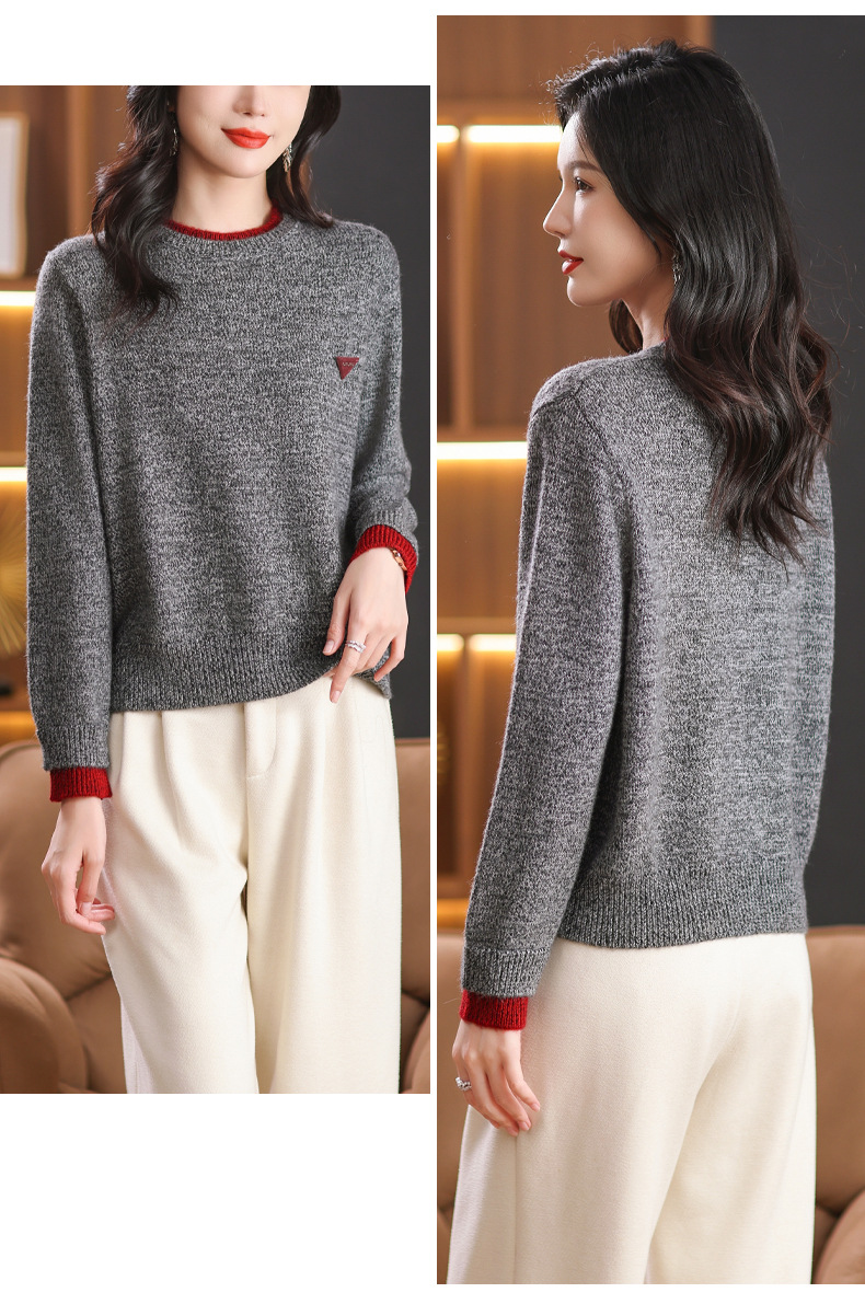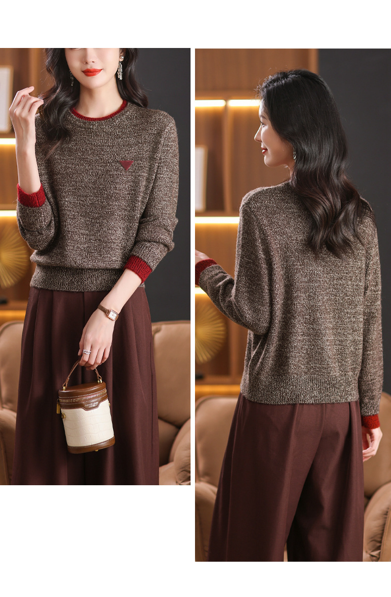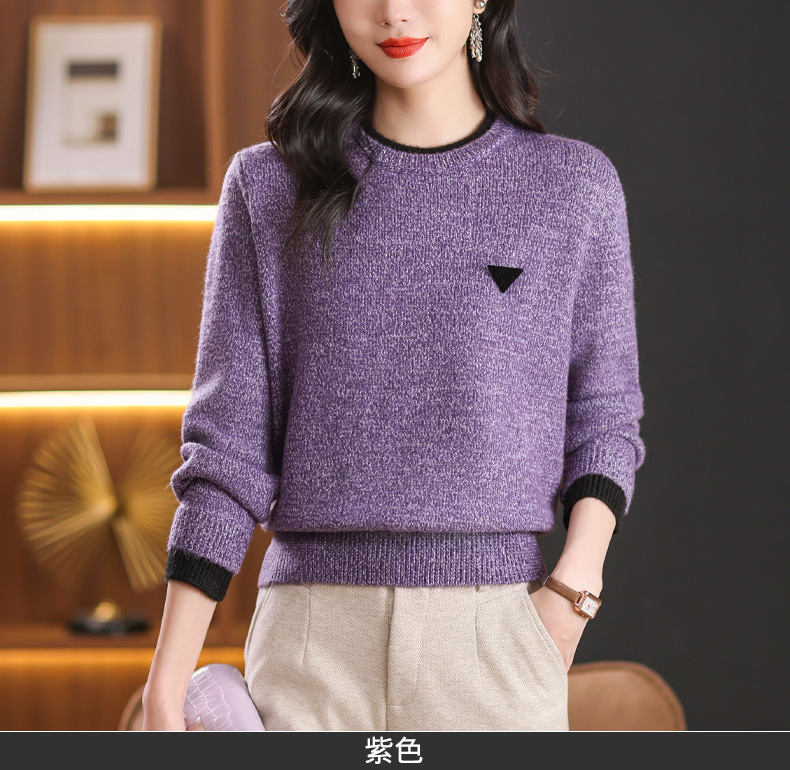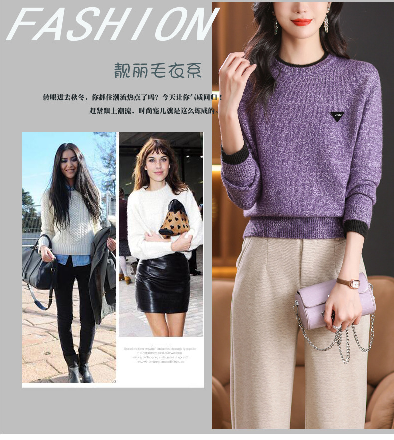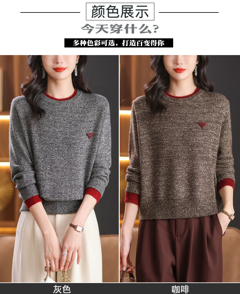 CC-102-8766圆领毛衣女冬厚款2024秋冬新款宽松短款保暖针织打底衫上衣
