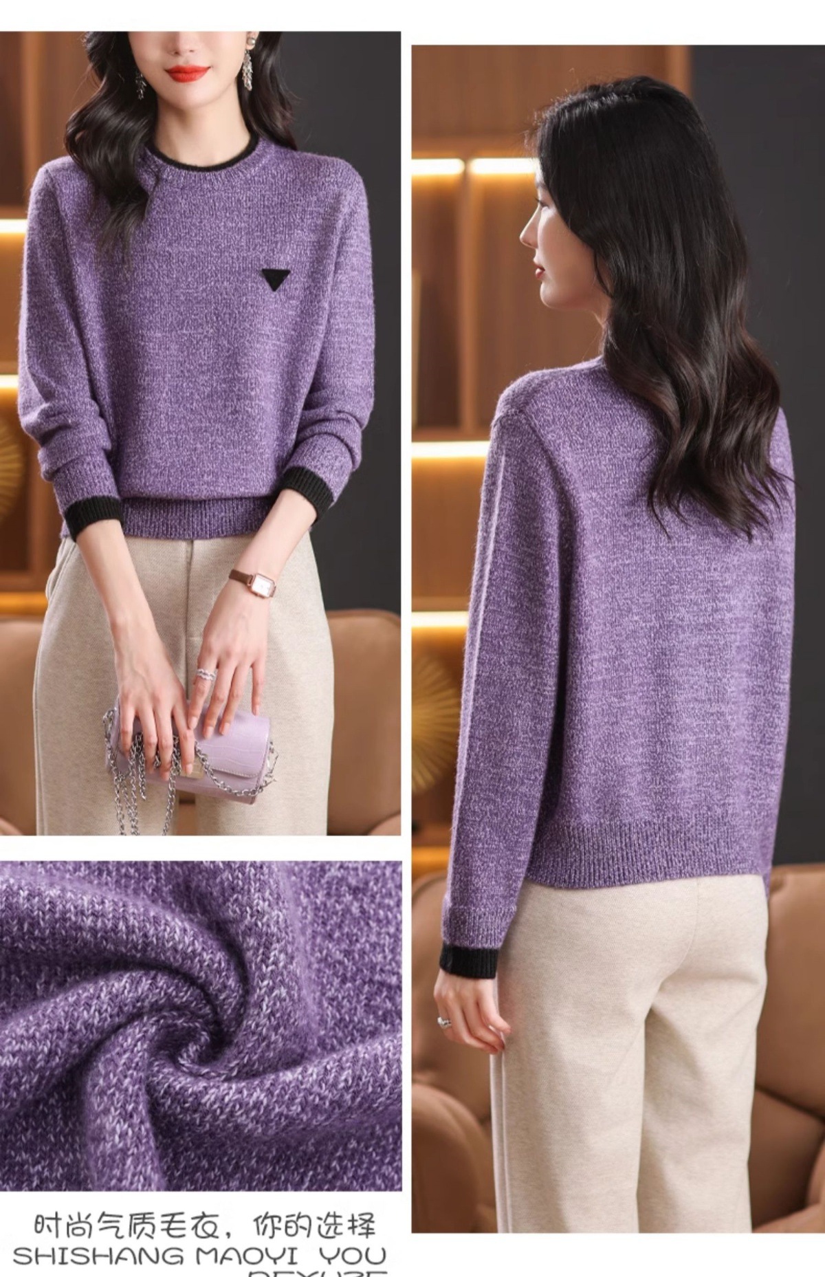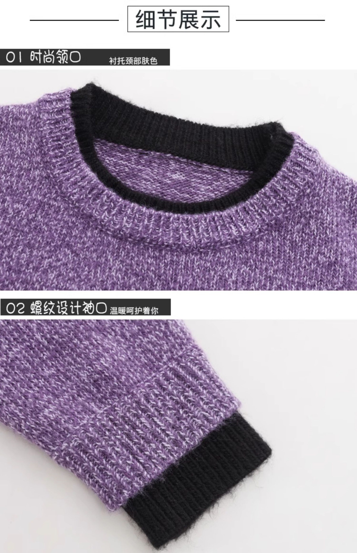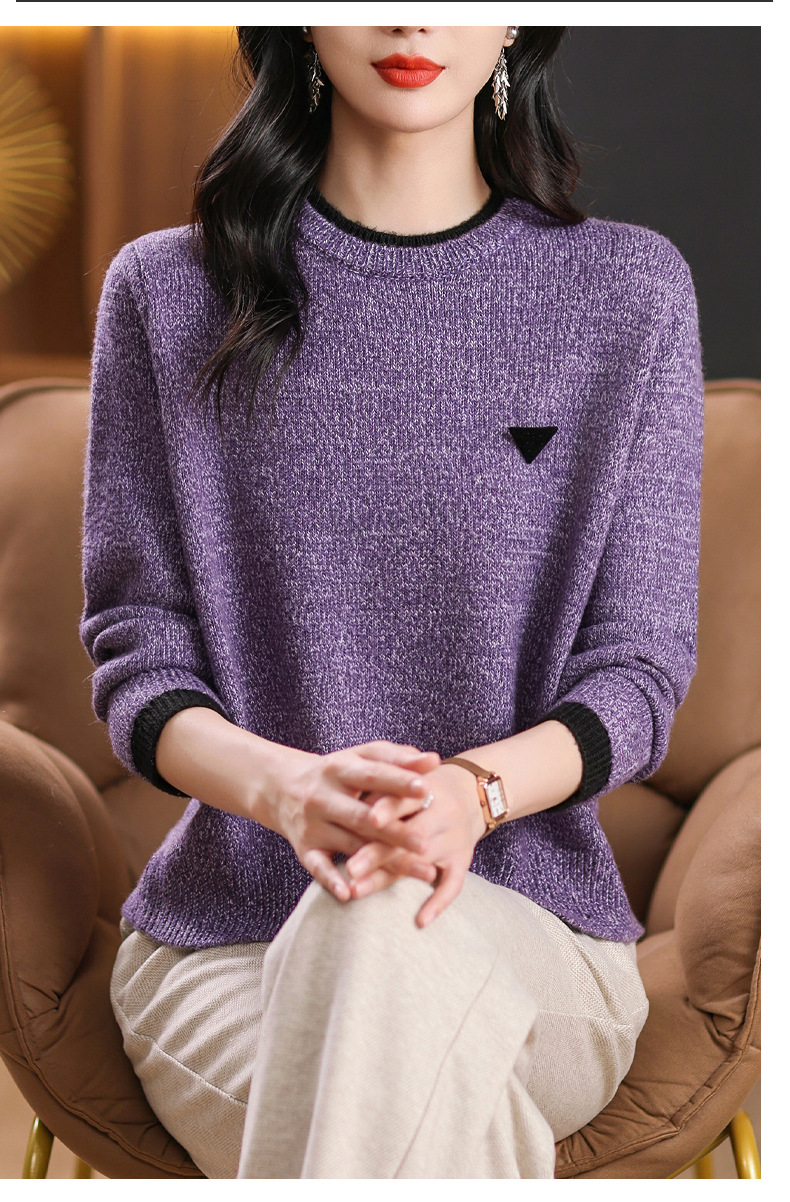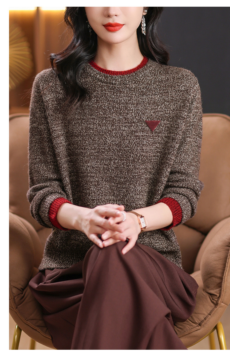 CC-102-8766圆领毛衣女冬厚款2024秋冬新款宽松短款保暖针织打底衫上衣