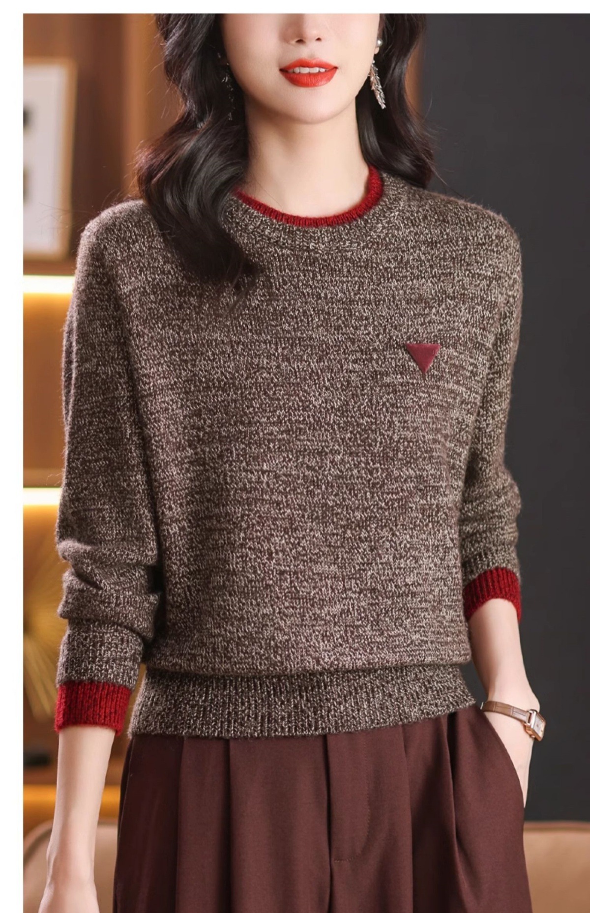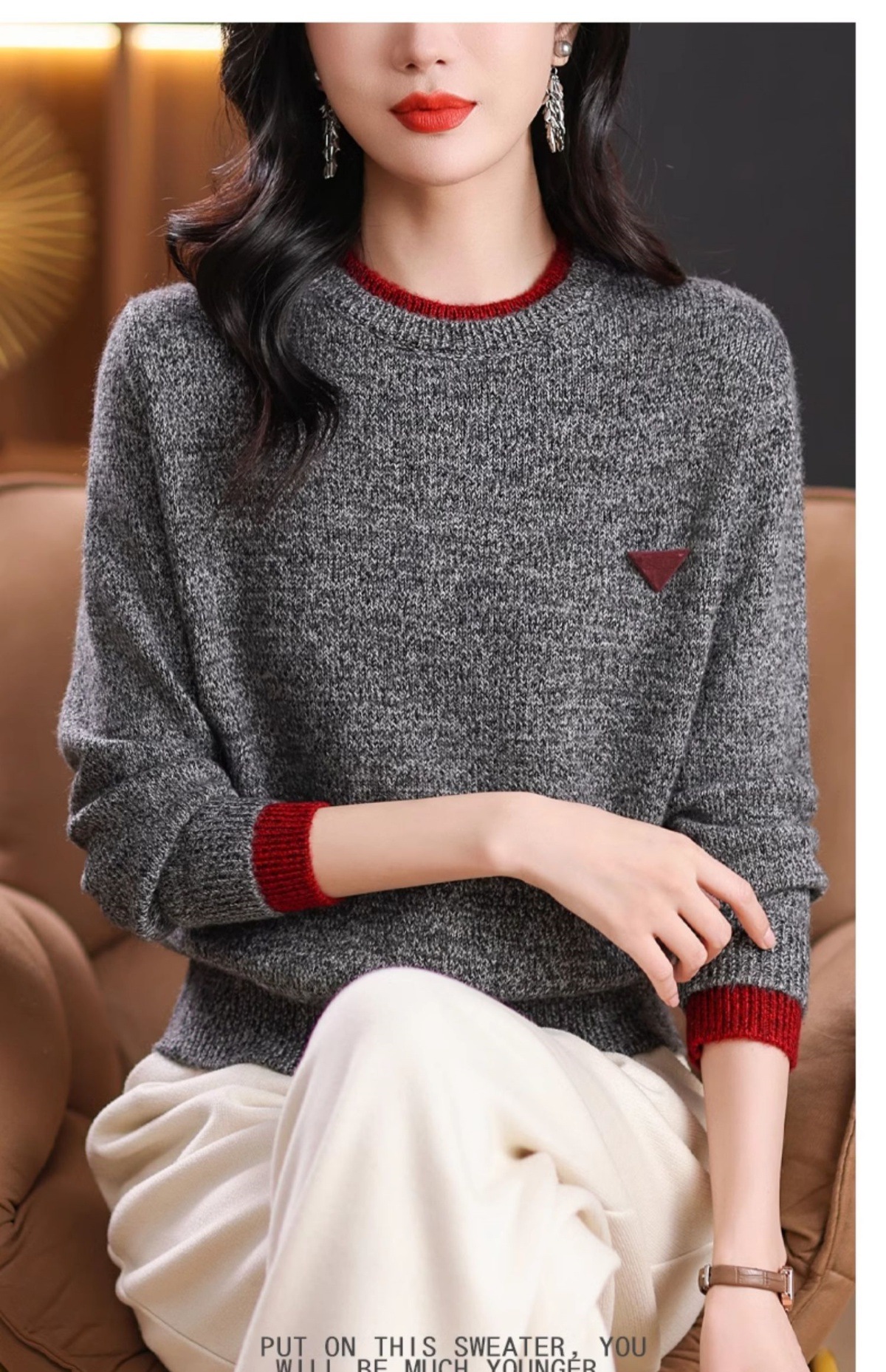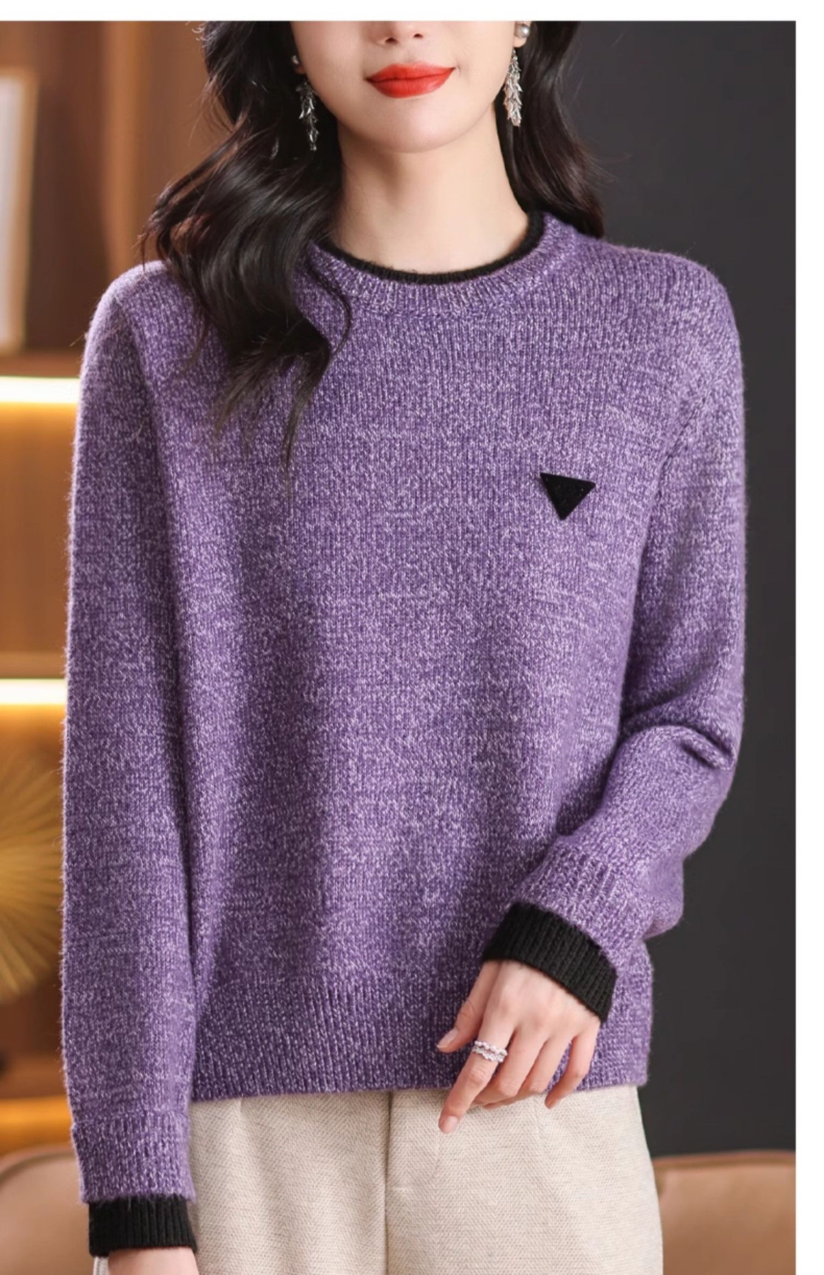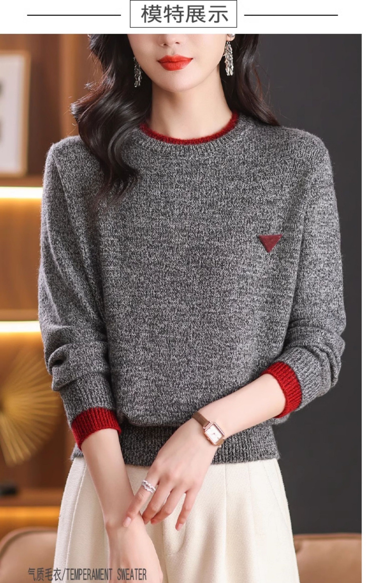 CC-102-8766圆领毛衣女冬厚款2024秋冬新款宽松短款保暖针织打底衫上衣