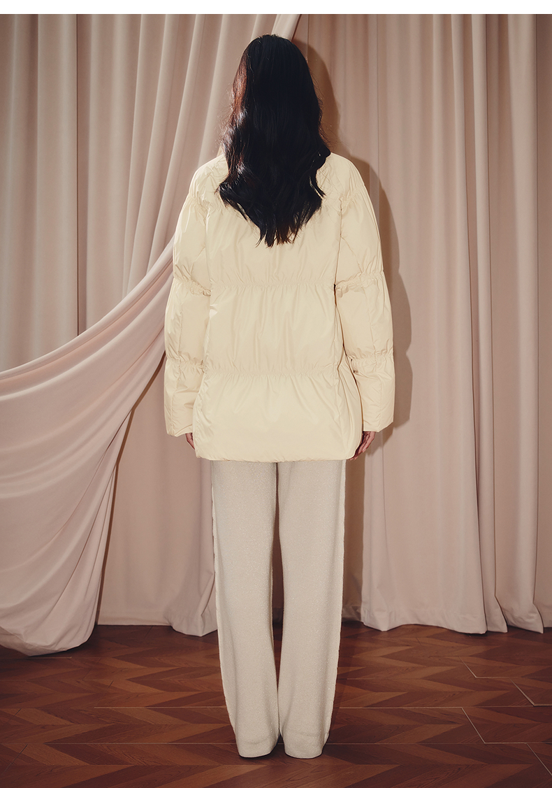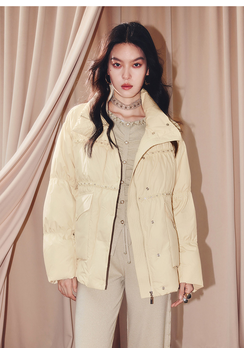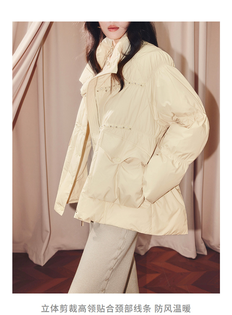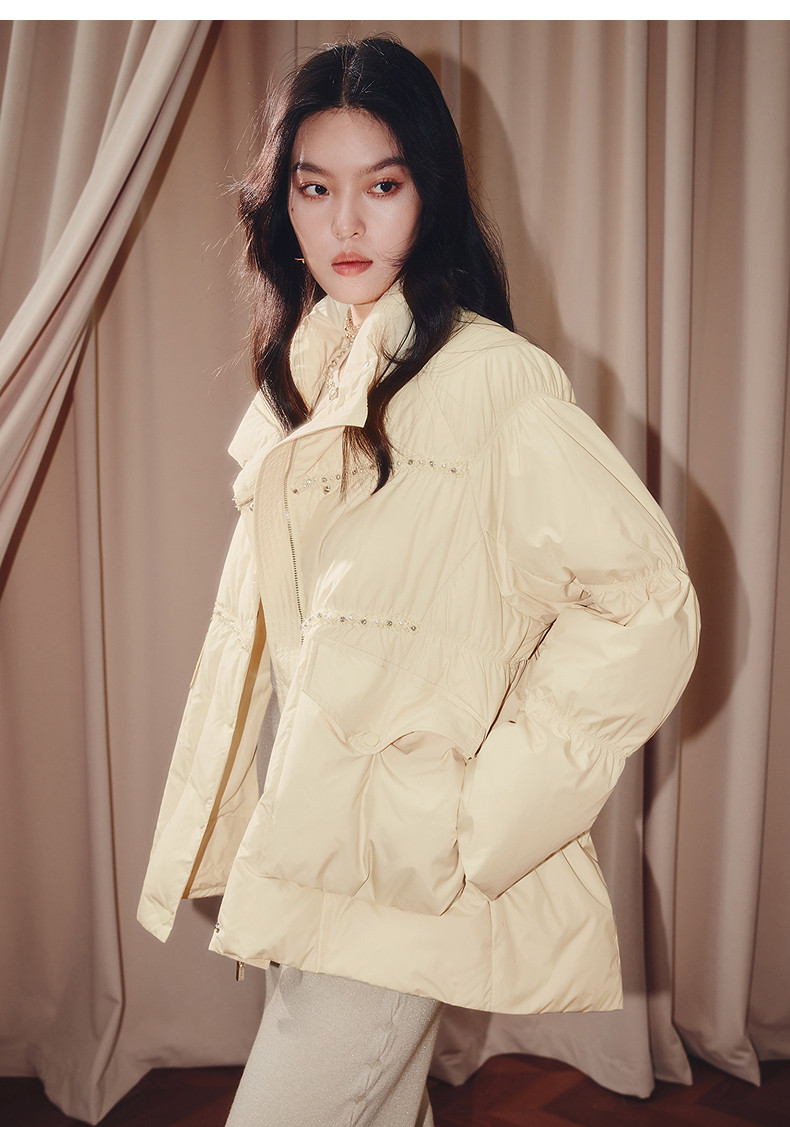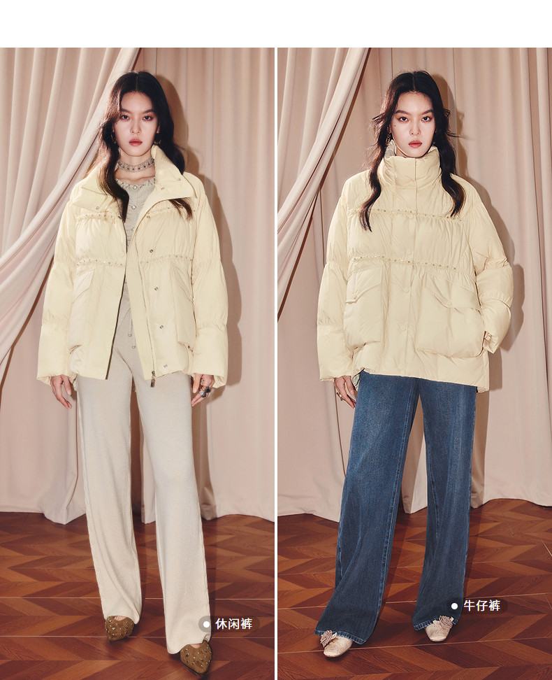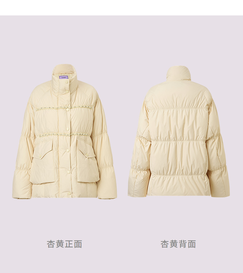 天虹玛克门店发货:复古翻领廓形杏黄色羽绒服(货号:MU86DC503)