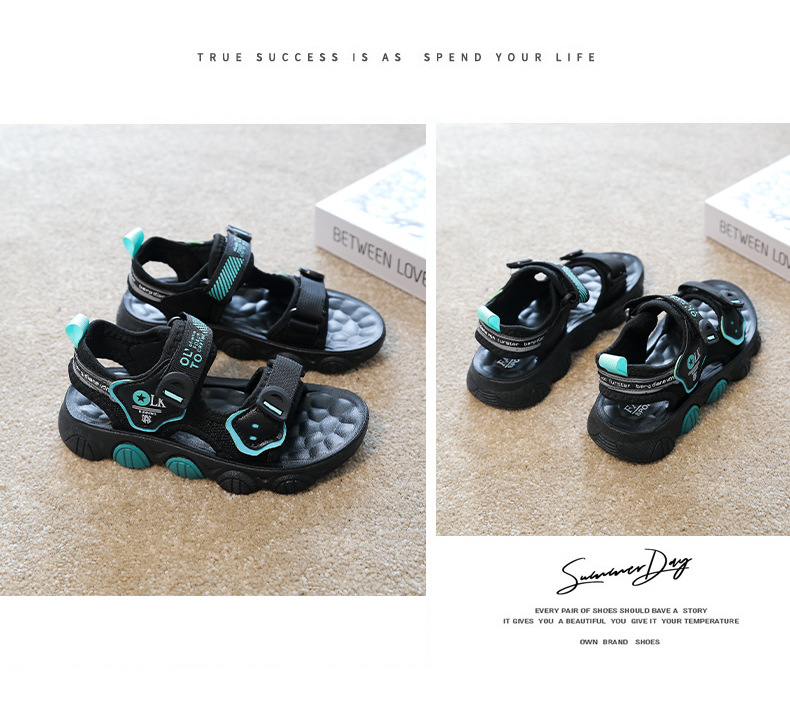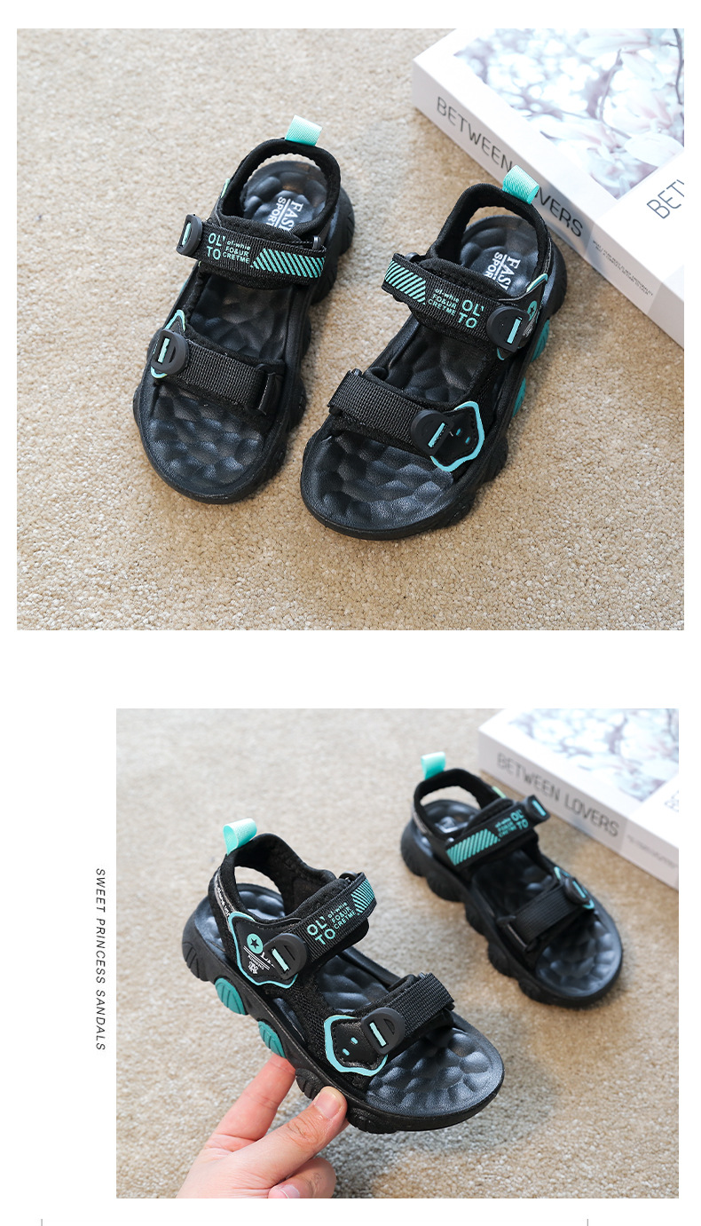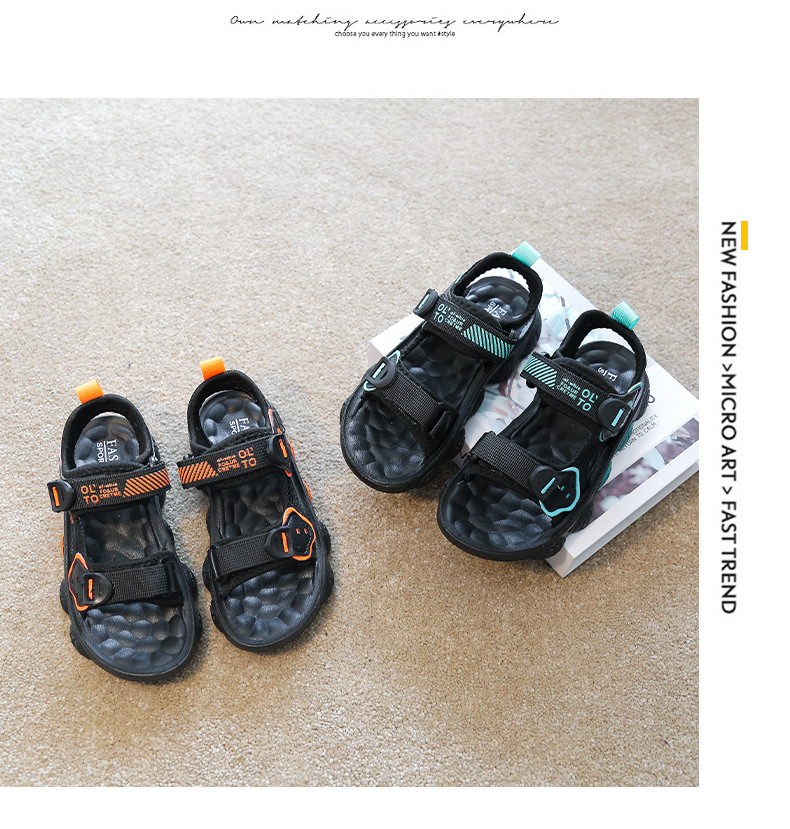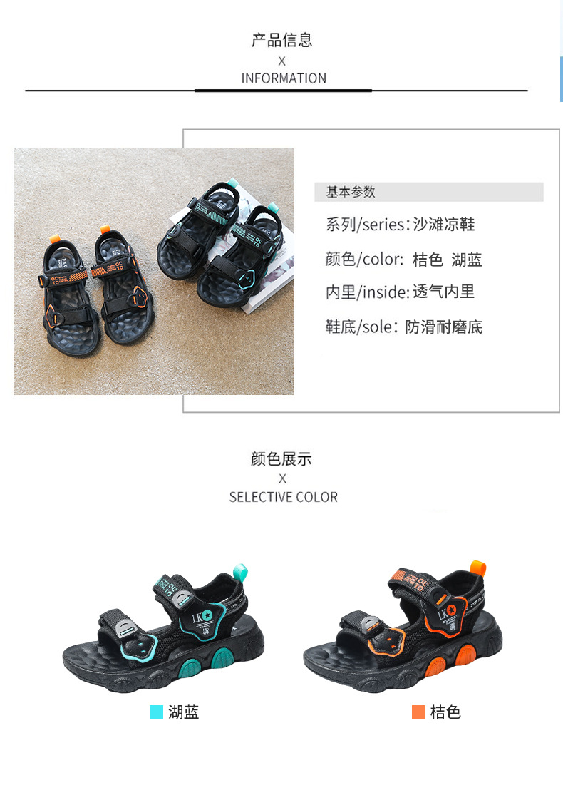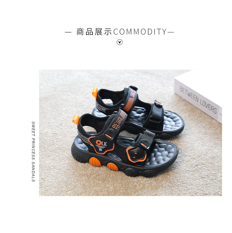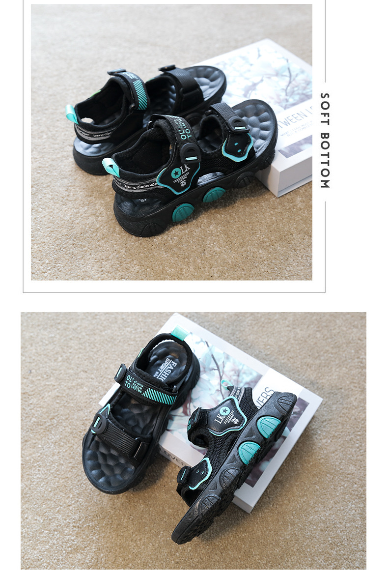 【时尚潮流设计,魔术贴方便穿脱】儿童凉鞋男童 超轻软底防滑耐磨 夏季新款 男孩小学生运动沙滩鞋子-QQ