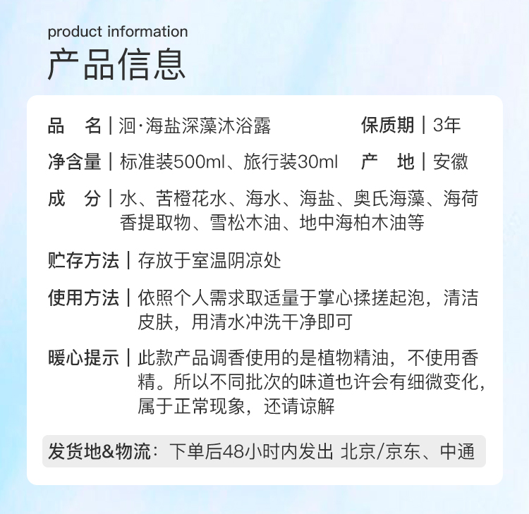洄·海盐深藻沐浴露 | 30ml/500ml 清洁保湿 敏感肌适用 橙花纯露 精油调香 雪松海茴香【自营】