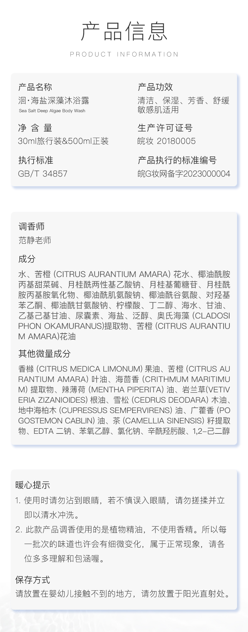 【立减10元+赠品】洄·海盐深藻沐浴露 | 500ml/瓶 清洁保湿 敏感肌适用 橙花纯露 精油调香 雪松海茴香【自营】