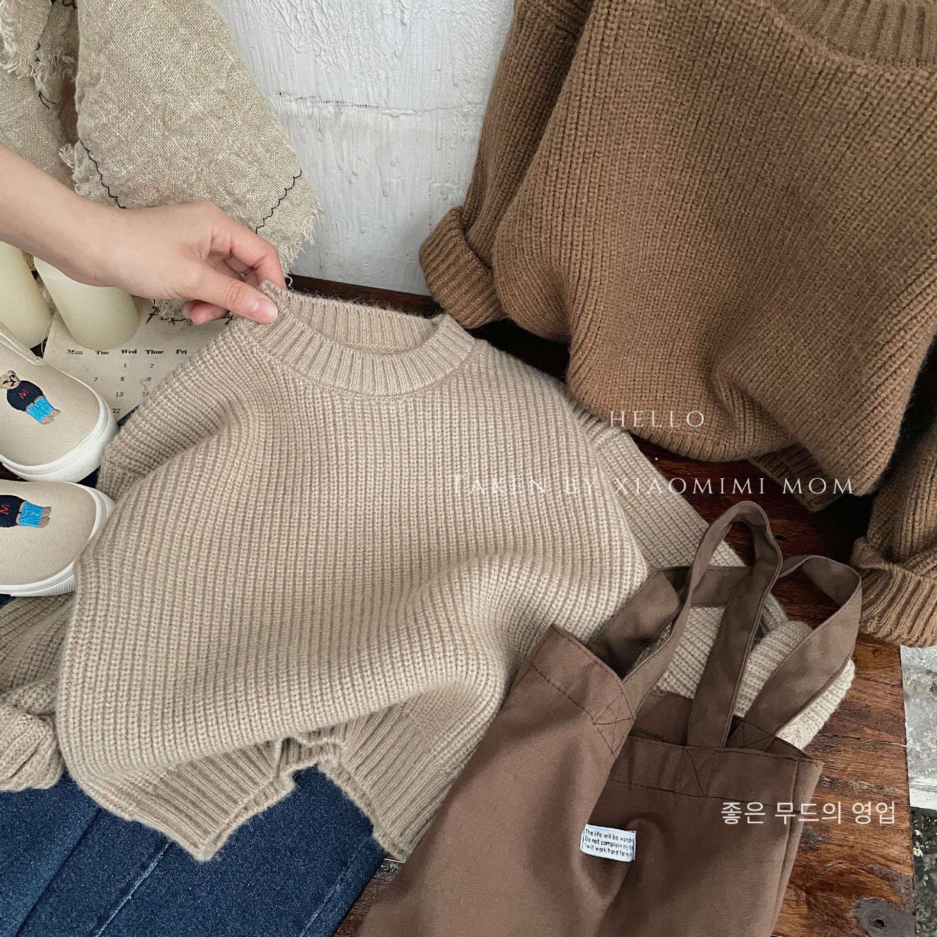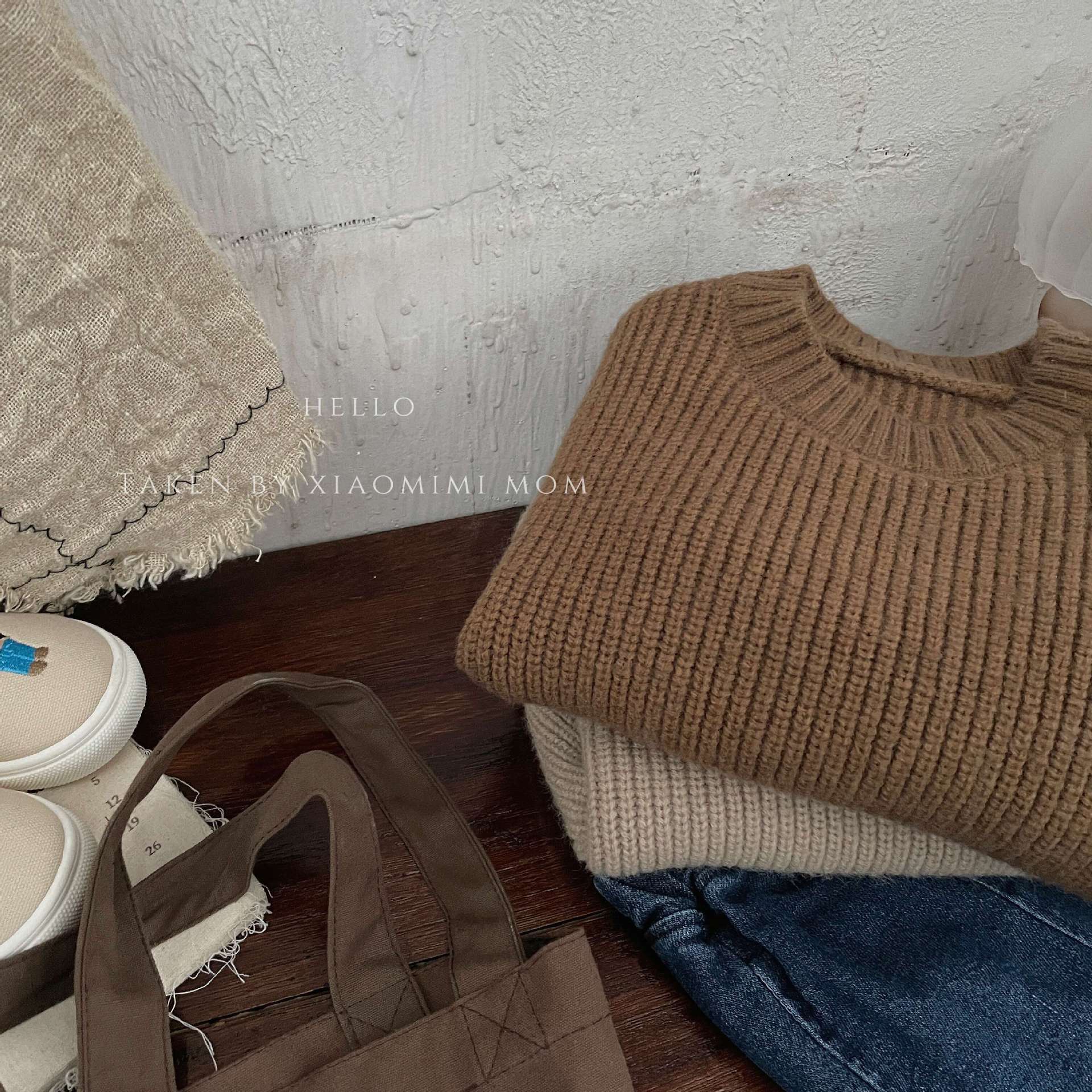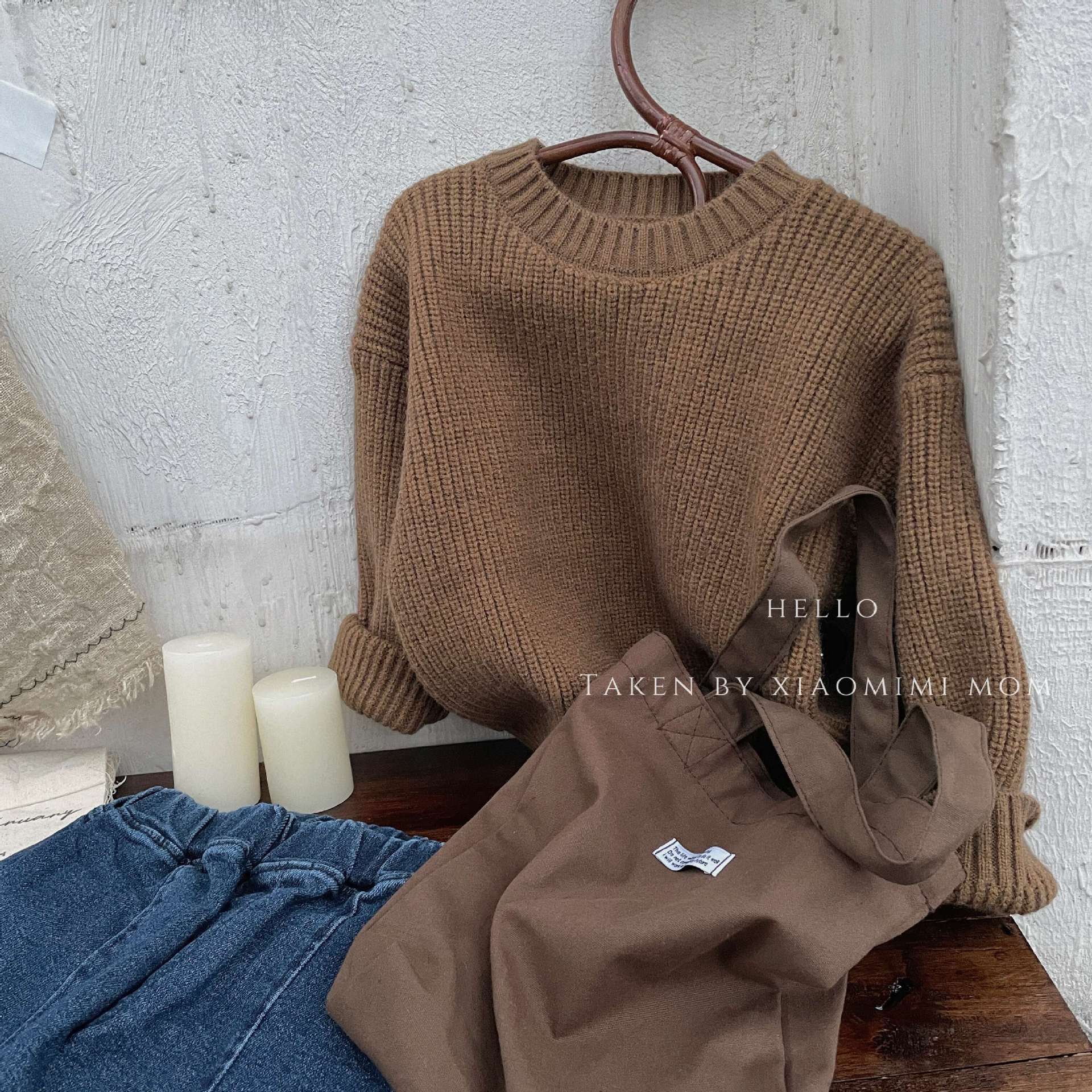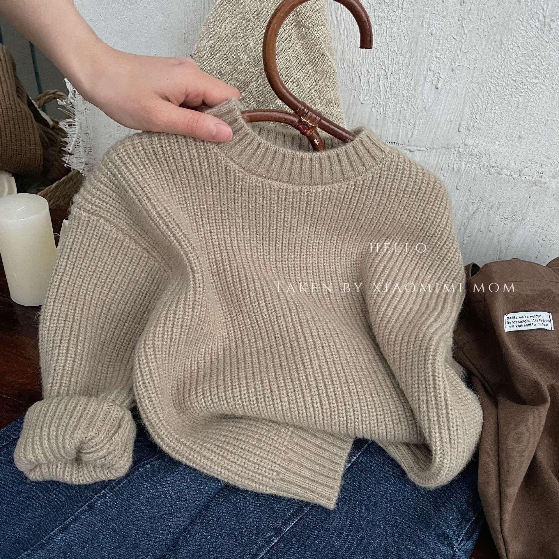 【纯色韩版设计,具显更加百搭!】2023秋冬新款,儿童厚实套头毛衣,韩版男女童洋气宽松纯色长袖外套lm