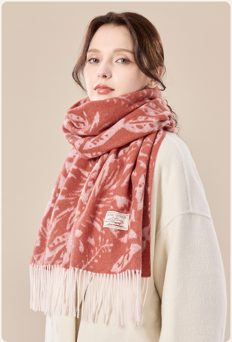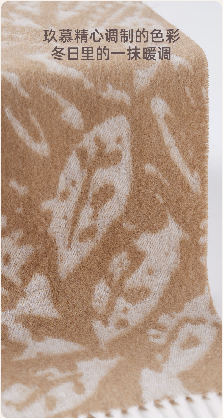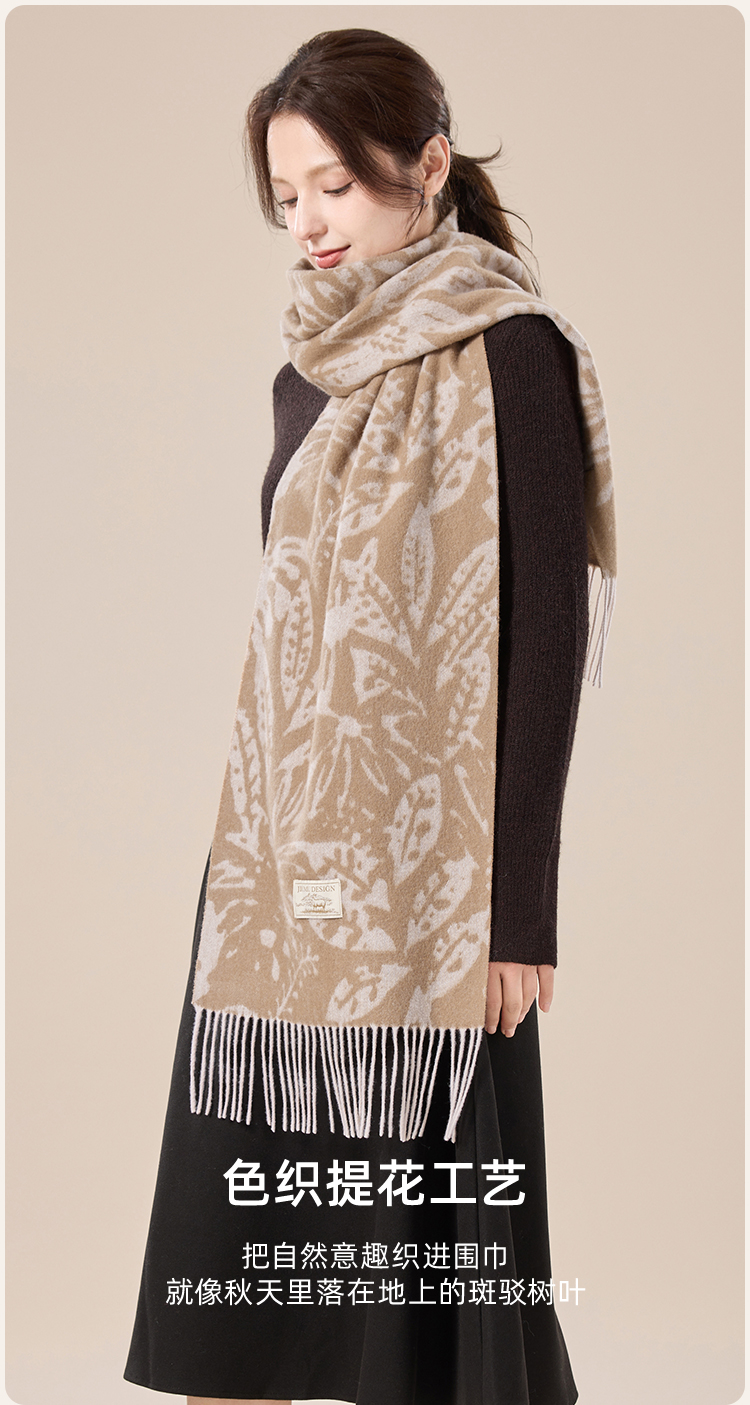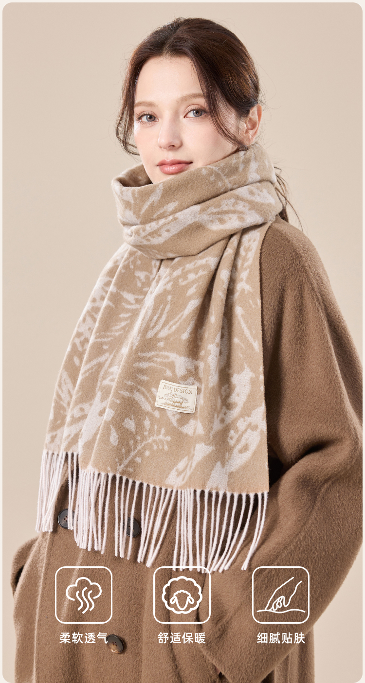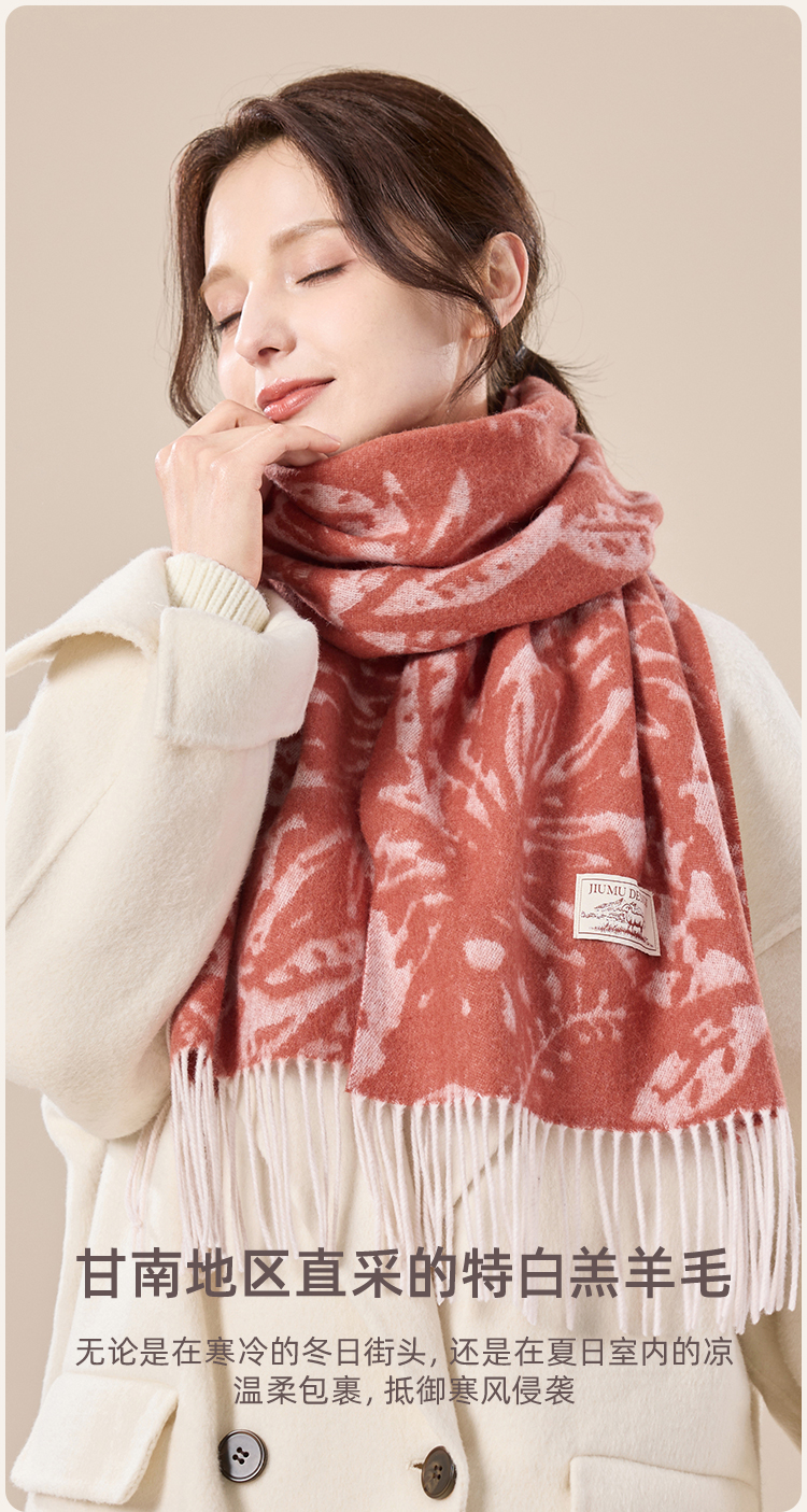 【特白羔羊毛 手感细腻温和】玖慕100%羊毛围巾女款SZ068 色织提花工艺 自然意趣织进围巾