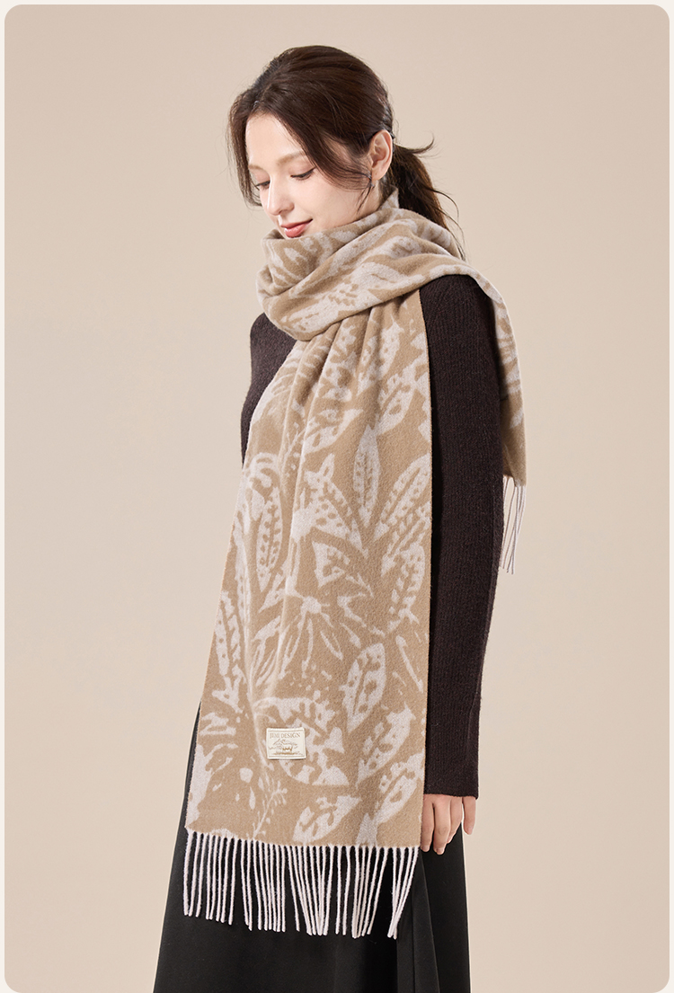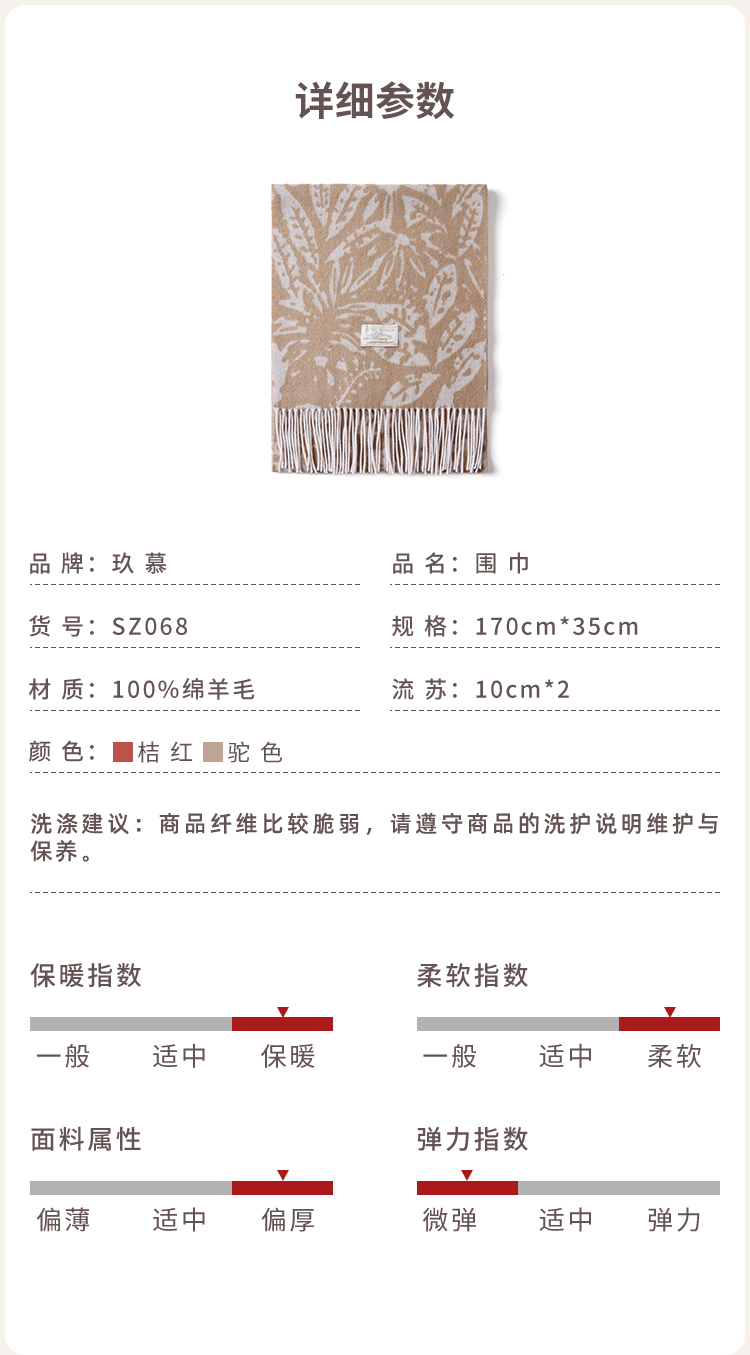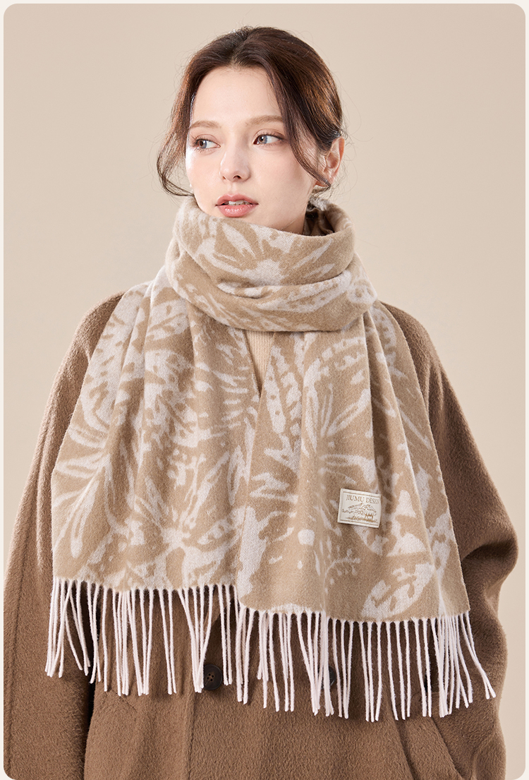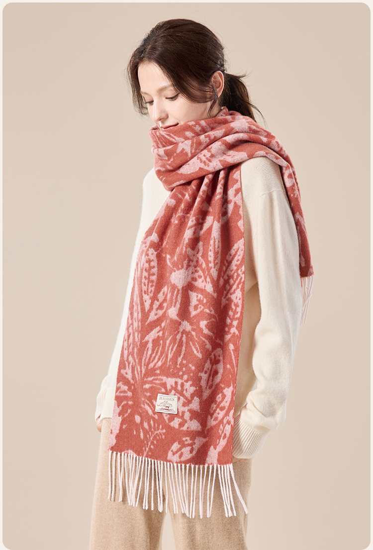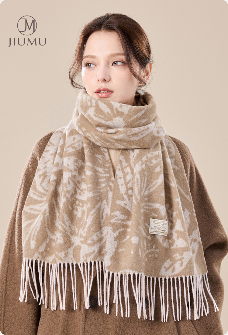 【特白羔羊毛 手感细腻温和】玖慕100%羊毛围巾女款SZ068 色织提花工艺 自然意趣织进围巾