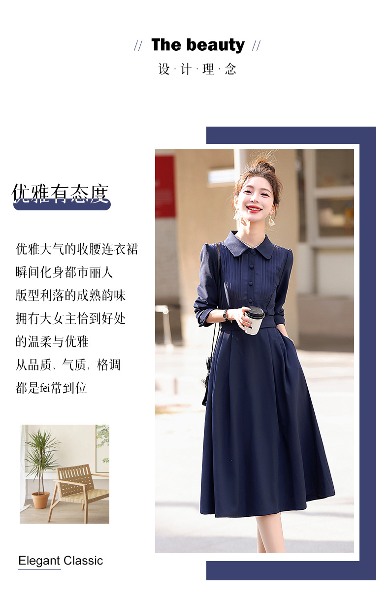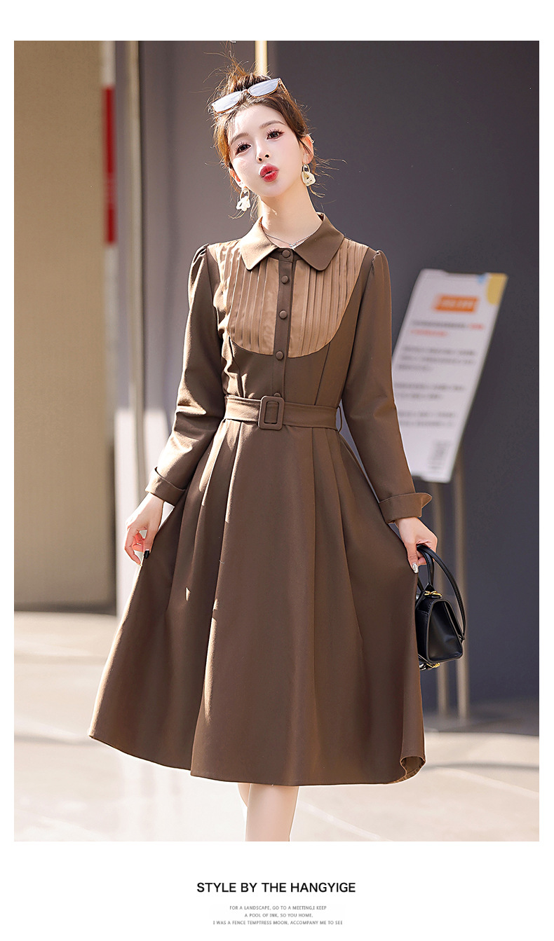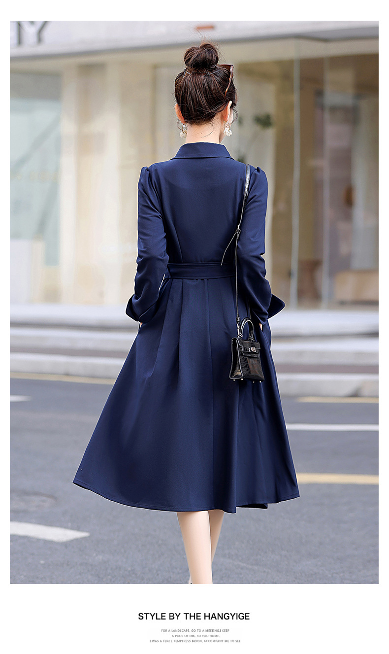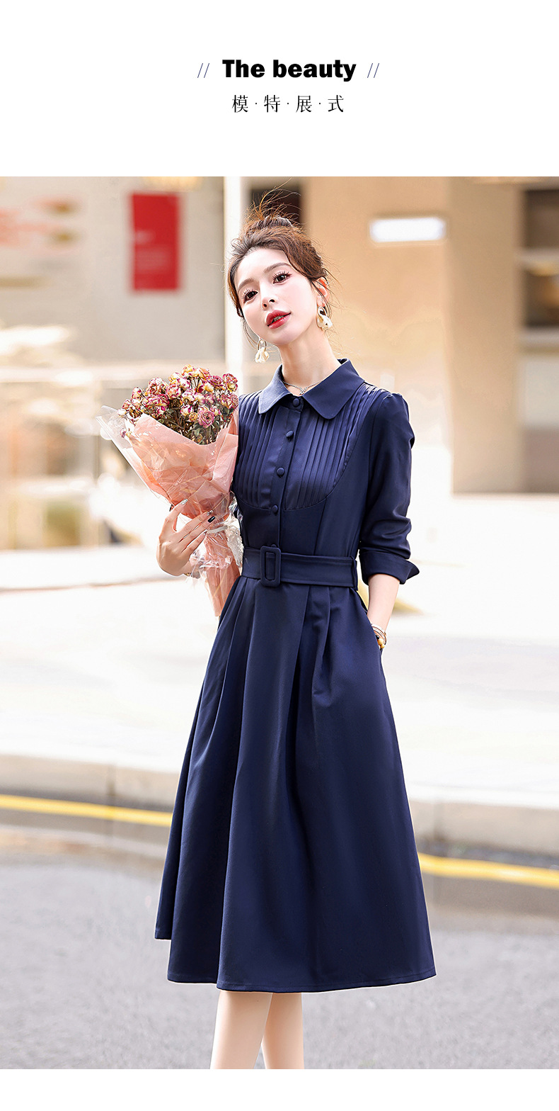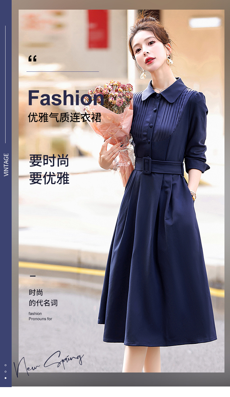 翻领衬衫袖单排扣褶皱,腰带修身显瘦优雅潮连衣裙HR-ZYFA8909