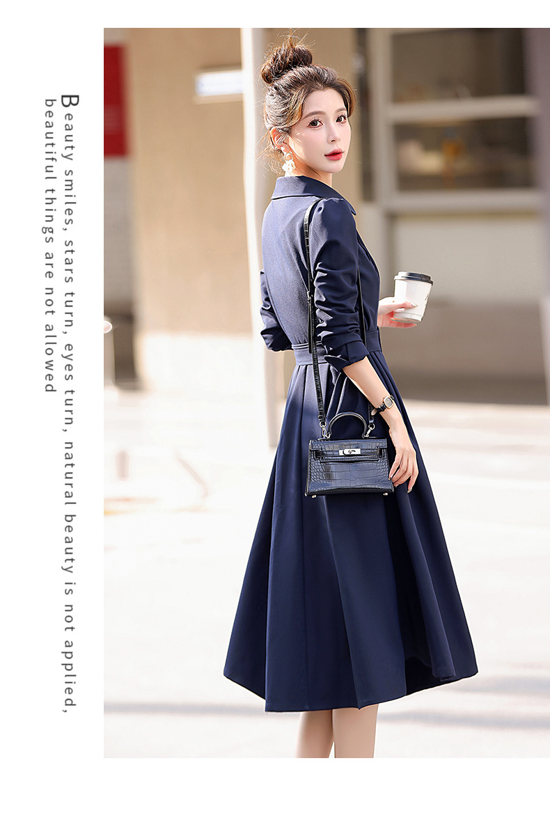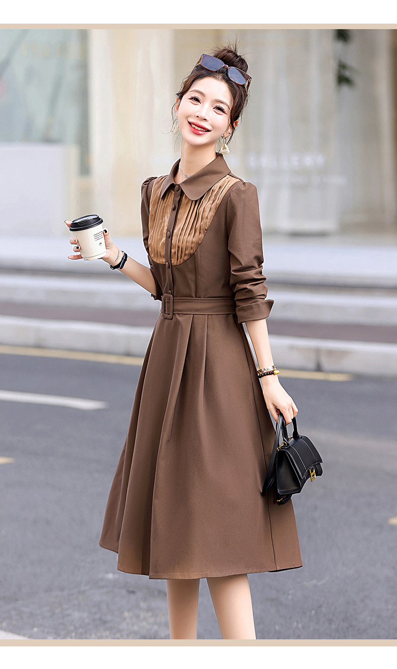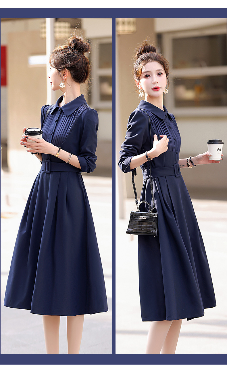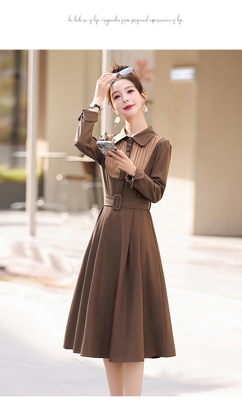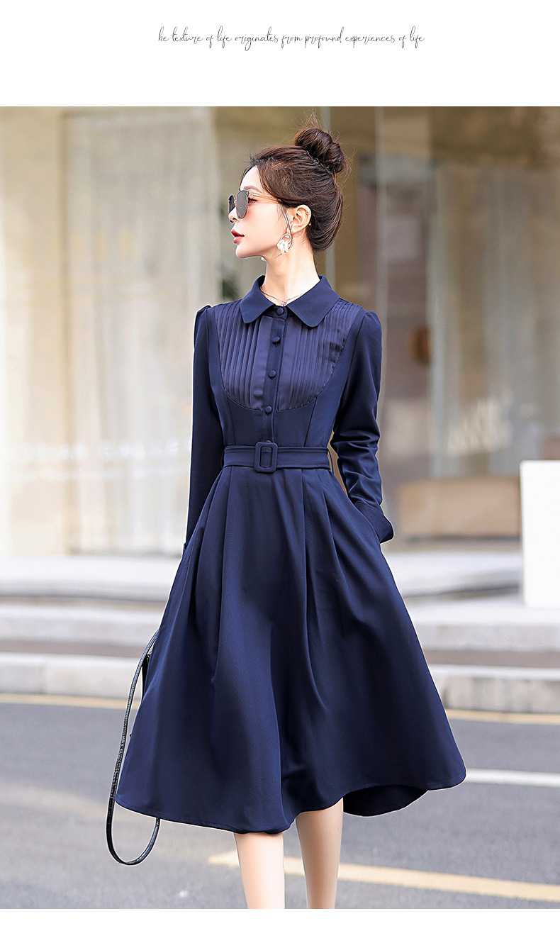 翻领衬衫袖单排扣褶皱,腰带修身显瘦优雅潮连衣裙HR-ZYFA8909