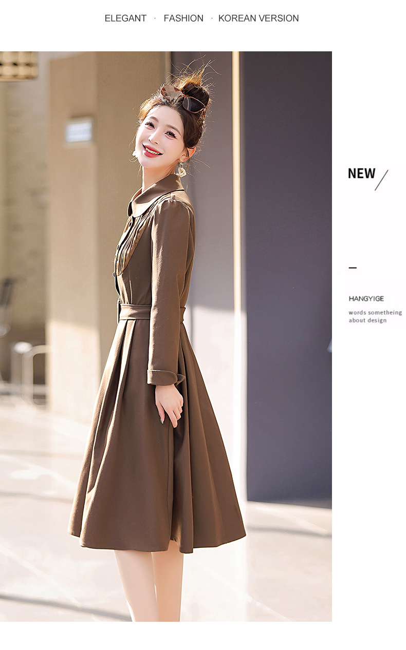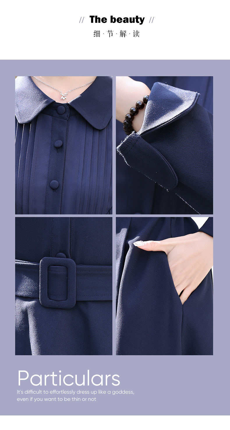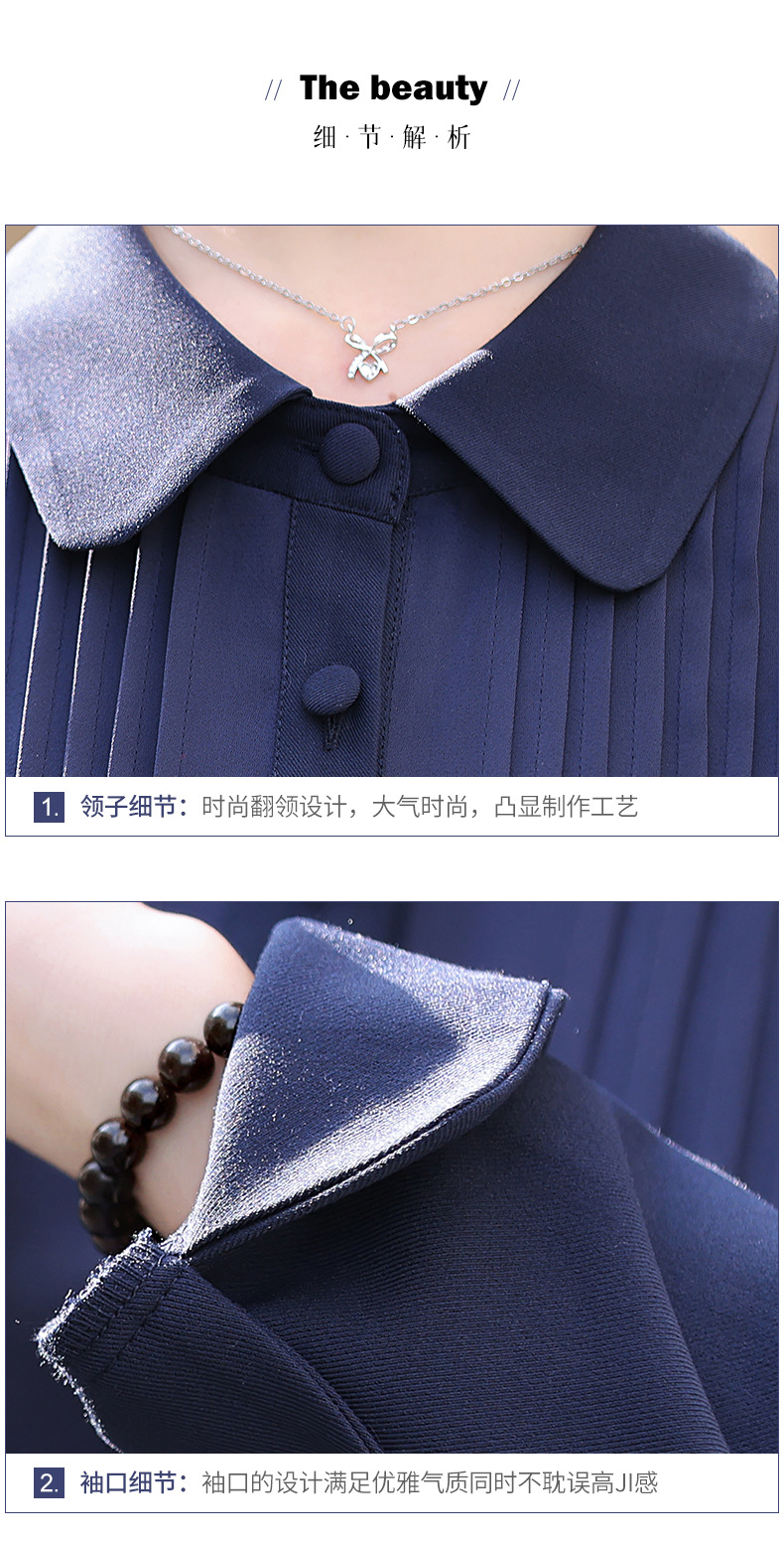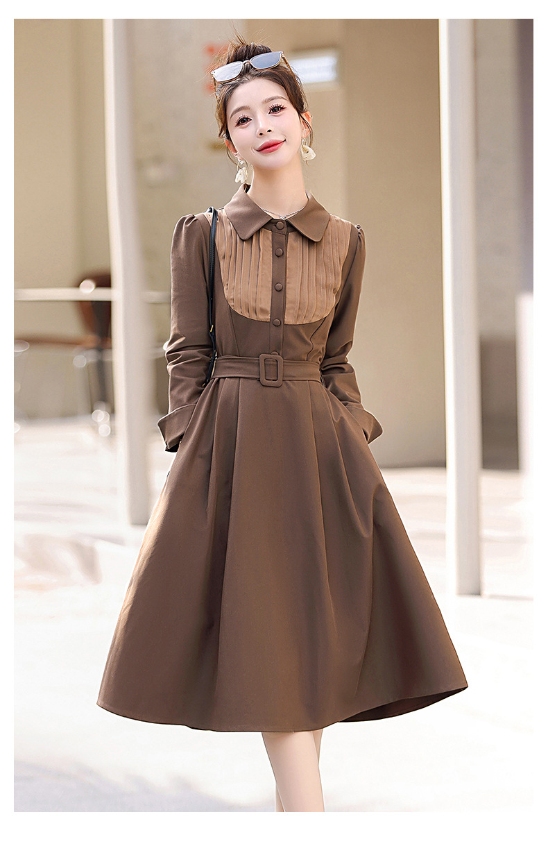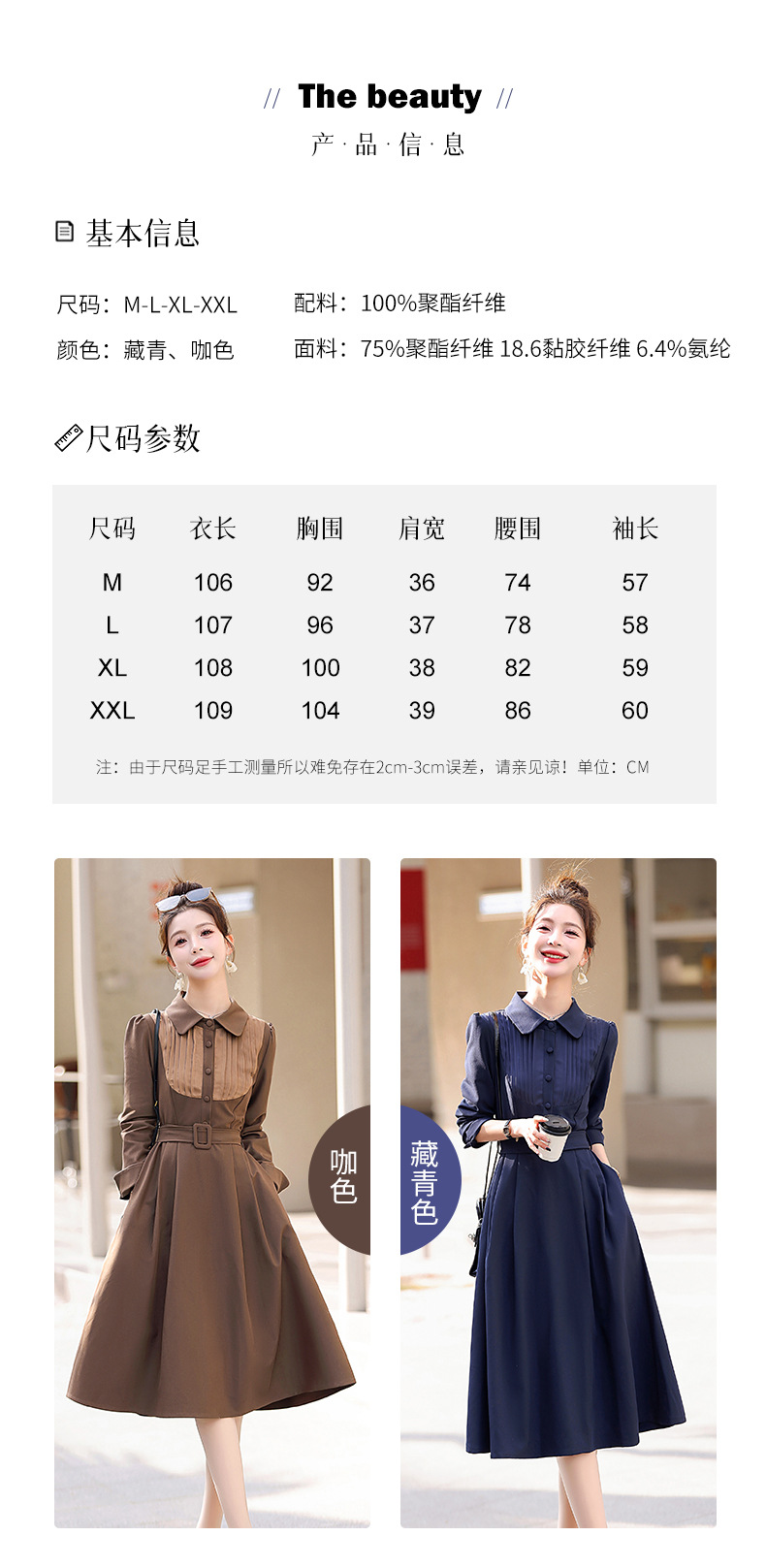 翻领衬衫袖单排扣褶皱,腰带修身显瘦优雅潮连衣裙HR-ZYFA8909