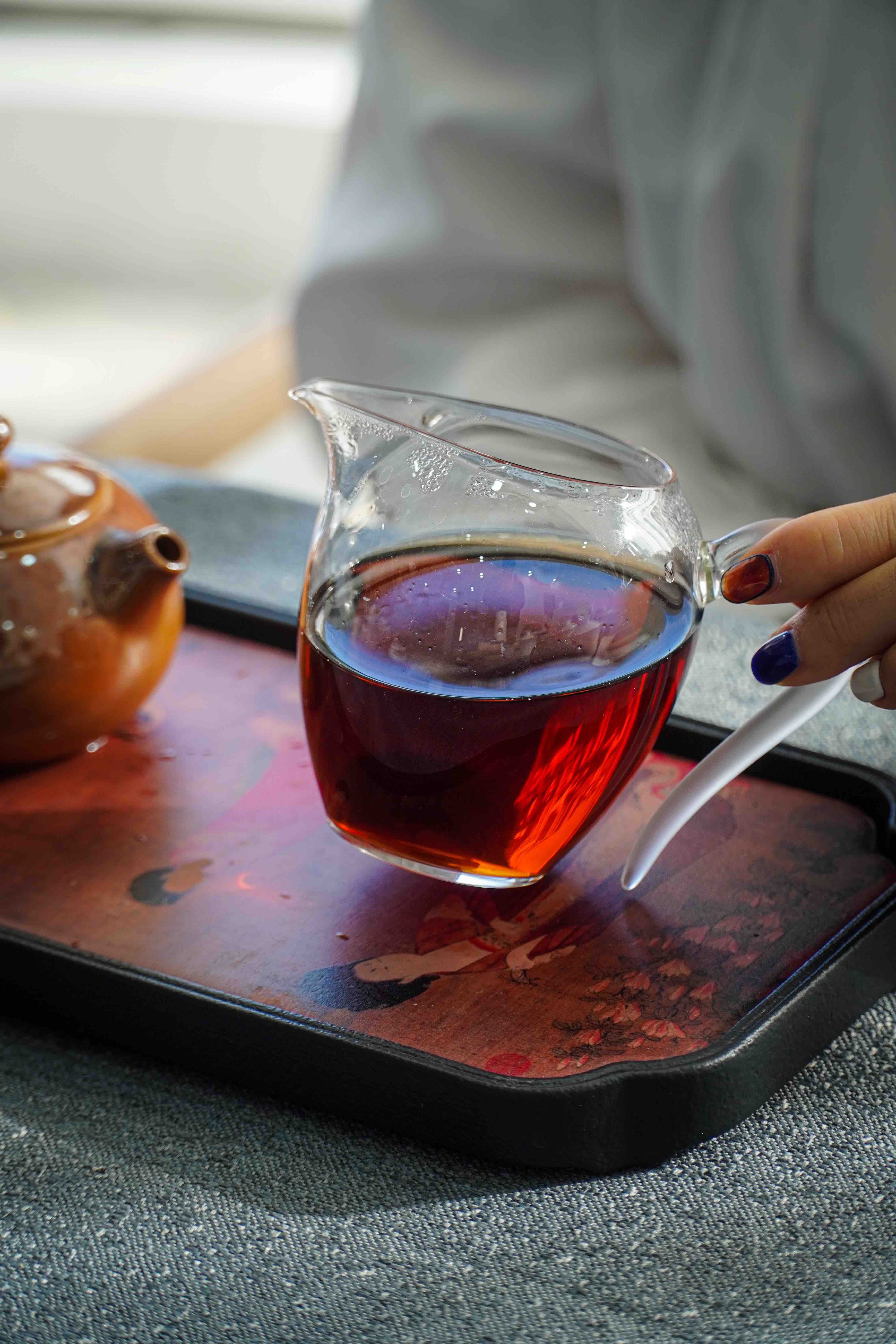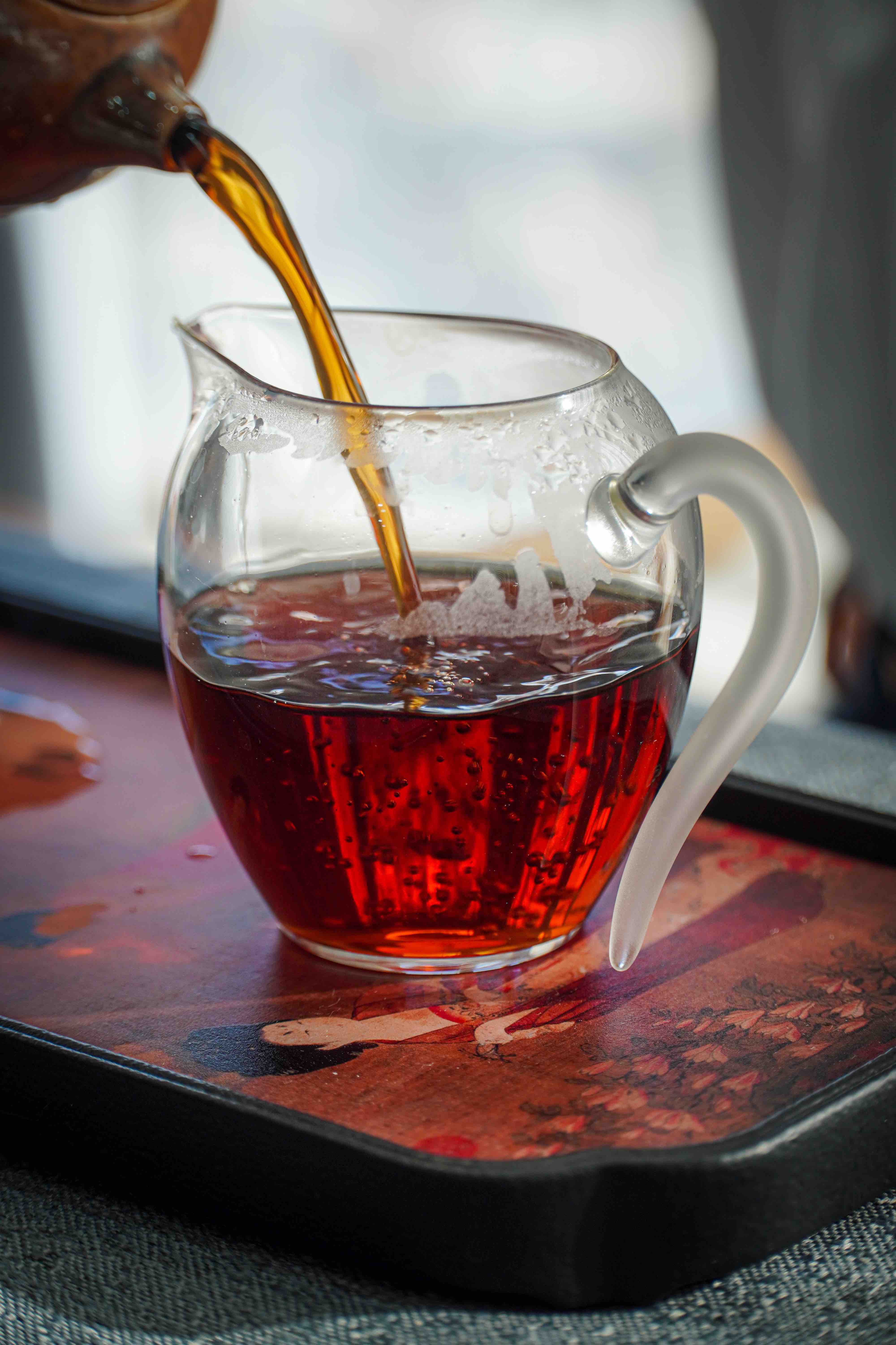 茶汤红浓透亮,质感油润顺滑
