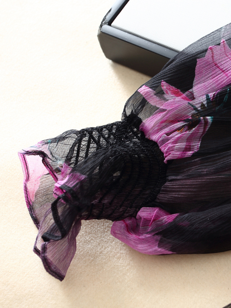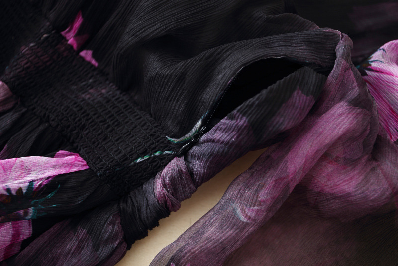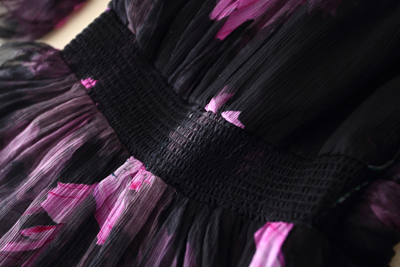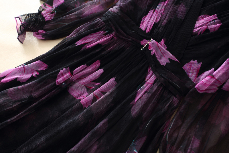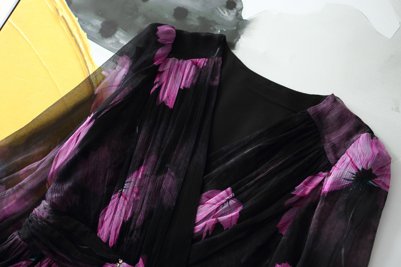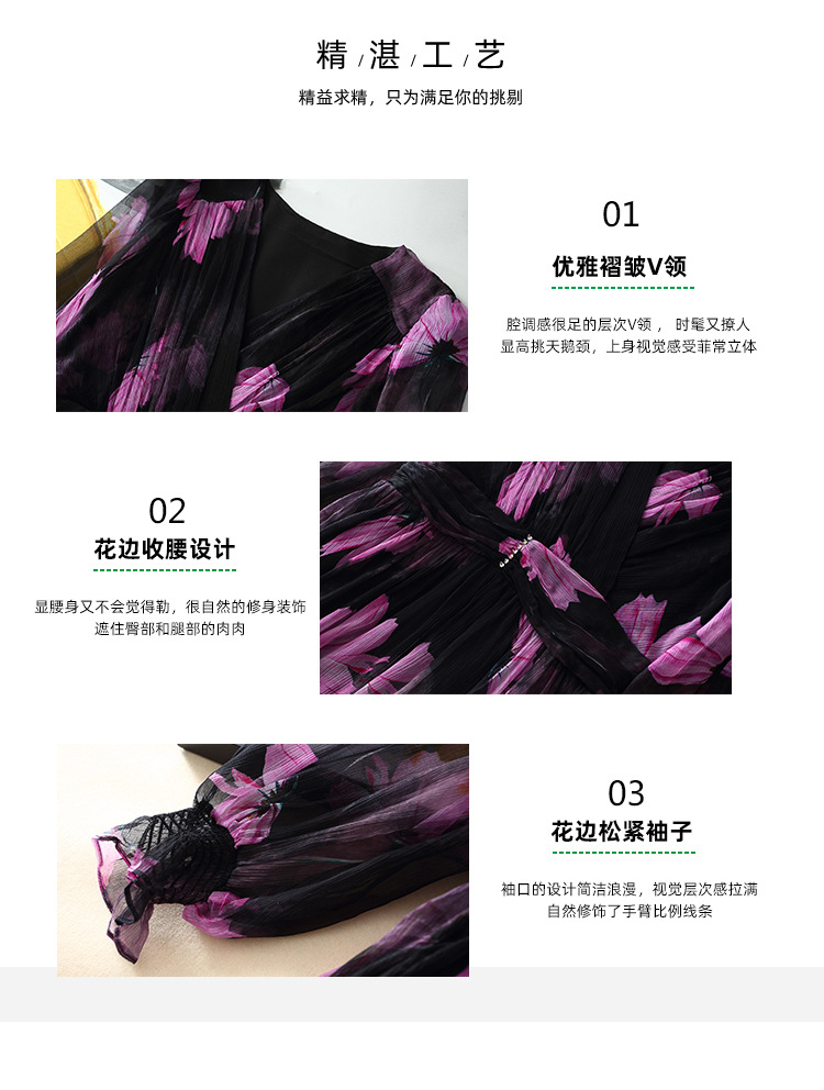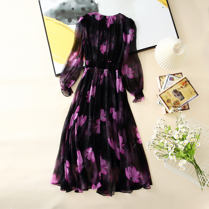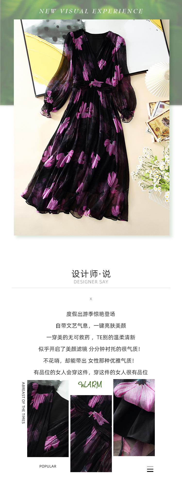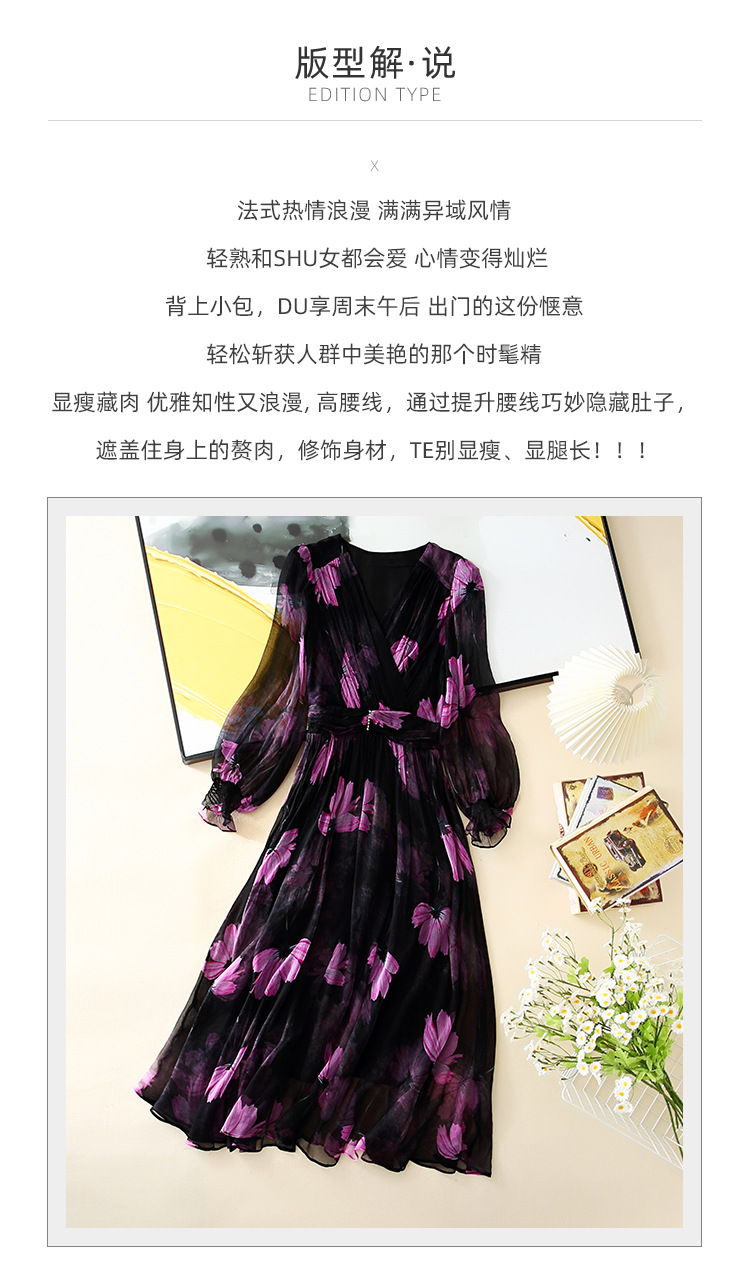 丁摩 真丝连衣裙春夏浪漫法式碎花裙桑蚕丝裙5ZF-0328