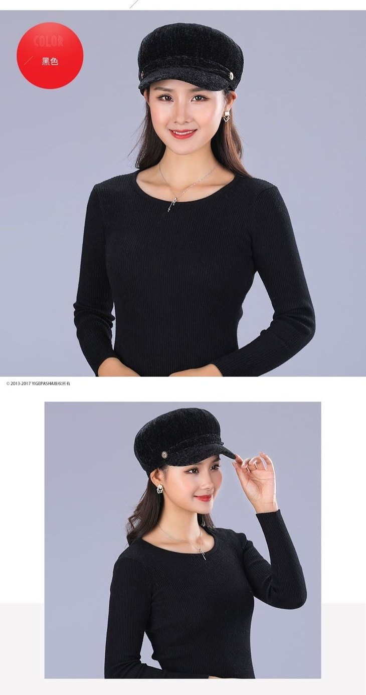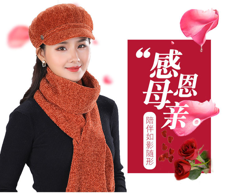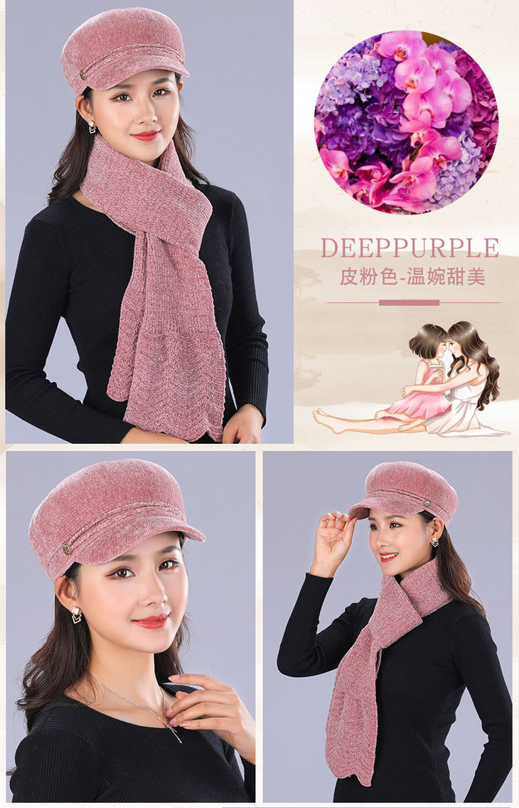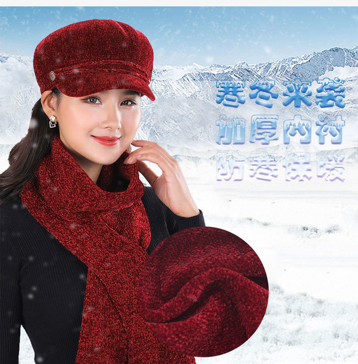 JXG-帽子女韩版冬季加厚鸭舌帽围巾套装中老年女士妈妈帽保暖八角帽