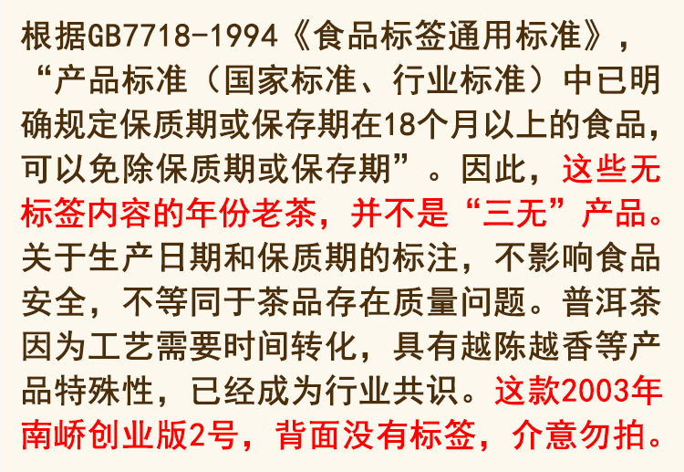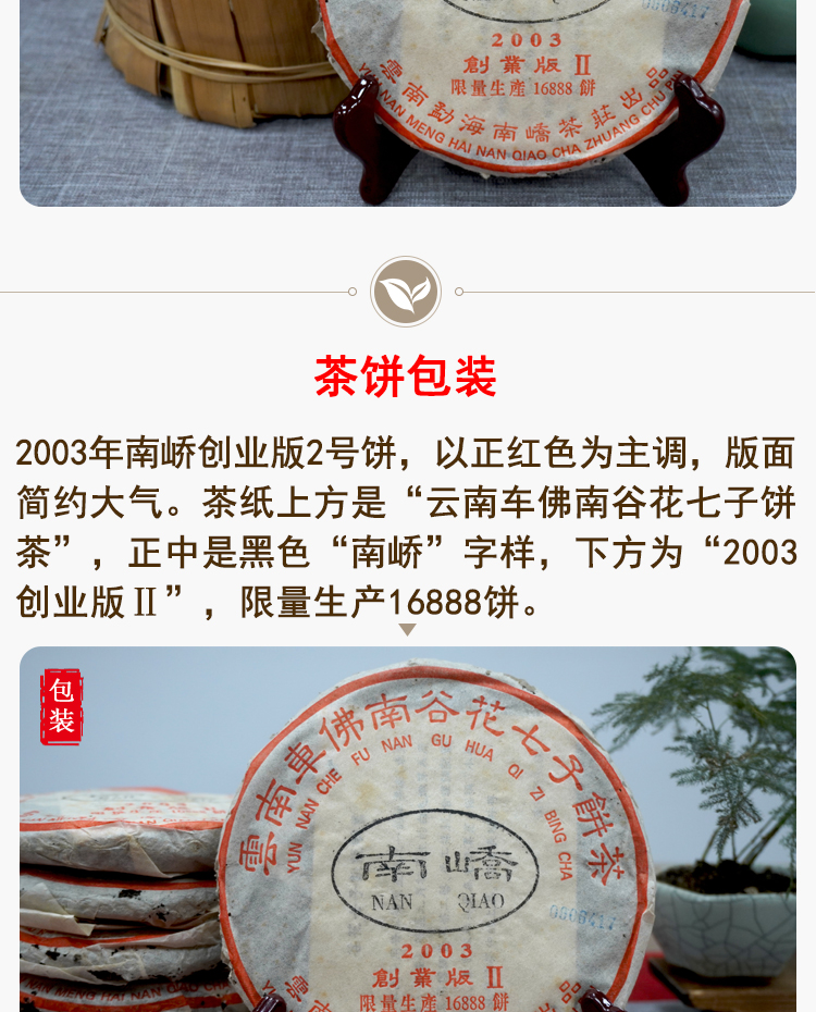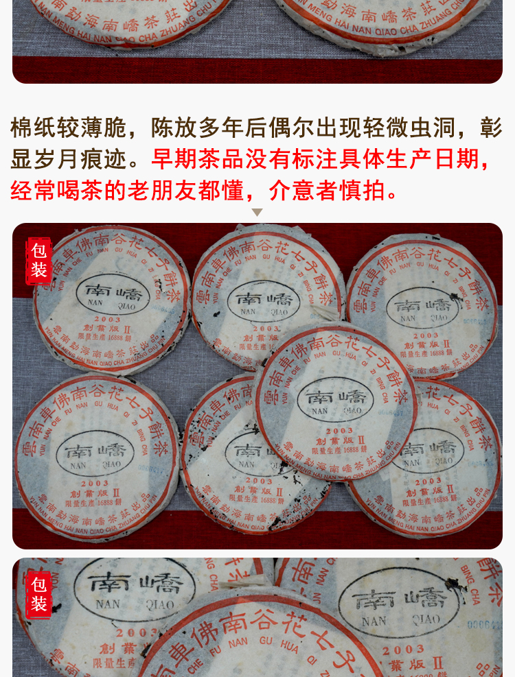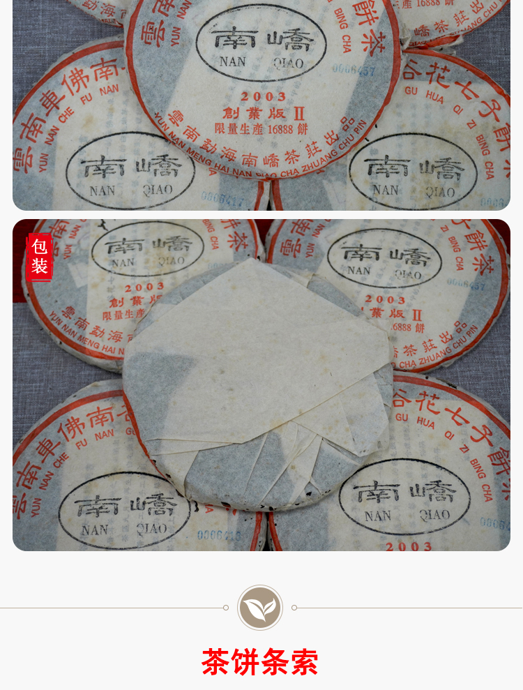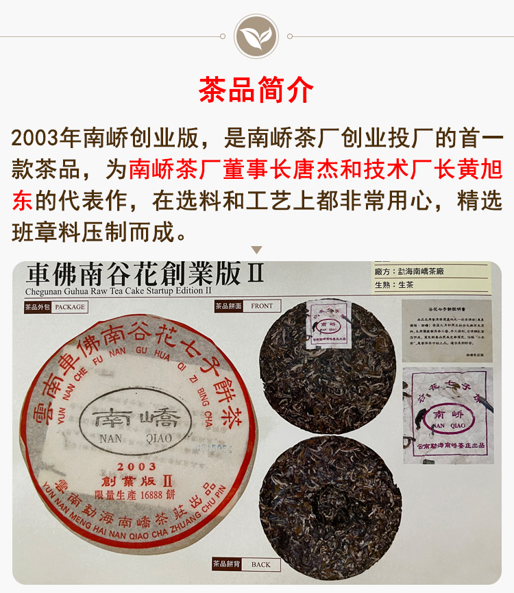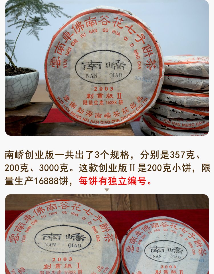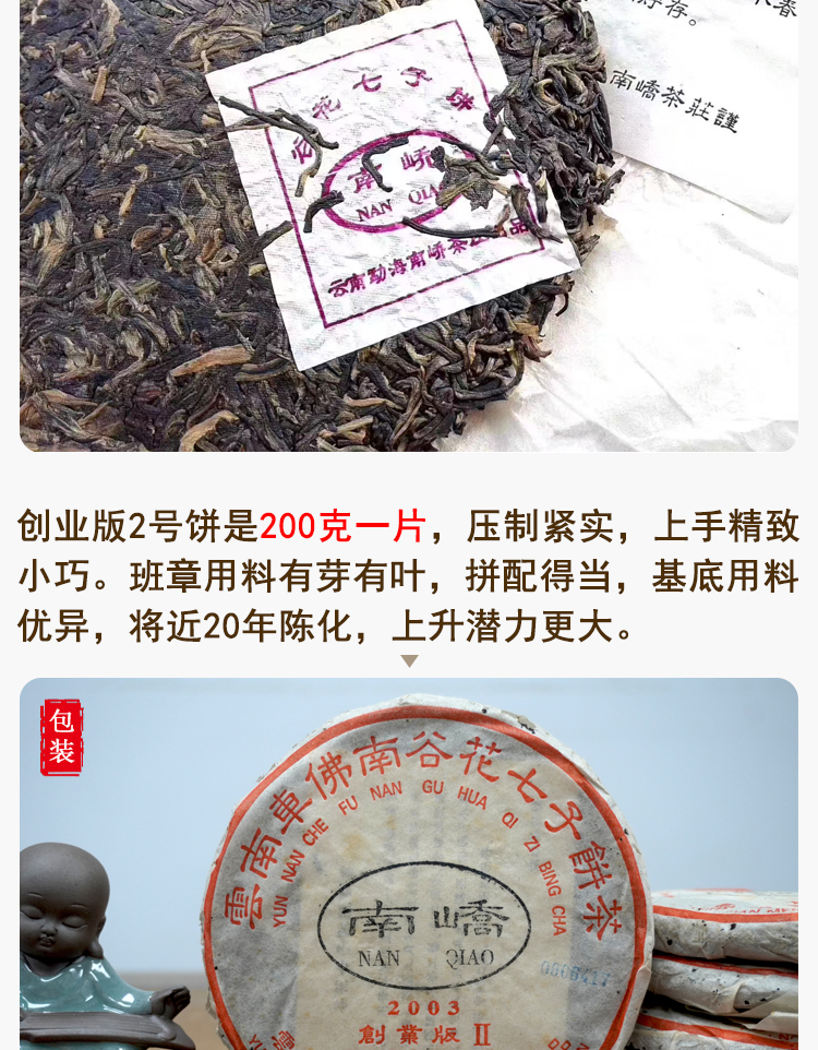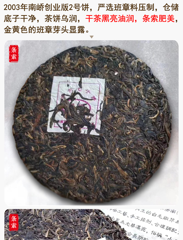 2003年南峤创业版II号小饼 200克一片 标价为单片价格 经典明星老茶干仓真品
