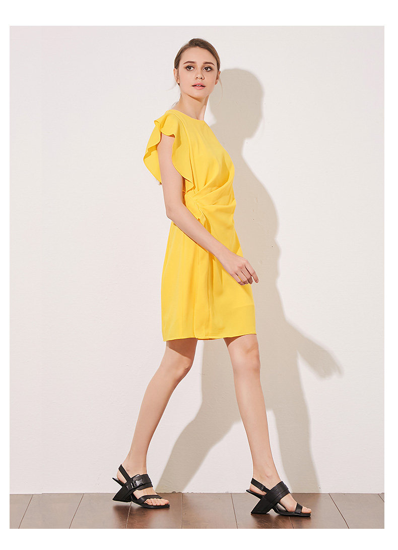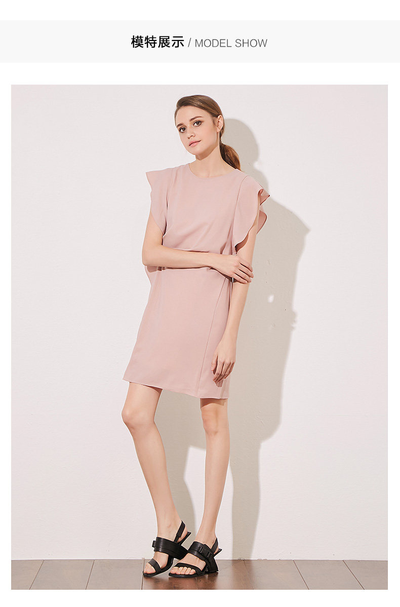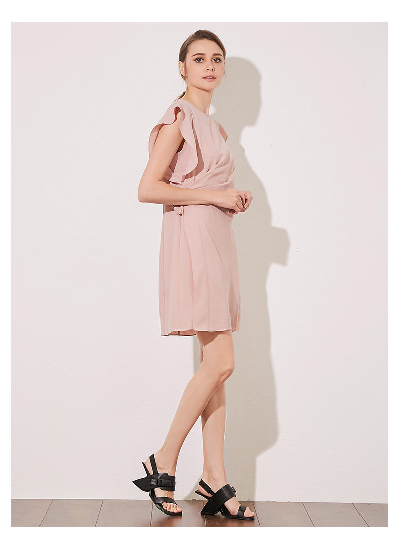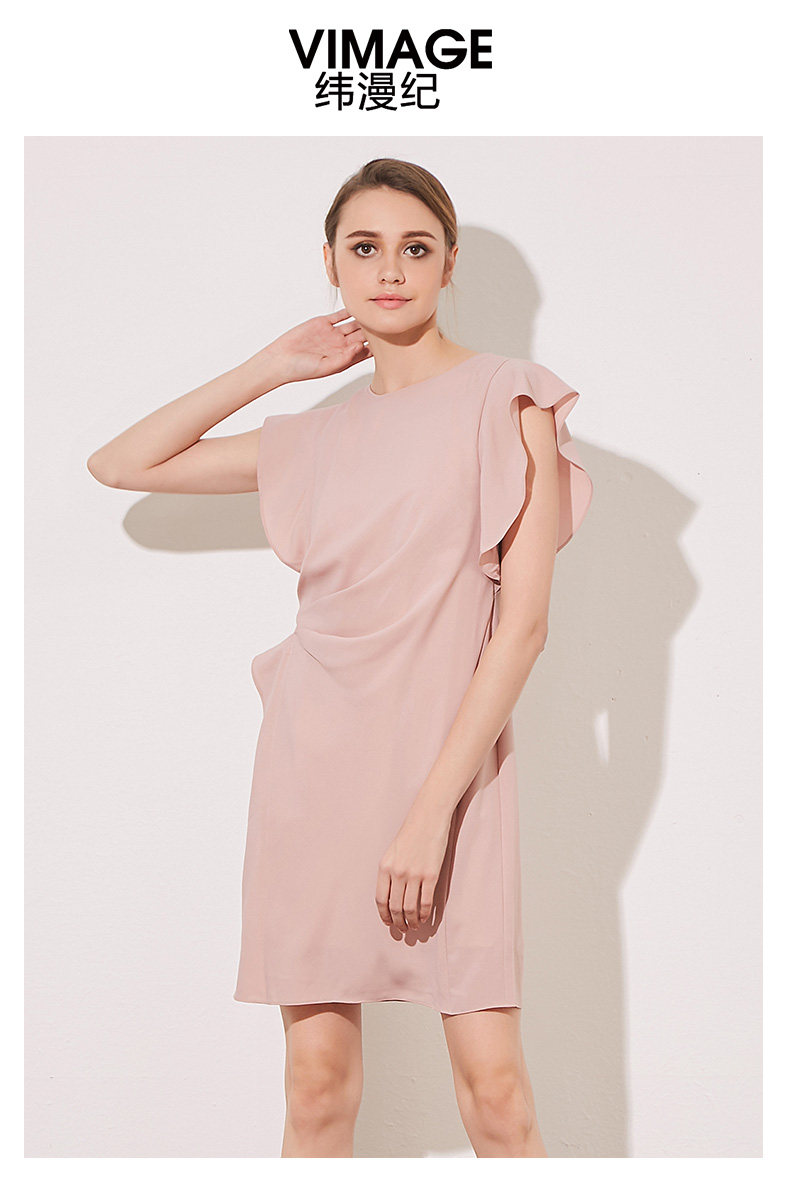 VIMAGE纬漫纪夏季女装雪纺飞飞袖抽皱直筒连衣裙中裙夏V907587