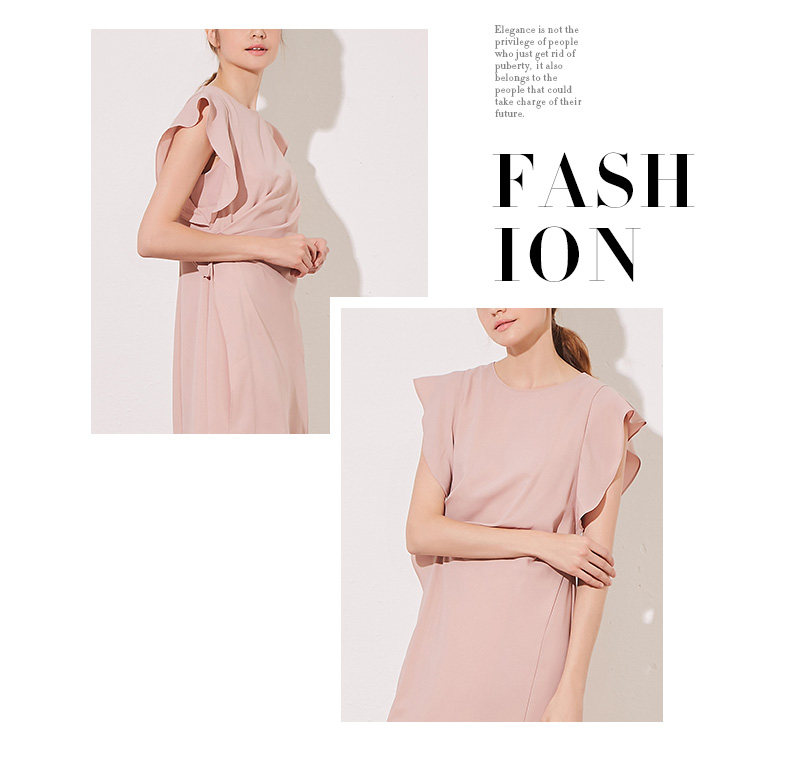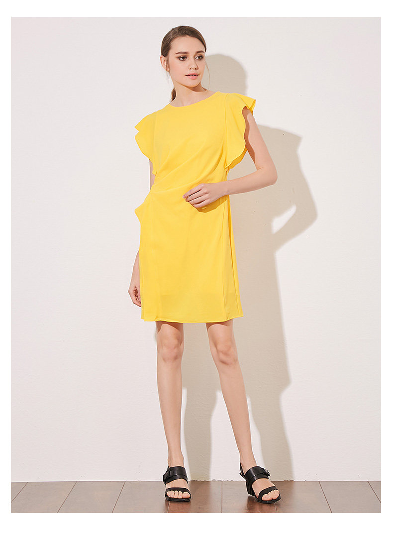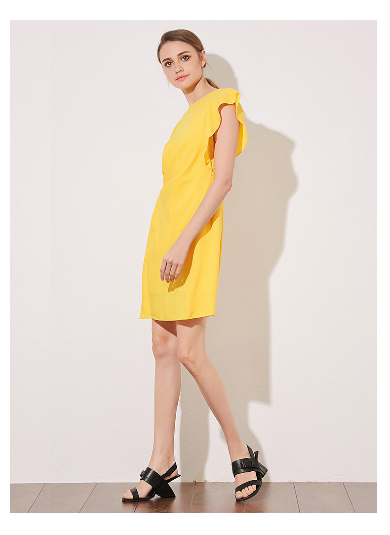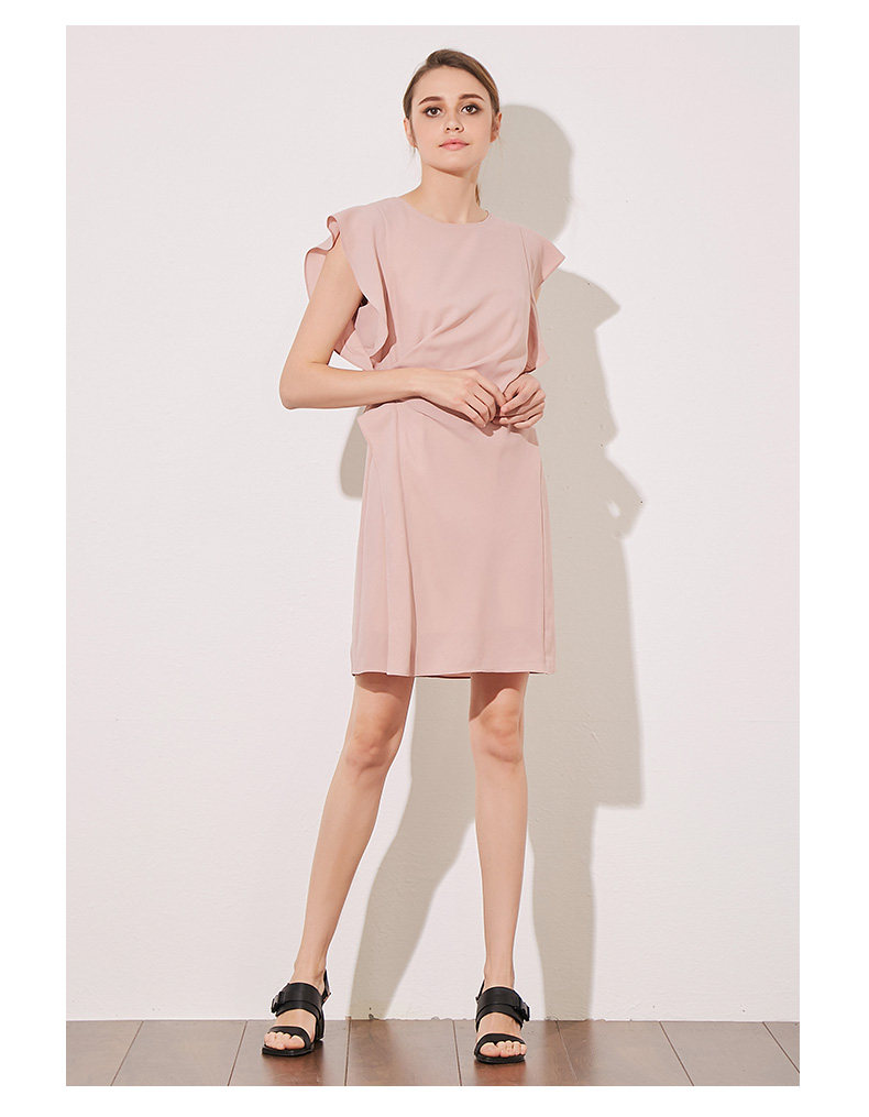 VIMAGE纬漫纪夏季女装雪纺飞飞袖抽皱直筒连衣裙中裙夏V907587