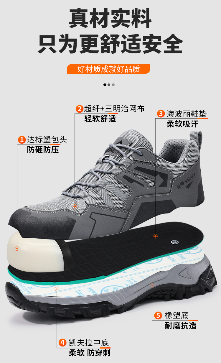 京途新款透气绝缘鞋透气男士防砸防刺劳保鞋实心底耐磨