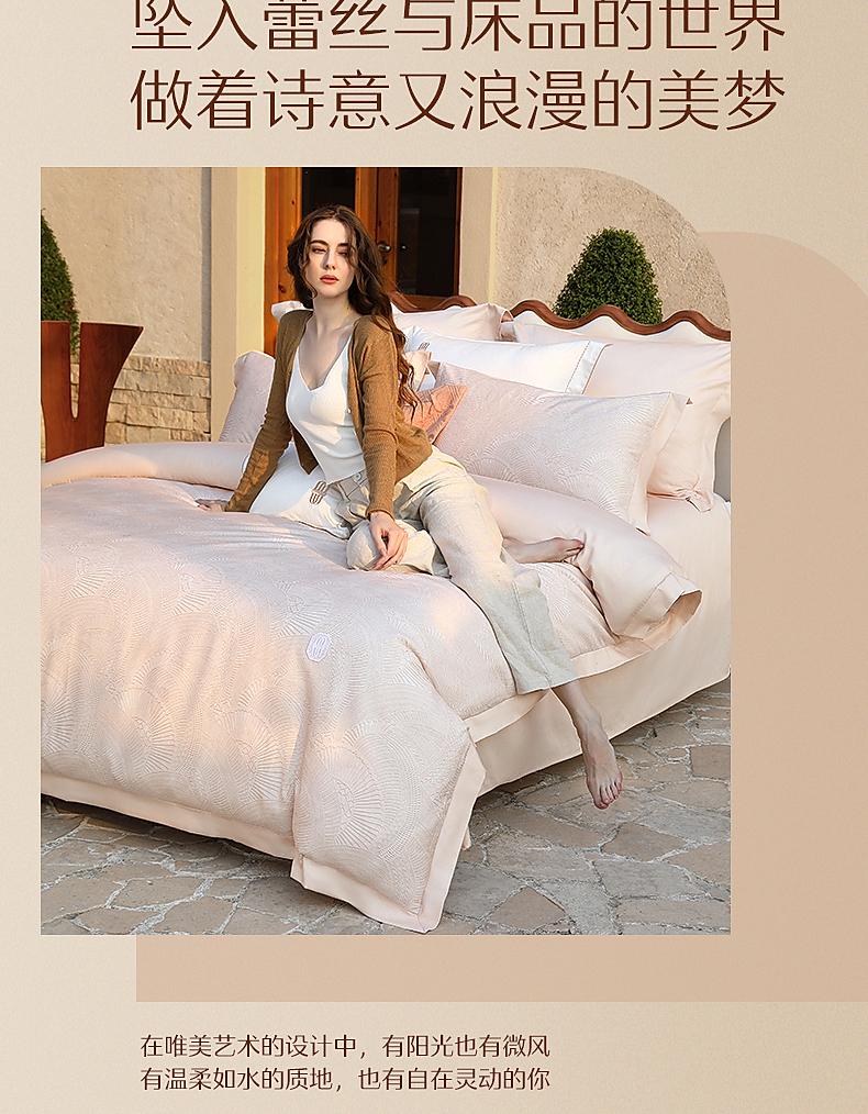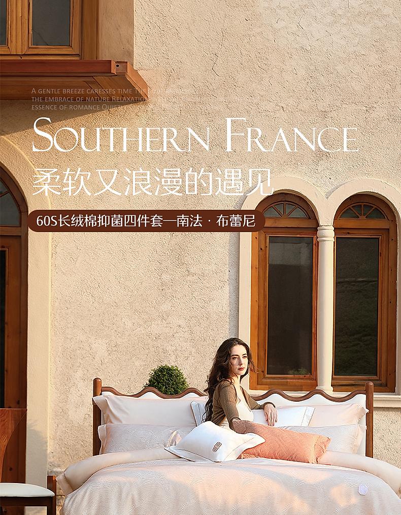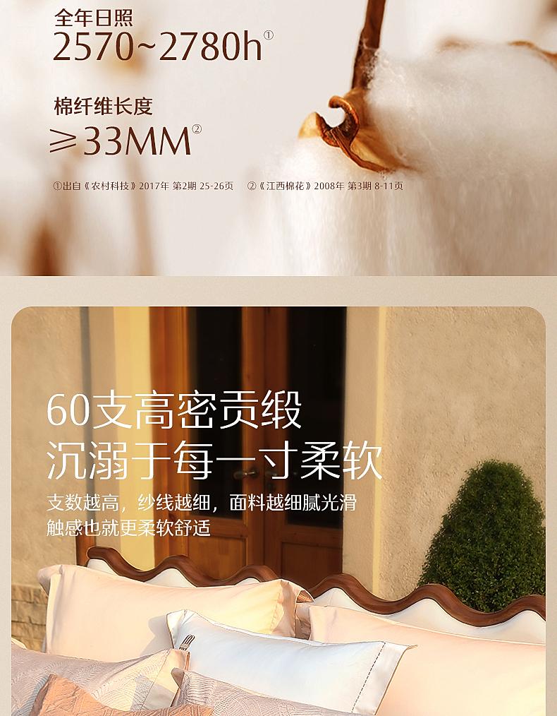 (品牌直发)水星家纺南法系列60支新疆长绒棉四件套高密贡缎抑菌轻奢套件严选