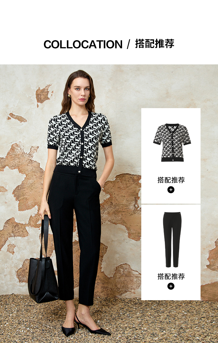EITIE爱特爱气质高腰锥形显瘦黑色直筒裤极简通勤春季新款8105806