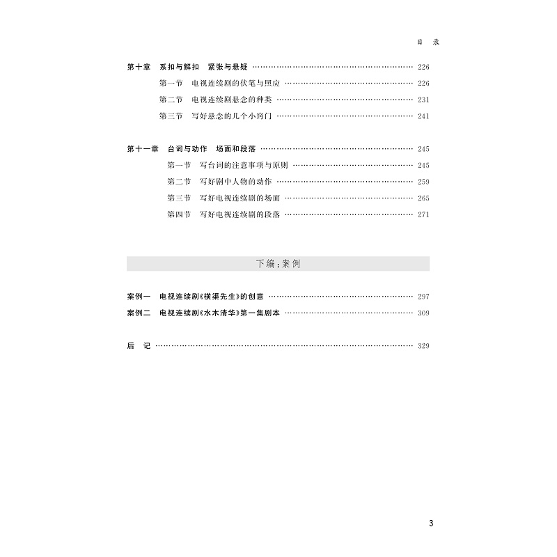 本书旨在探讨电视连续剧编剧知识与技巧,共分上中下三篇。上篇,对电视连续剧的艺术特性、表现规律等做了系统化和理论化的梳理;中篇,是本书的重点单元,从技巧的角度,结合作者创作的实际,对电视连续剧创作中的所涉及到的各种问题——如人物与人物关系的设置,情节主线与副线的埋设与交织,戏剧矛盾冲突的安排与凸显,以及结构、布局、情感、细节、台词、动作等——做了深入而又细致的讲解和分析;下篇,通过对几部国内经典电视连续剧的剧本的解构,再次印证和强化了上篇与中篇建构的叙事理论。