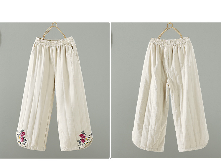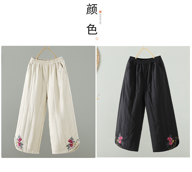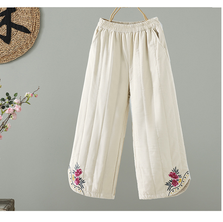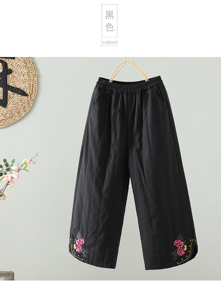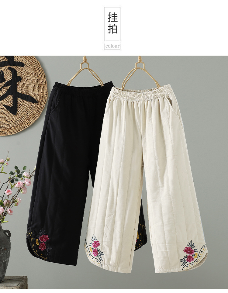 GYH 5629复古休闲简约刺绣棉裤民族风直筒夹棉裤