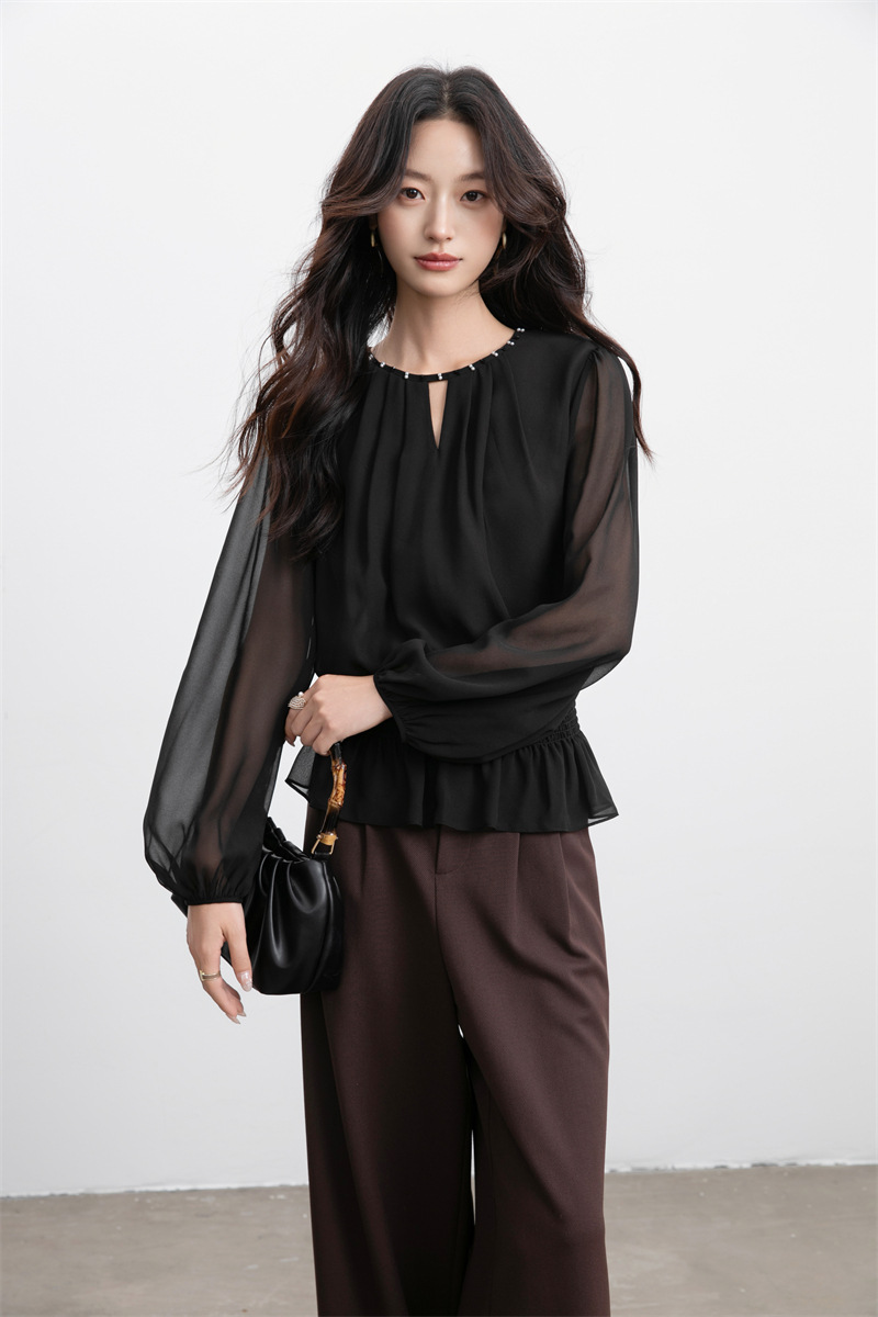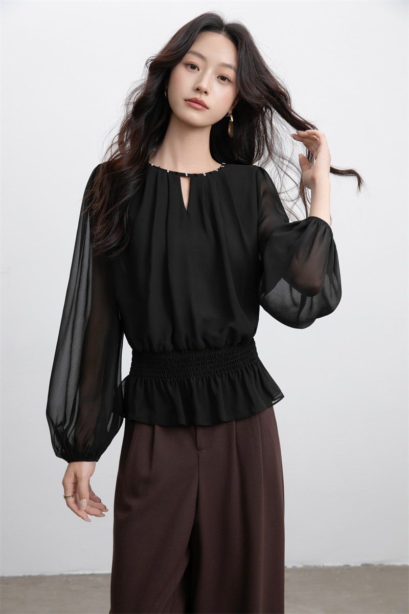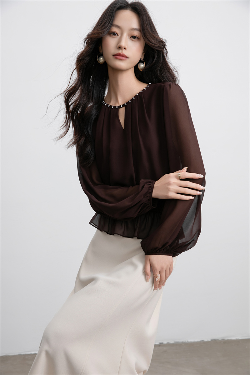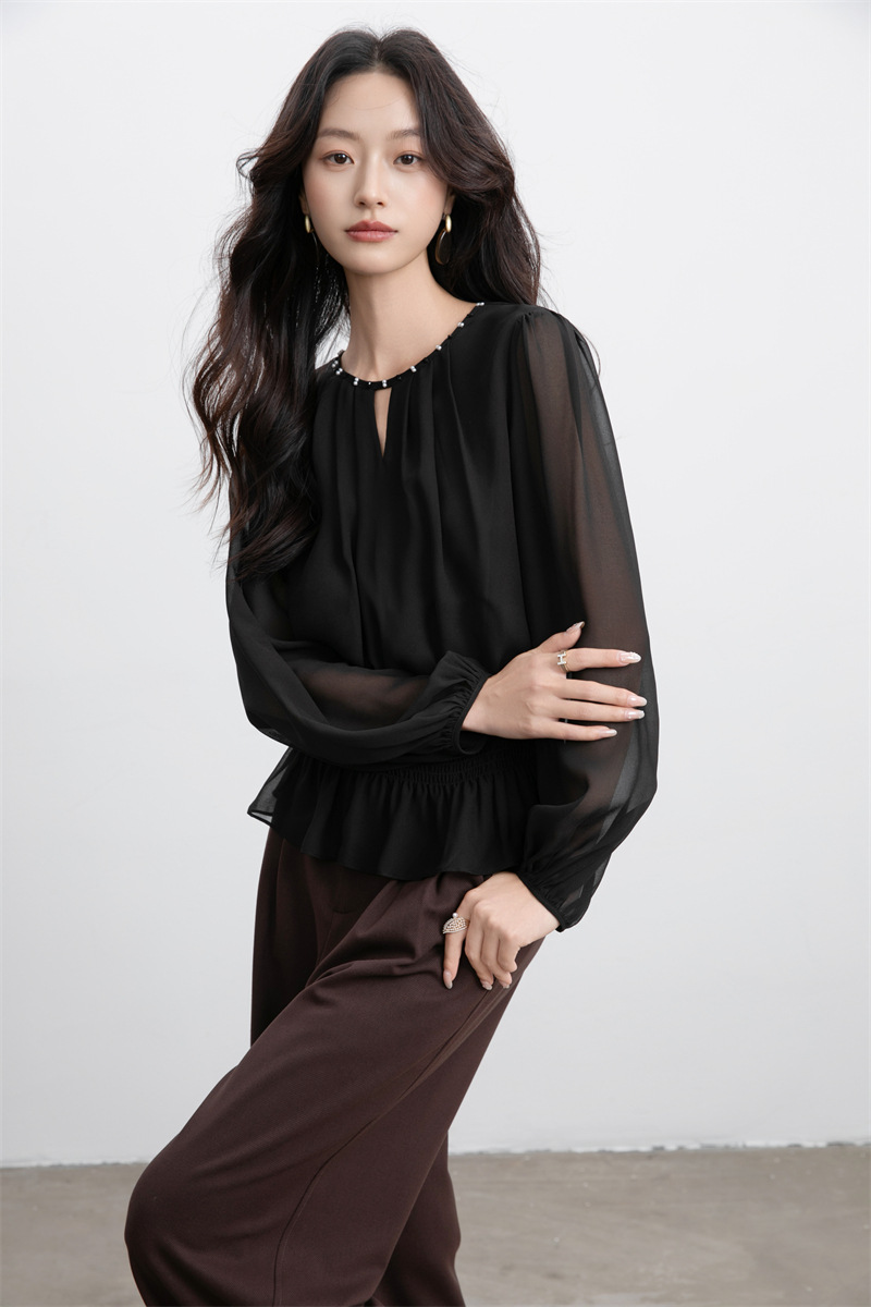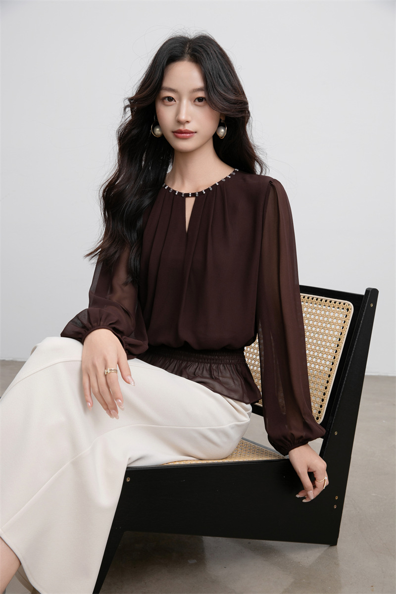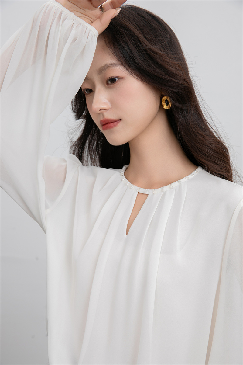 「自」全新升级【铂金会员183/天猫239/差价56】(12124)洛诗琳气质中式盘扣衬衫2025秋季设计感通勤压褶宽松雪纺衫