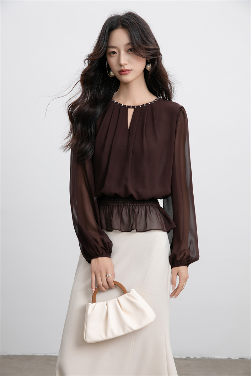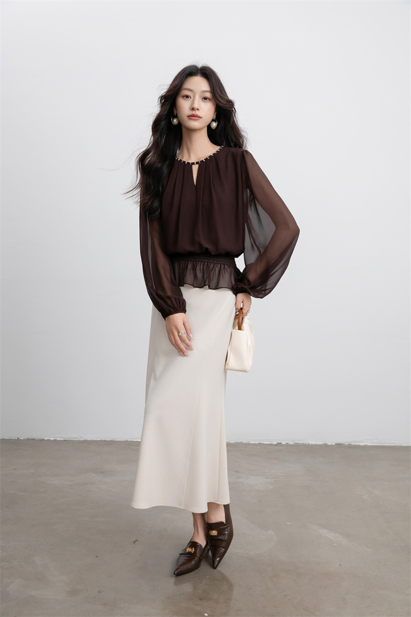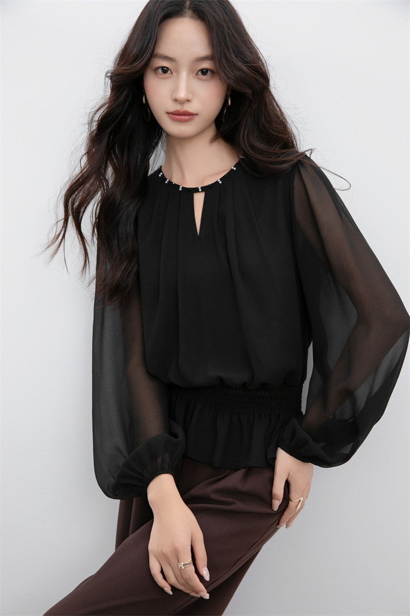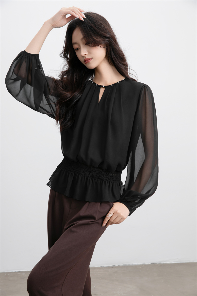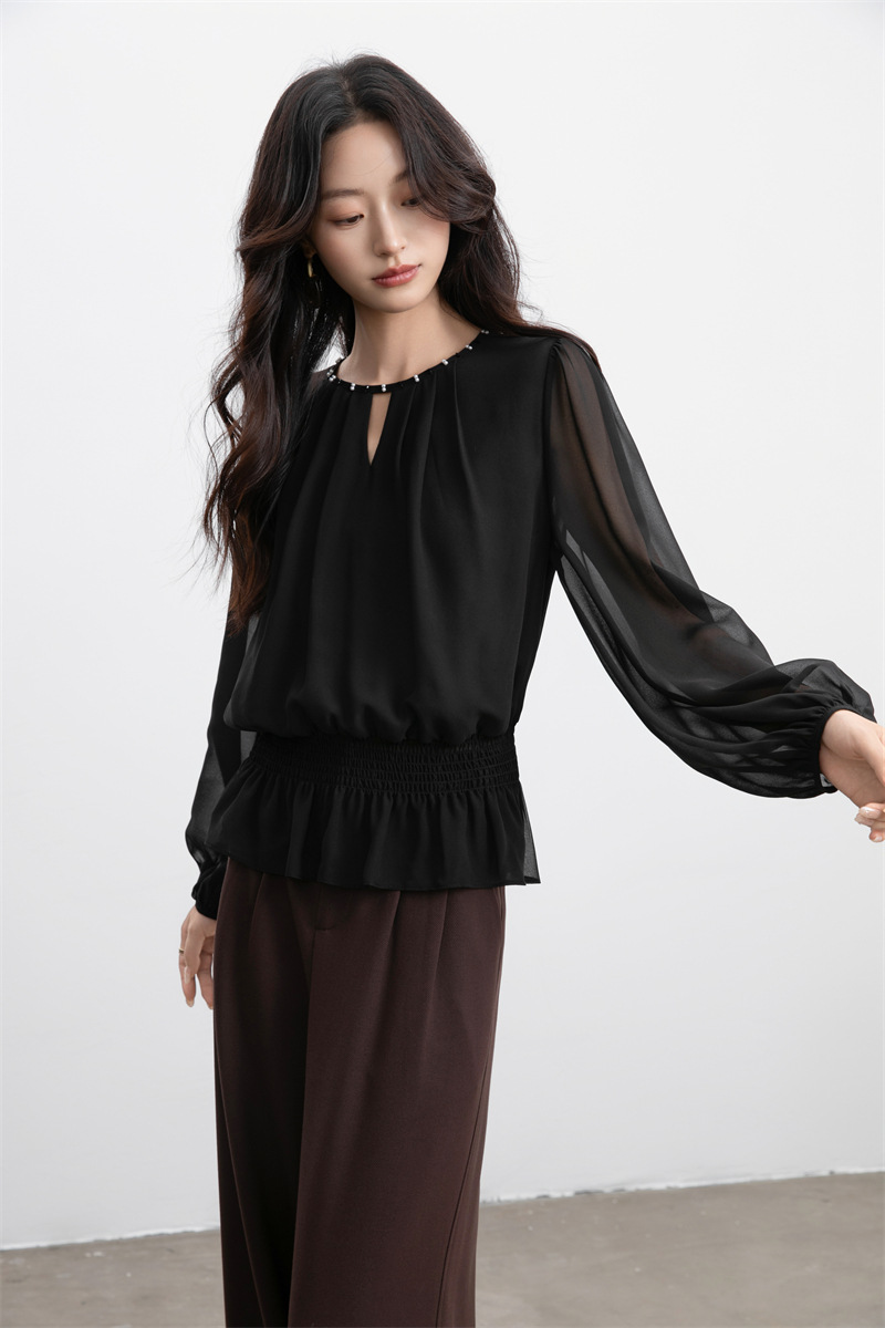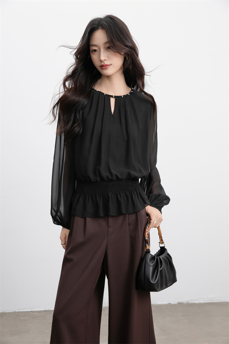 「自」全新升级【铂金会员183/天猫239/差价56】(12124)洛诗琳气质中式盘扣衬衫2025秋季设计感通勤压褶宽松雪纺衫