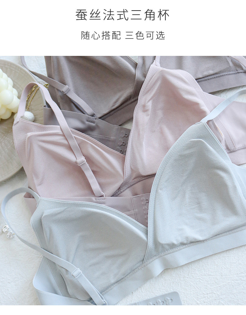 TG-TG02S132春夏新法式真丝内衣 三角杯薄款文胸无痕有胸垫桑蚕丝bra