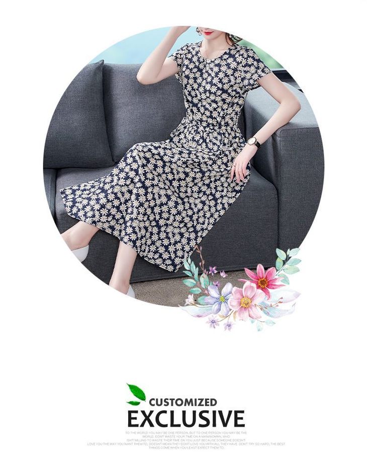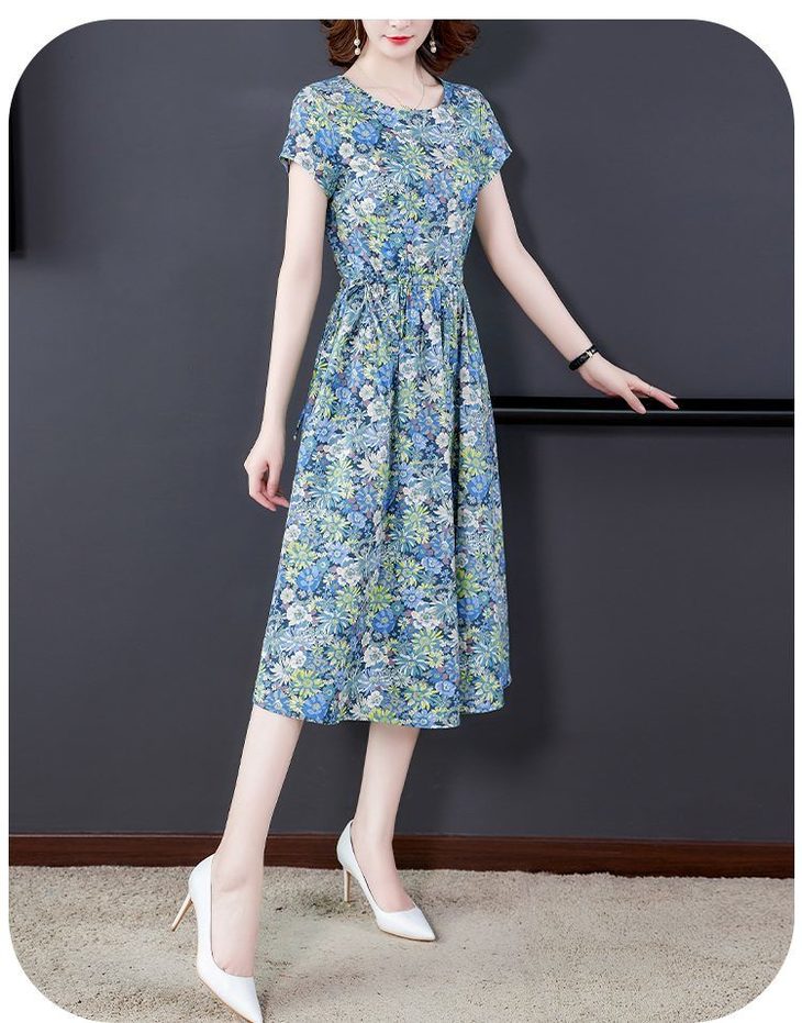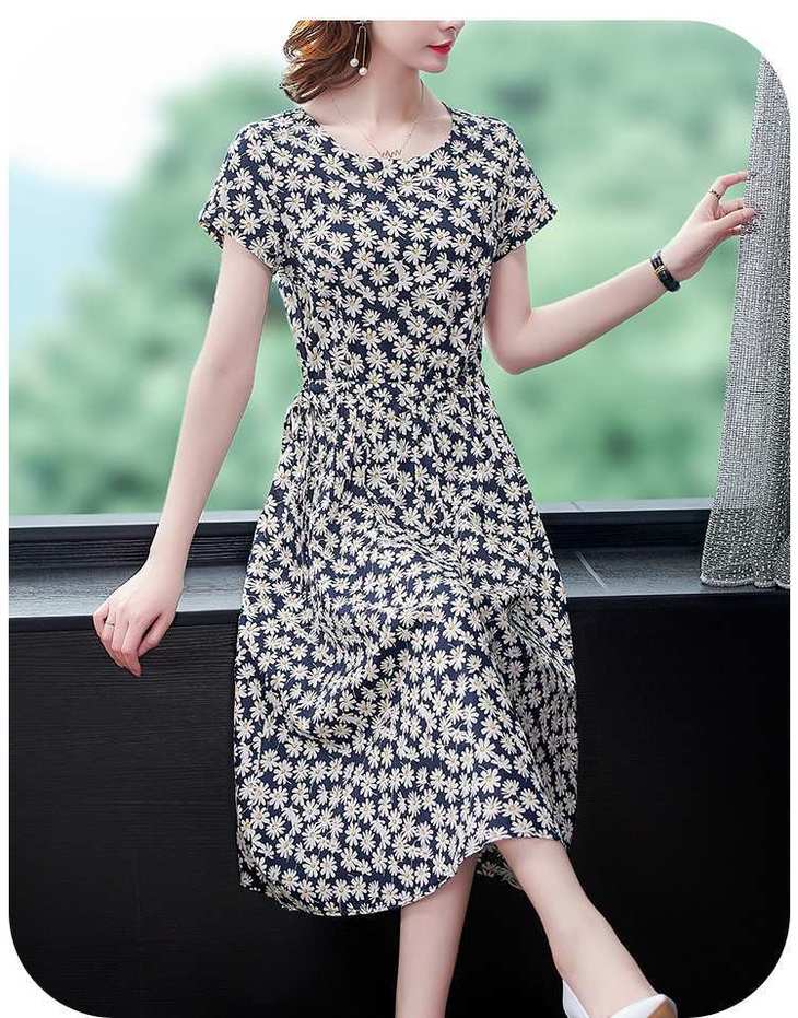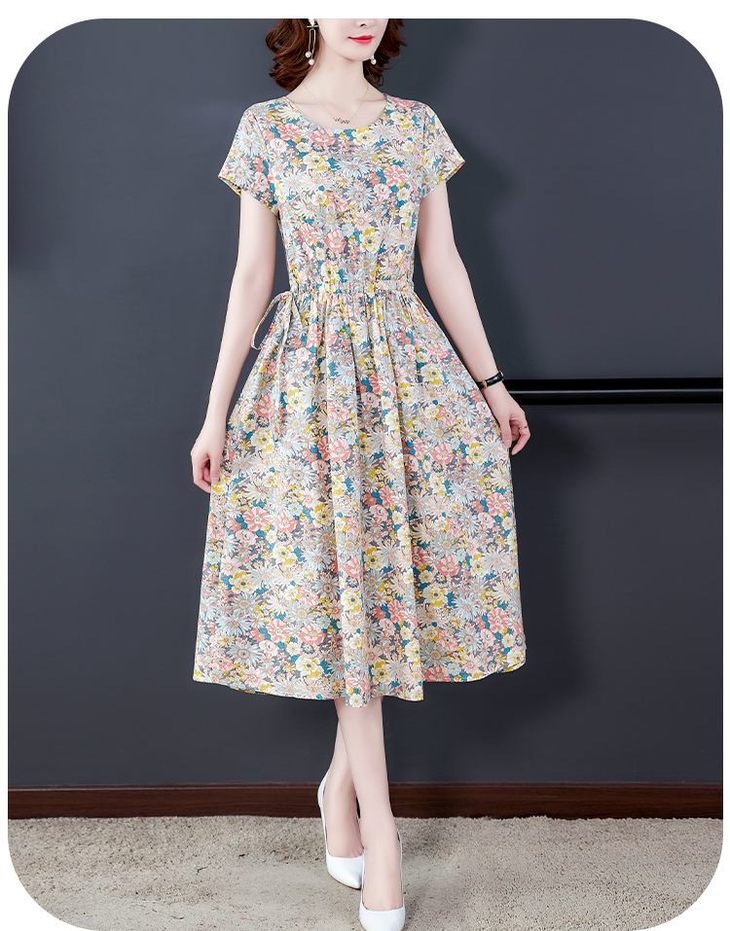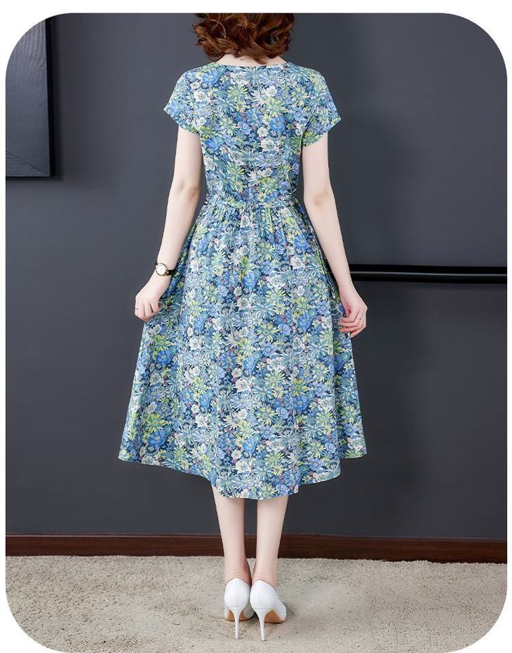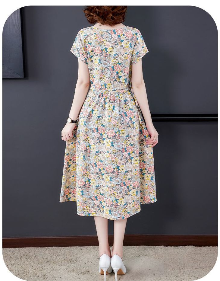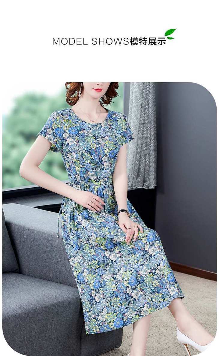 JXG-特价女装清仓短袖印花中长款棉麻连衣裙