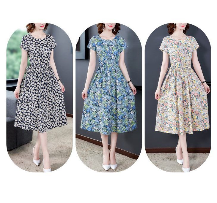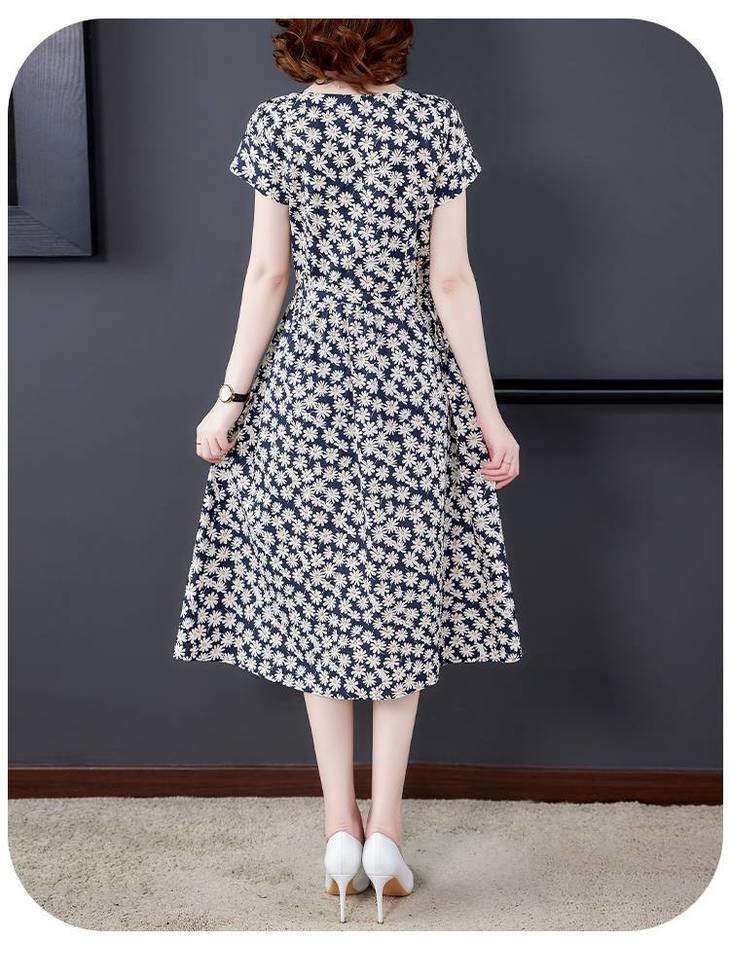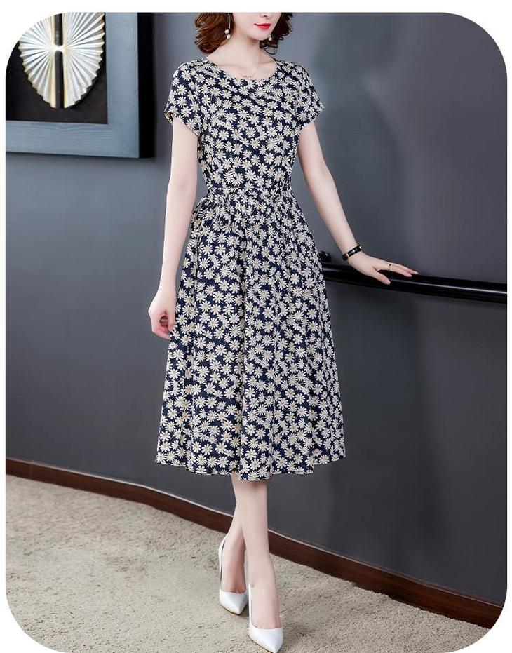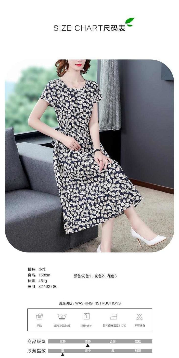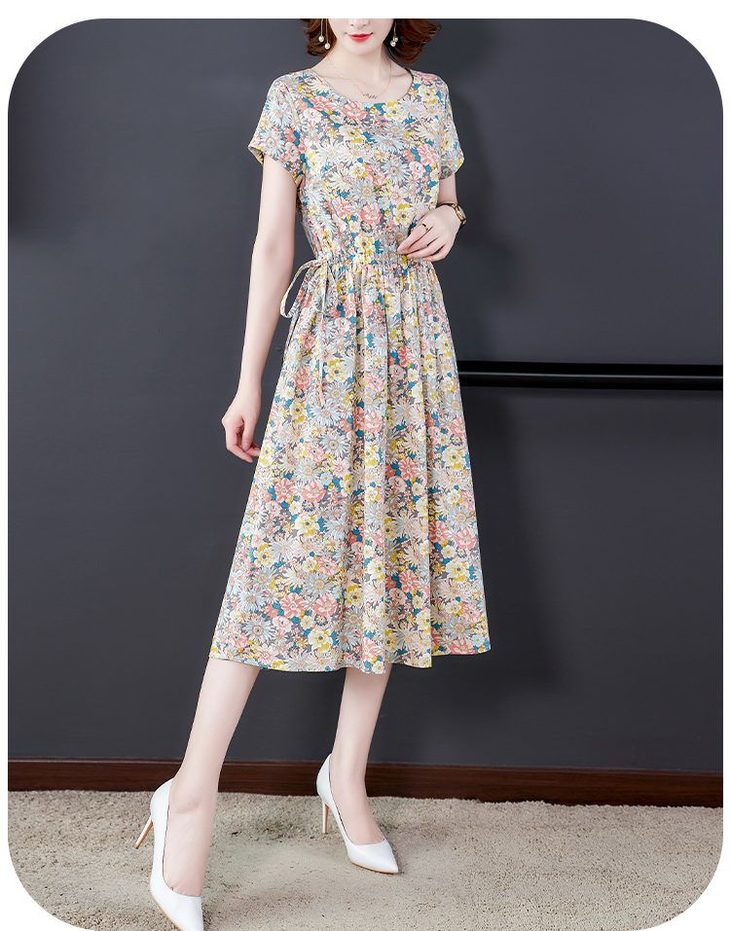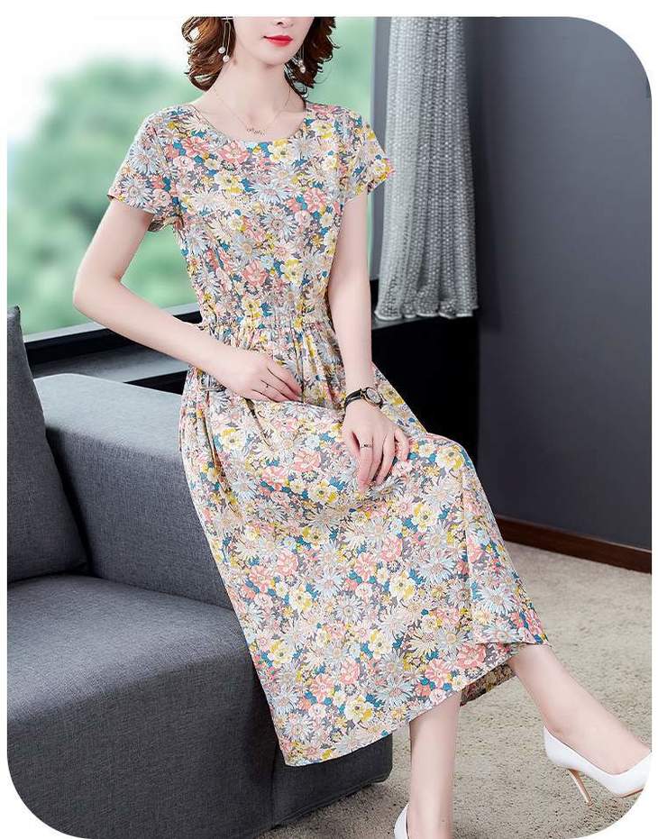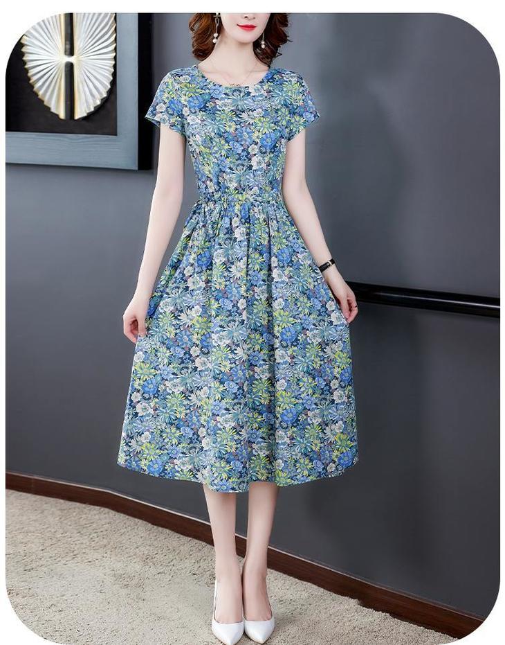 JXG-特价女装清仓短袖印花中长款棉麻连衣裙
