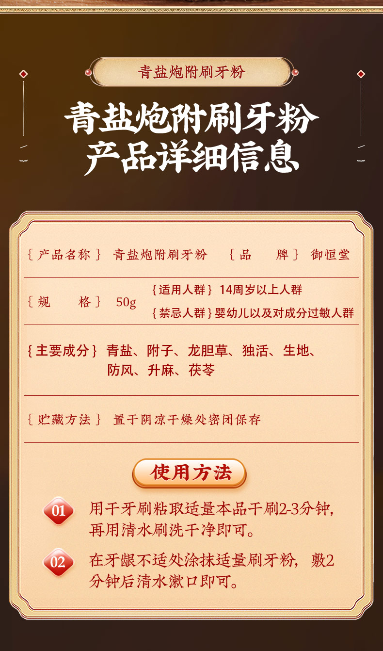 【买2送1 买3送2】御恒堂·炮附子青盐牙粉 源于古方 古法炮制 匠心研制 50g/盒