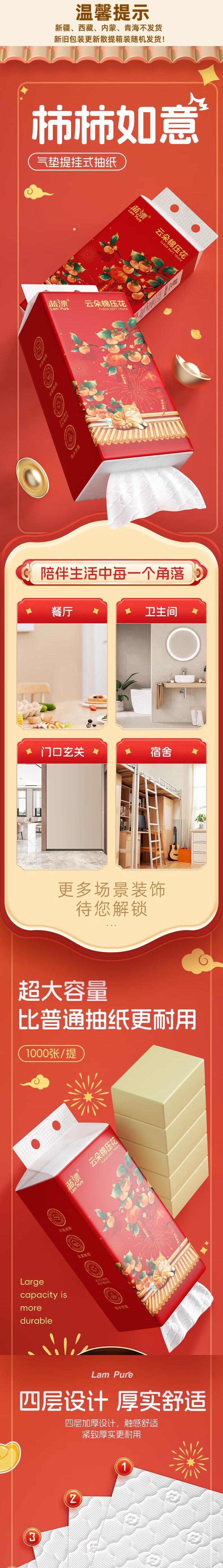 蓝漂 白色气垫挂式抽纸4层1000张*5提 LPBSC-5TR