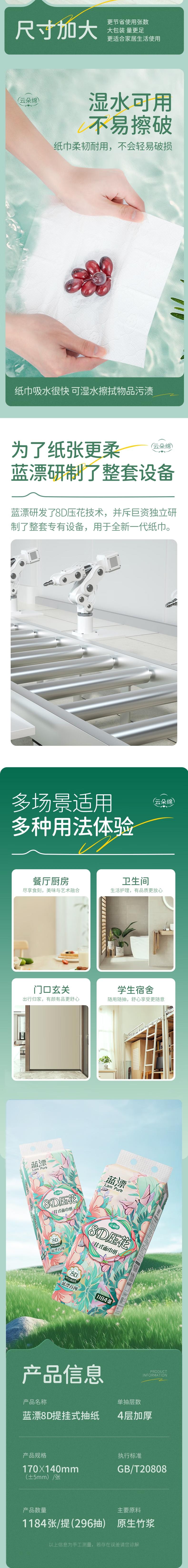 蓝漂 悦色花园白色气垫挂式抽纸4层1184张*2提 LP0YS002T