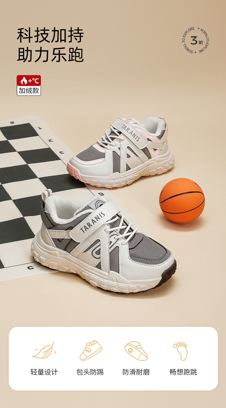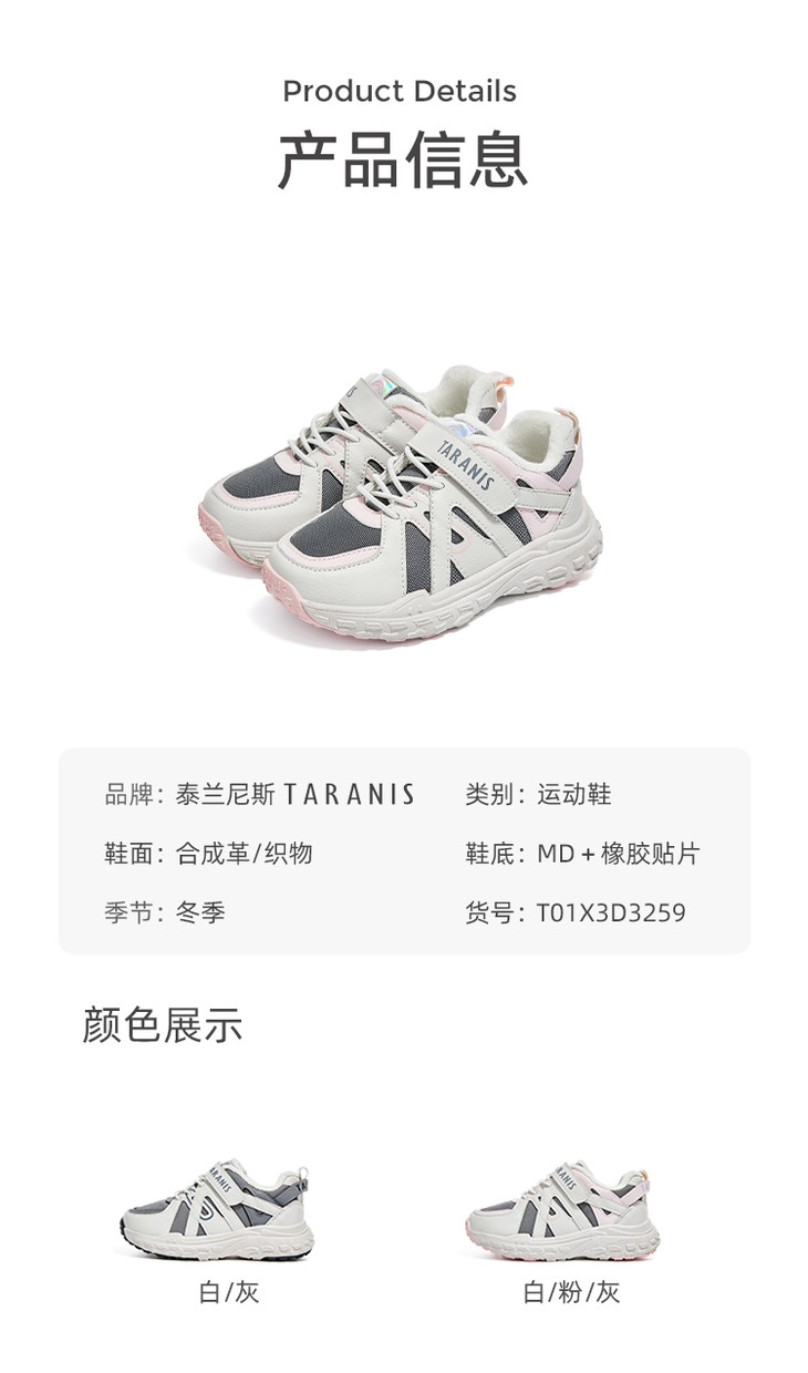【泰兰尼斯】冬款小童段加绒加厚超轻运动鞋T01X3D3259