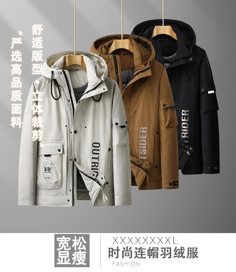 【特大码】【新款DPX】大依优型大码潮款工装连帽羽绒服鸭绒外套休闲胖子大码男休闲宽松加肥加大上衣300斤