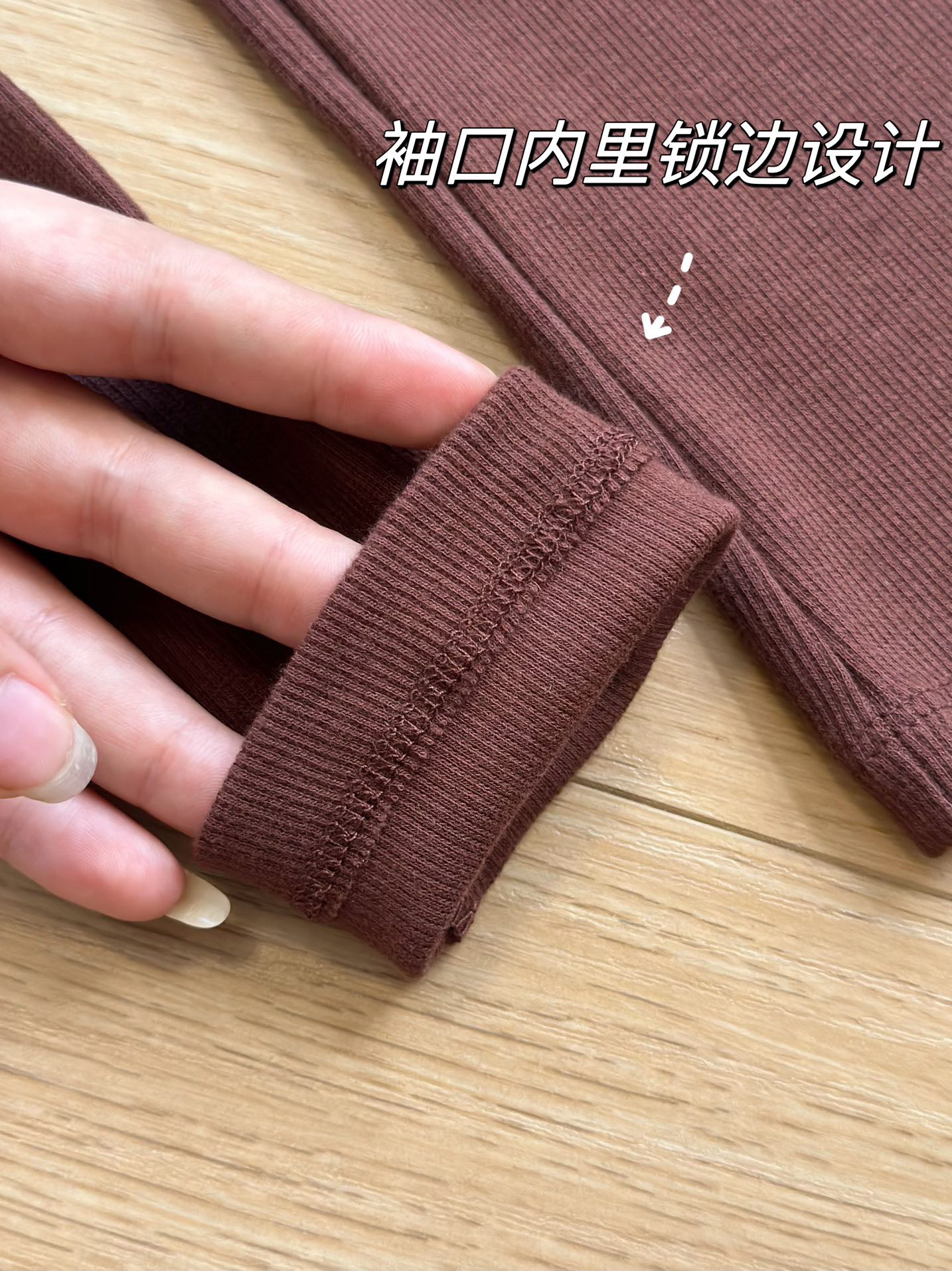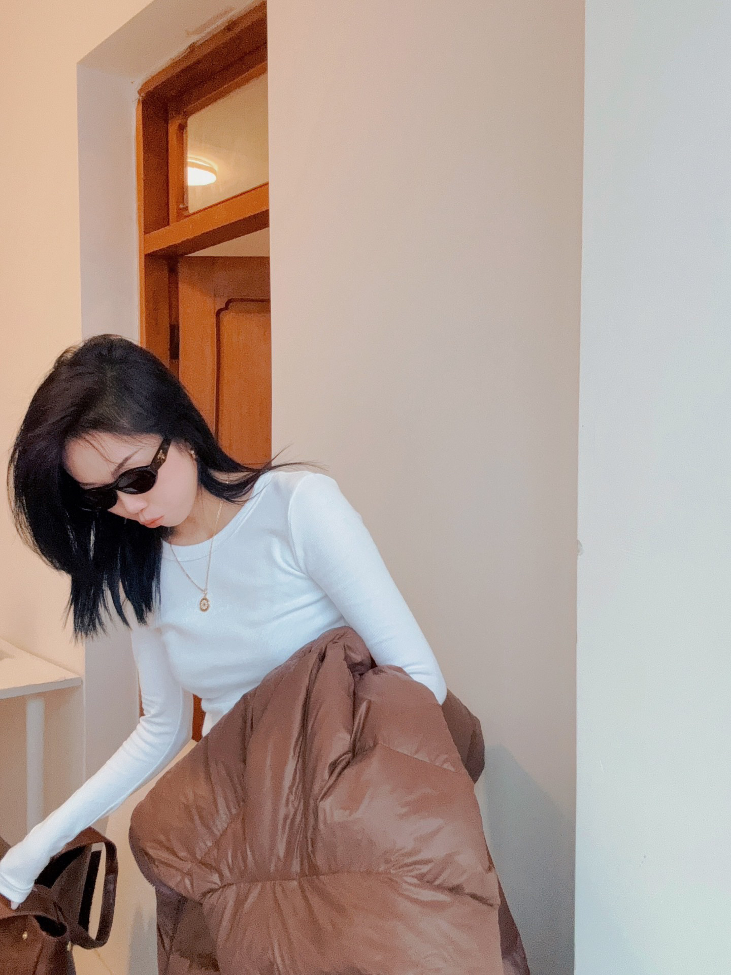 领口是不挑脸型的小圆领 能够恰好到处的修饰肩颈线条 整体都是一个面料下来的 同色真的很高级 久穿久洗不变形 叠穿搭配无压力!